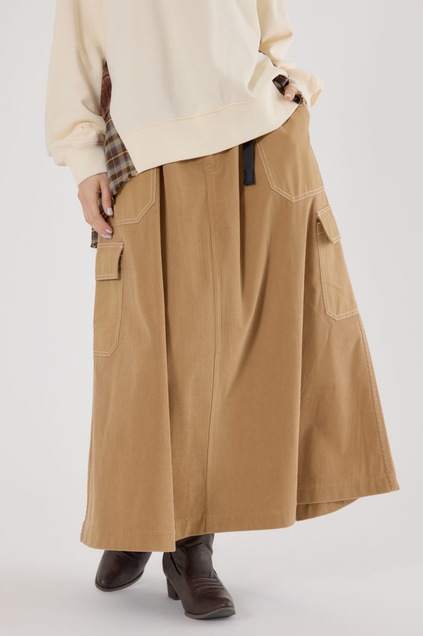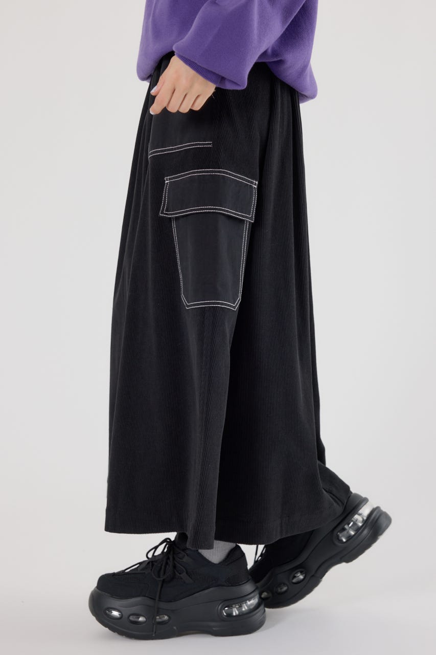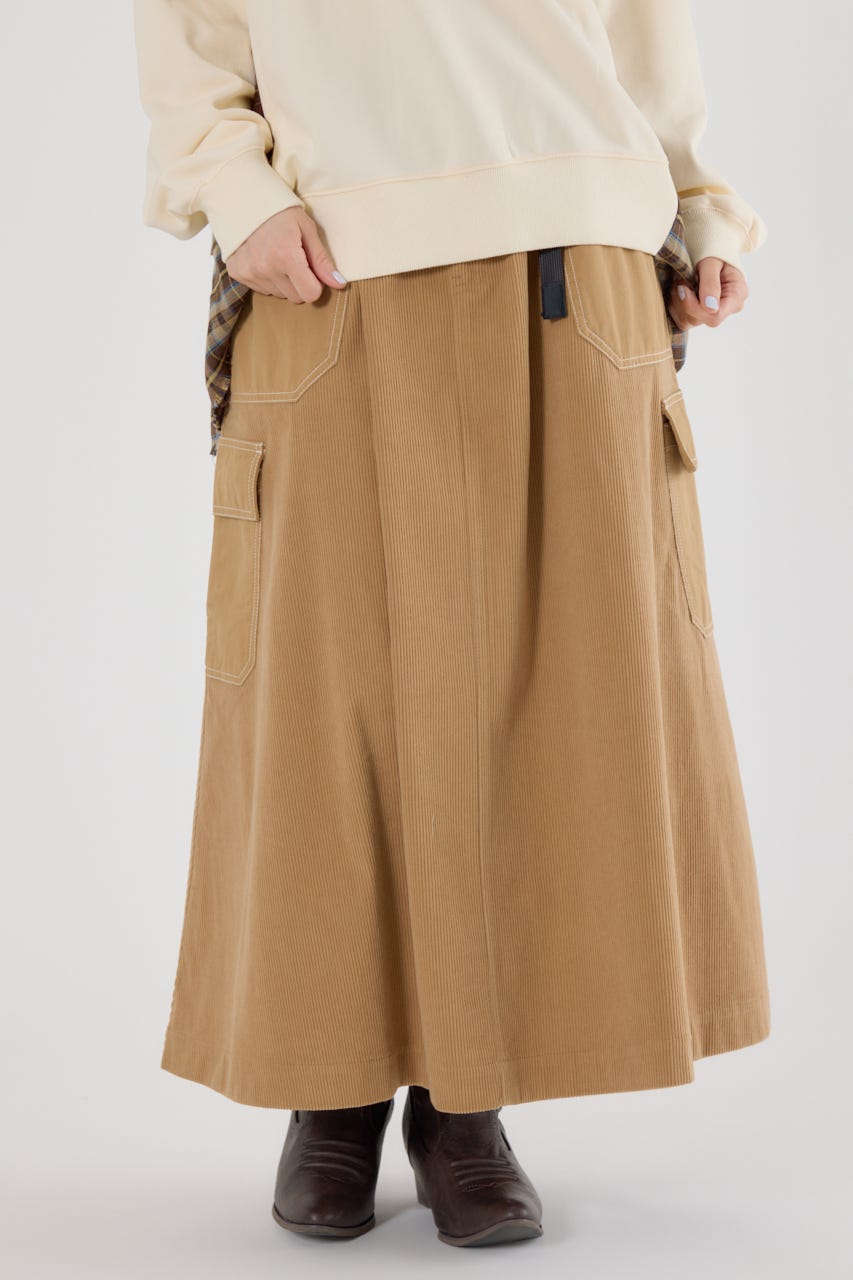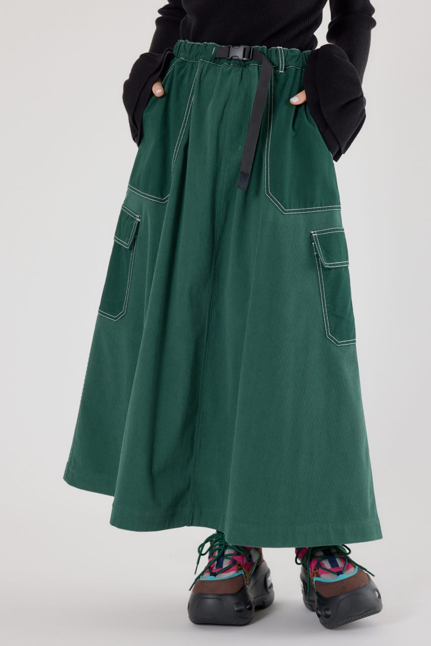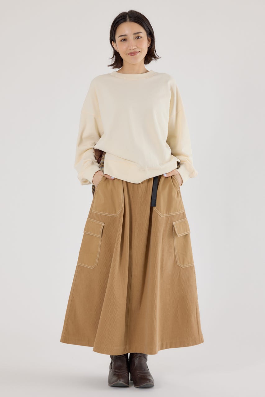 柔らかく落ち感のあるコーデュロイ素材を使用したフレアスカート。