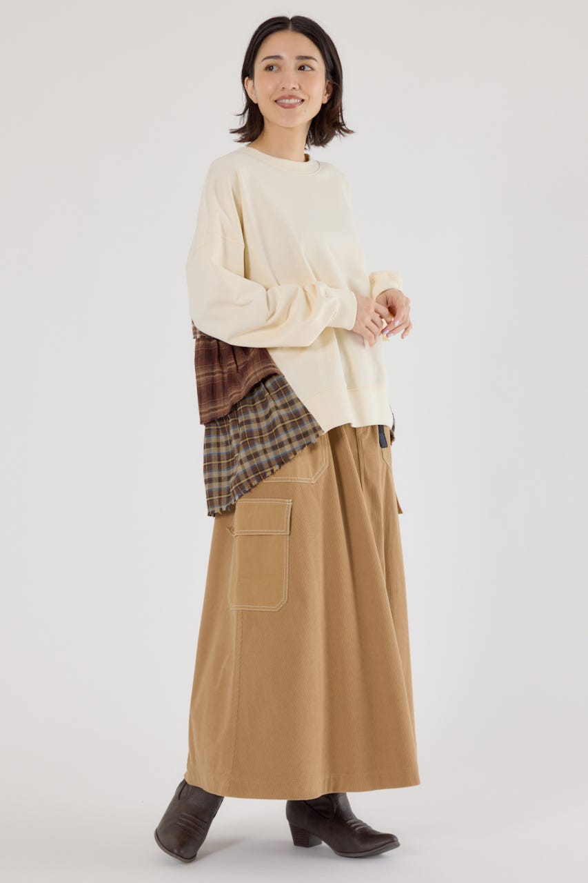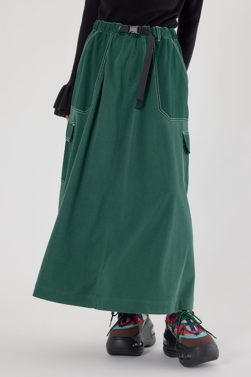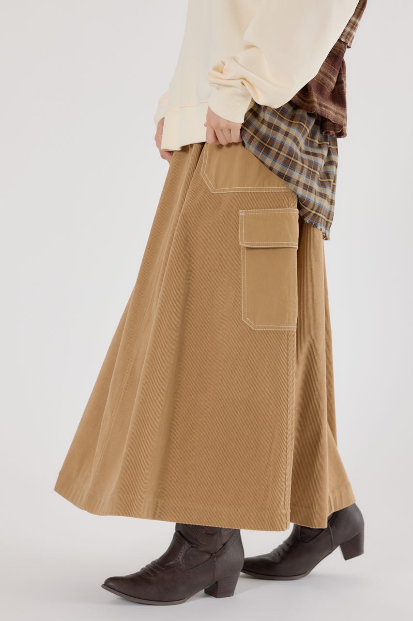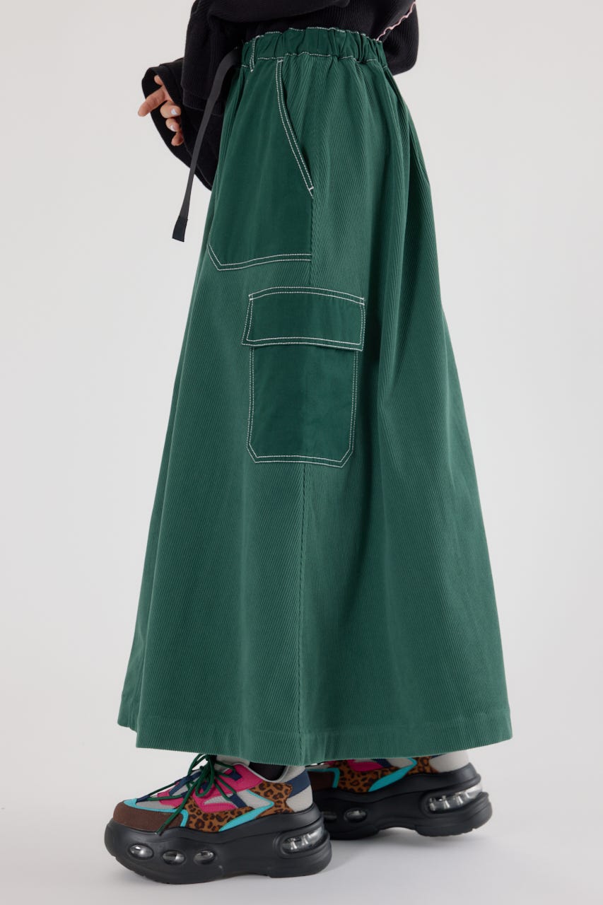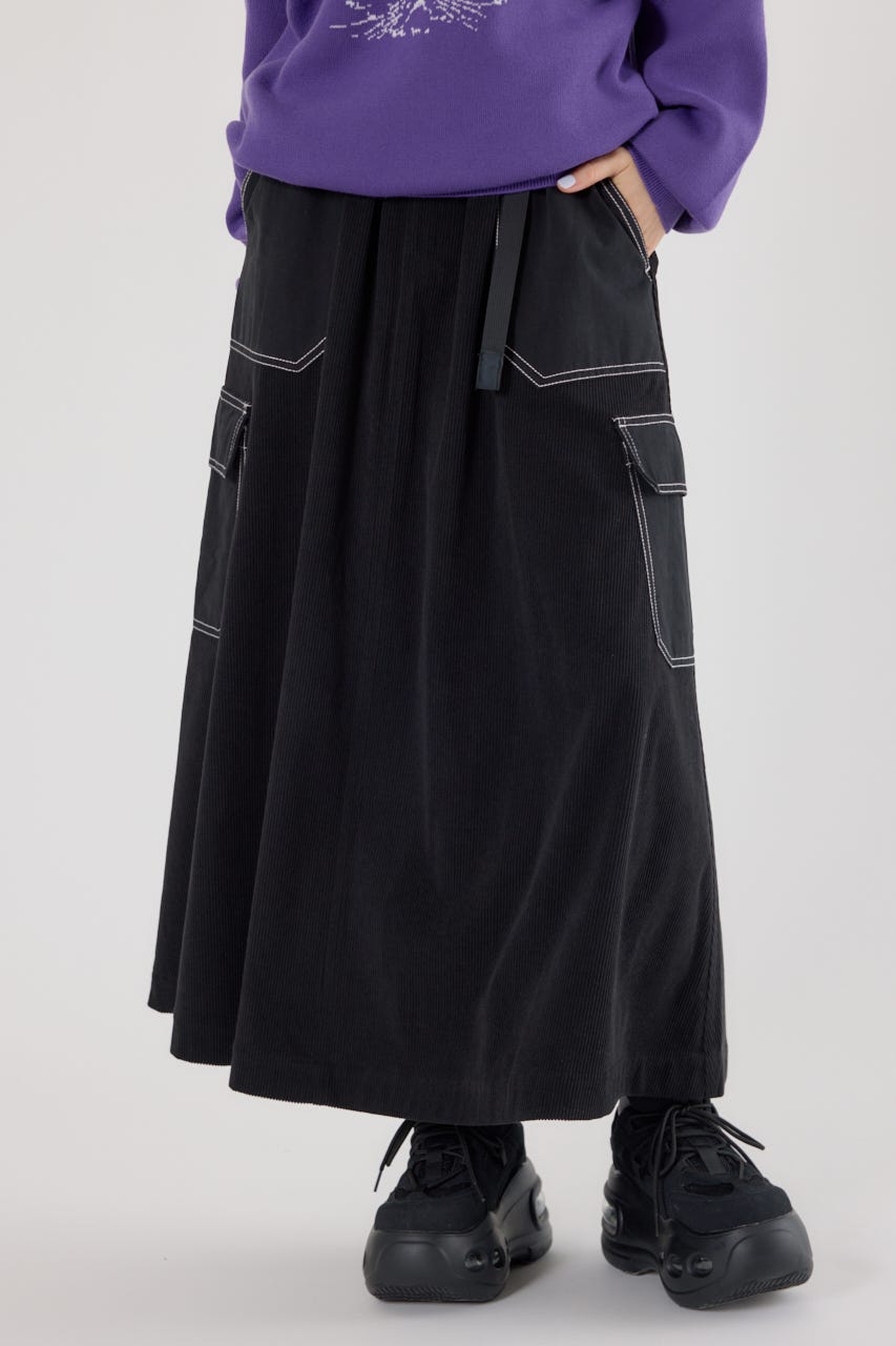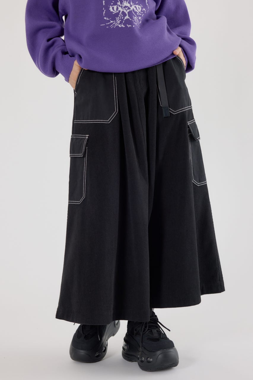 柔らかく落ち感のあるコーデュロイ素材を使用したフレアスカート。