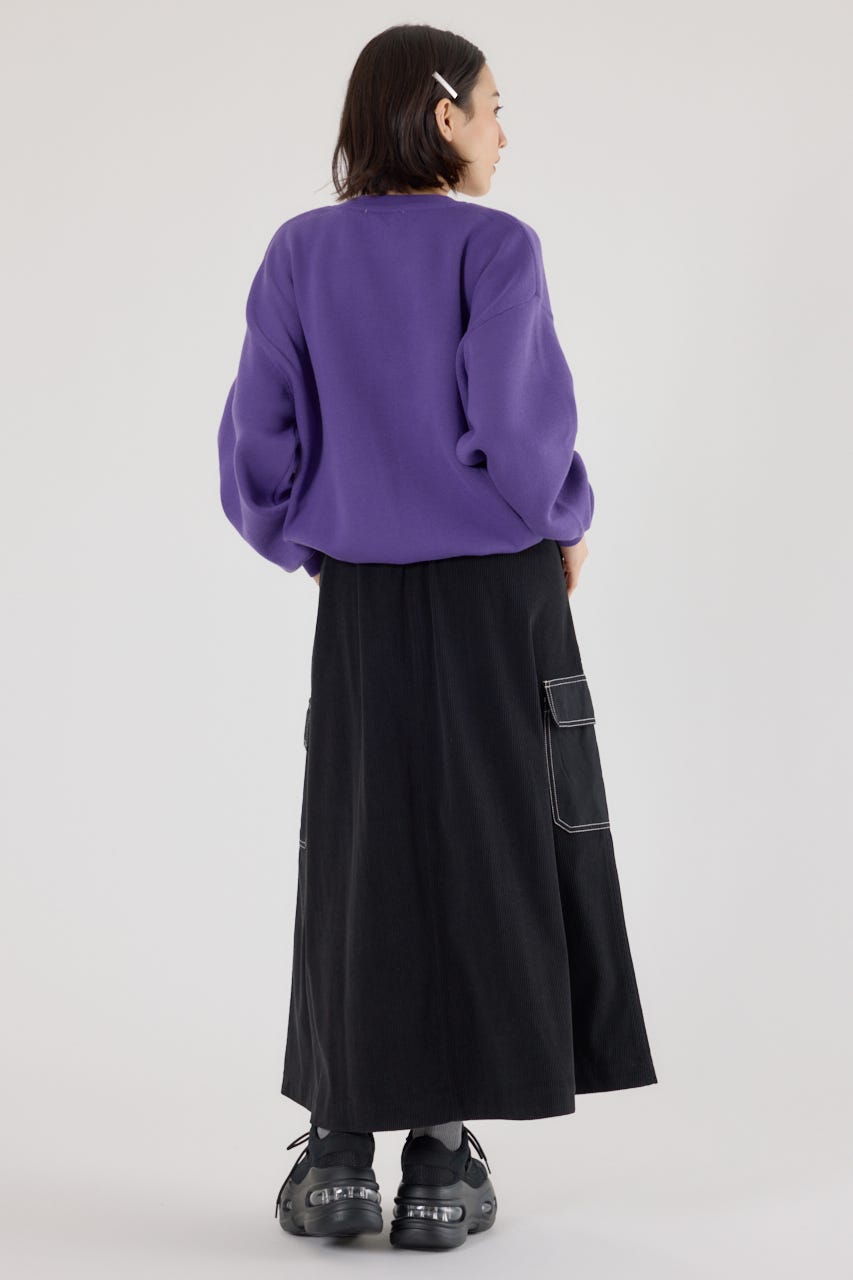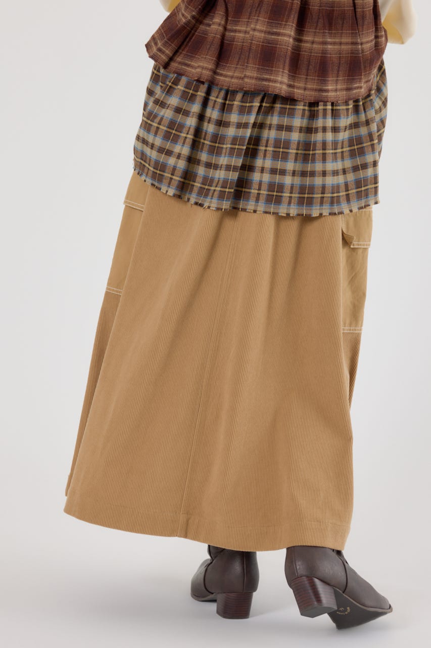 部分的にツイル素材を使用し、異素材ドッキングデザインのフレアスカート。