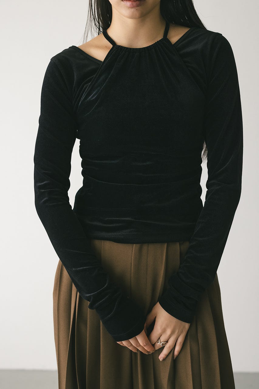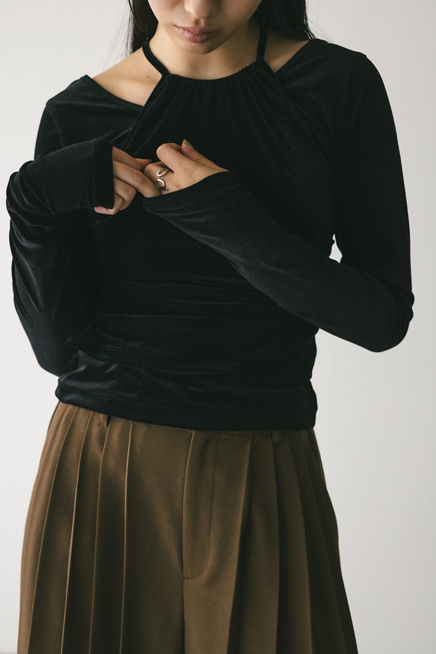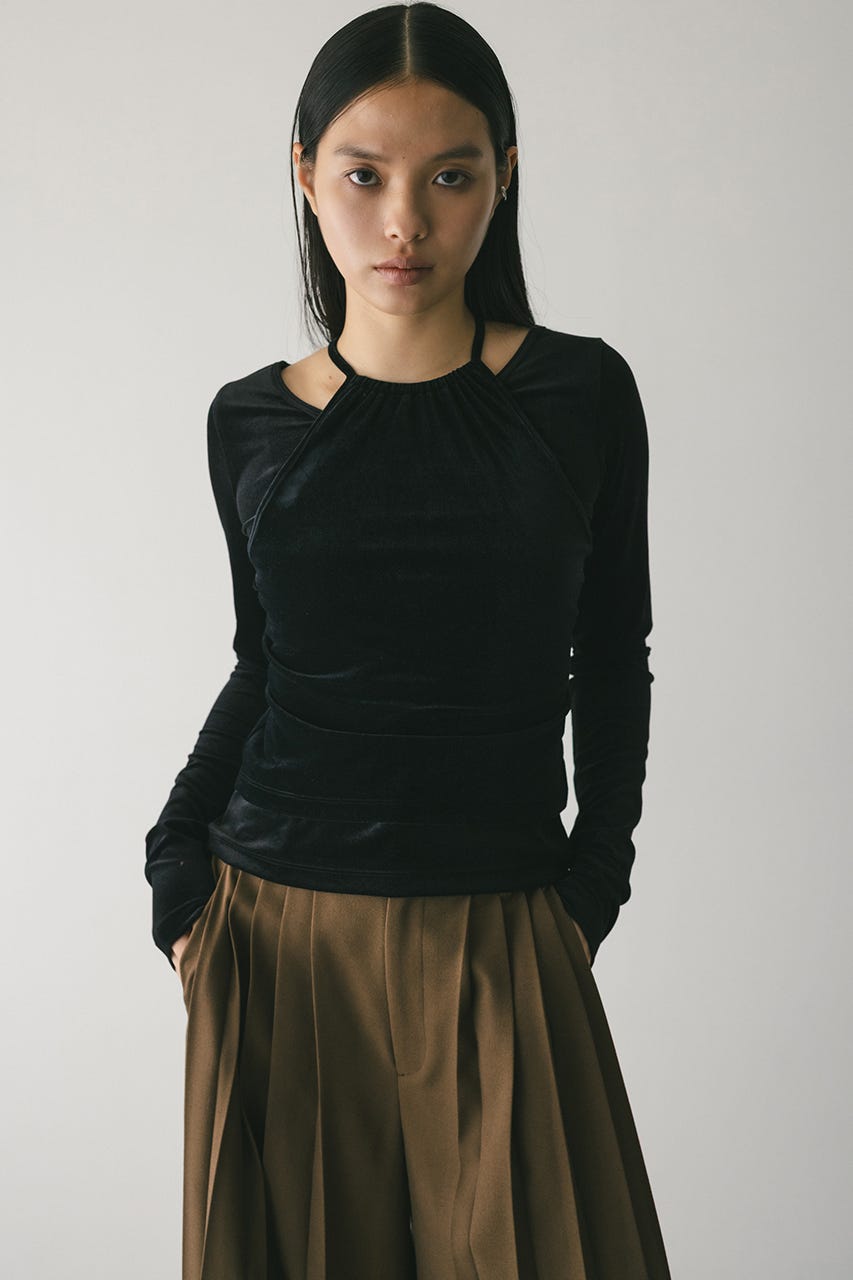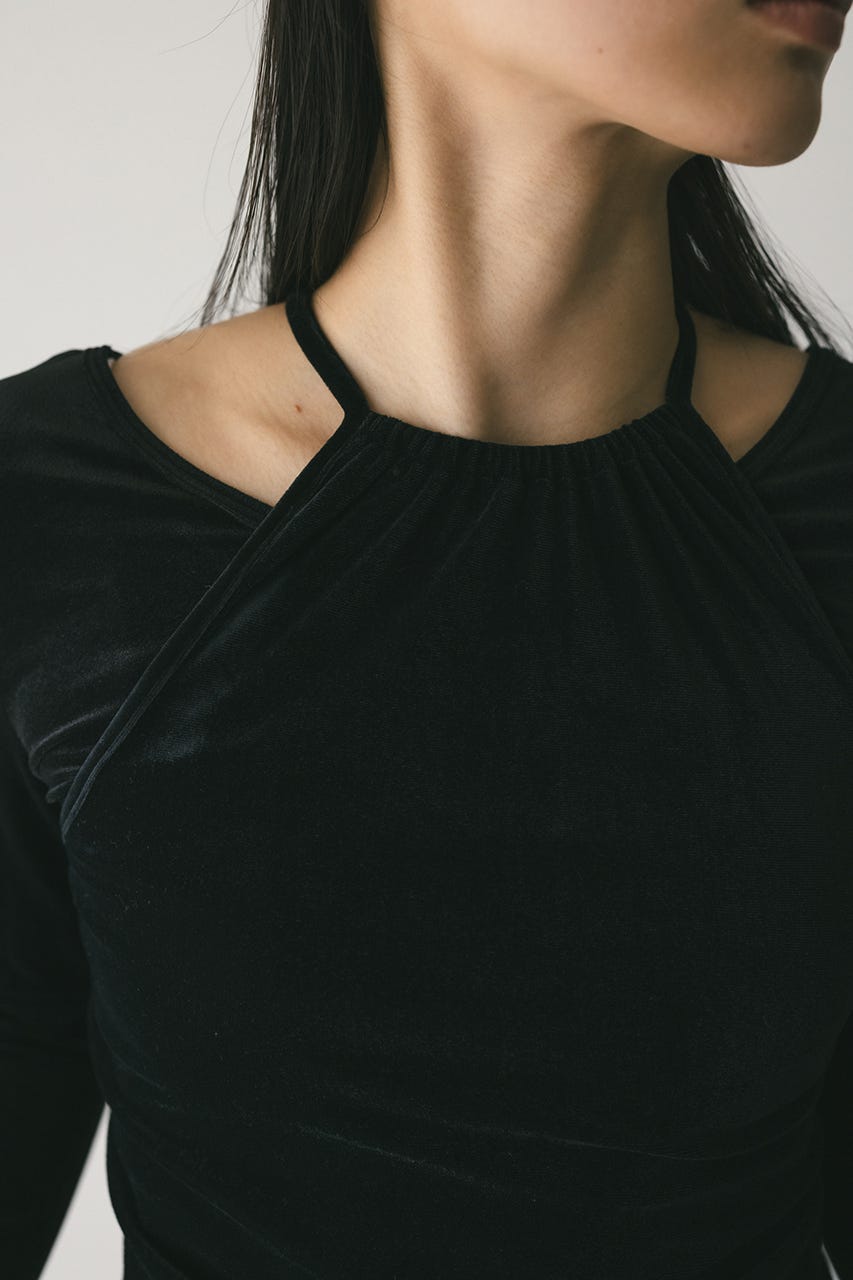 ホルターネックはやや厚みのあるベロア生地を使用。
