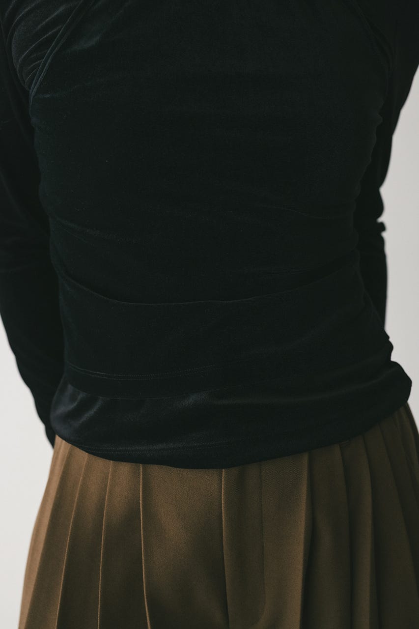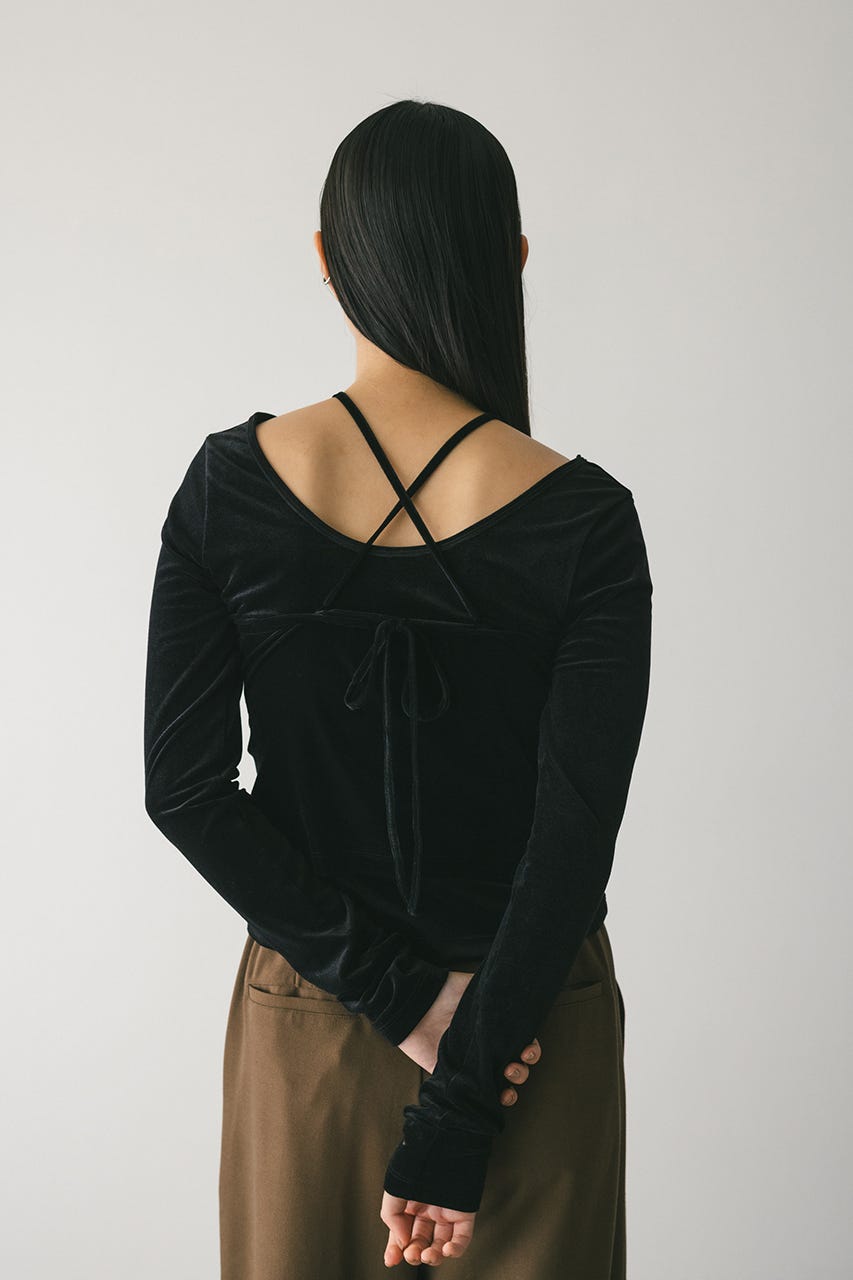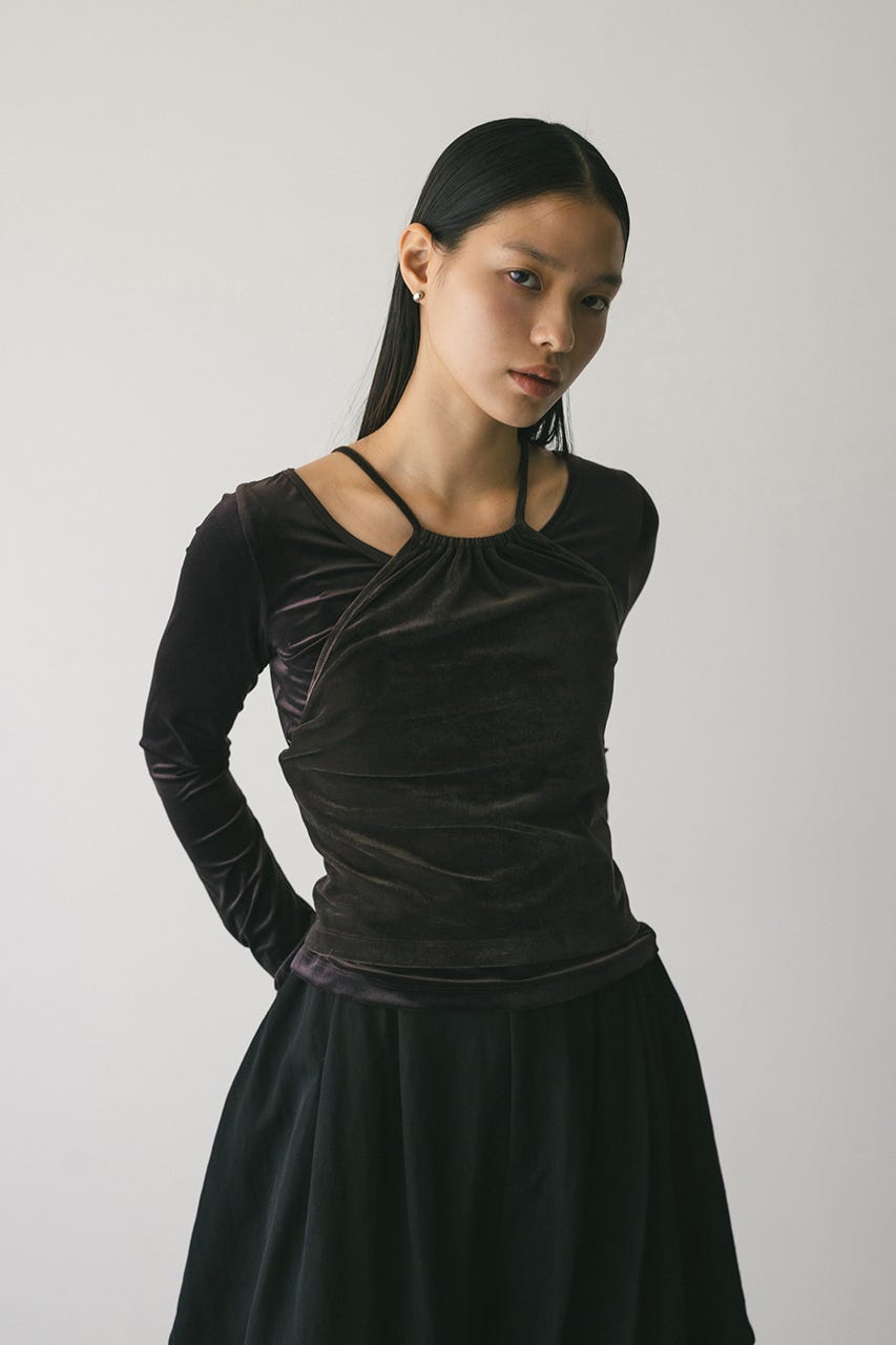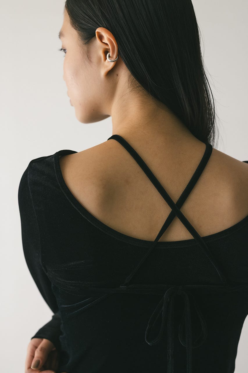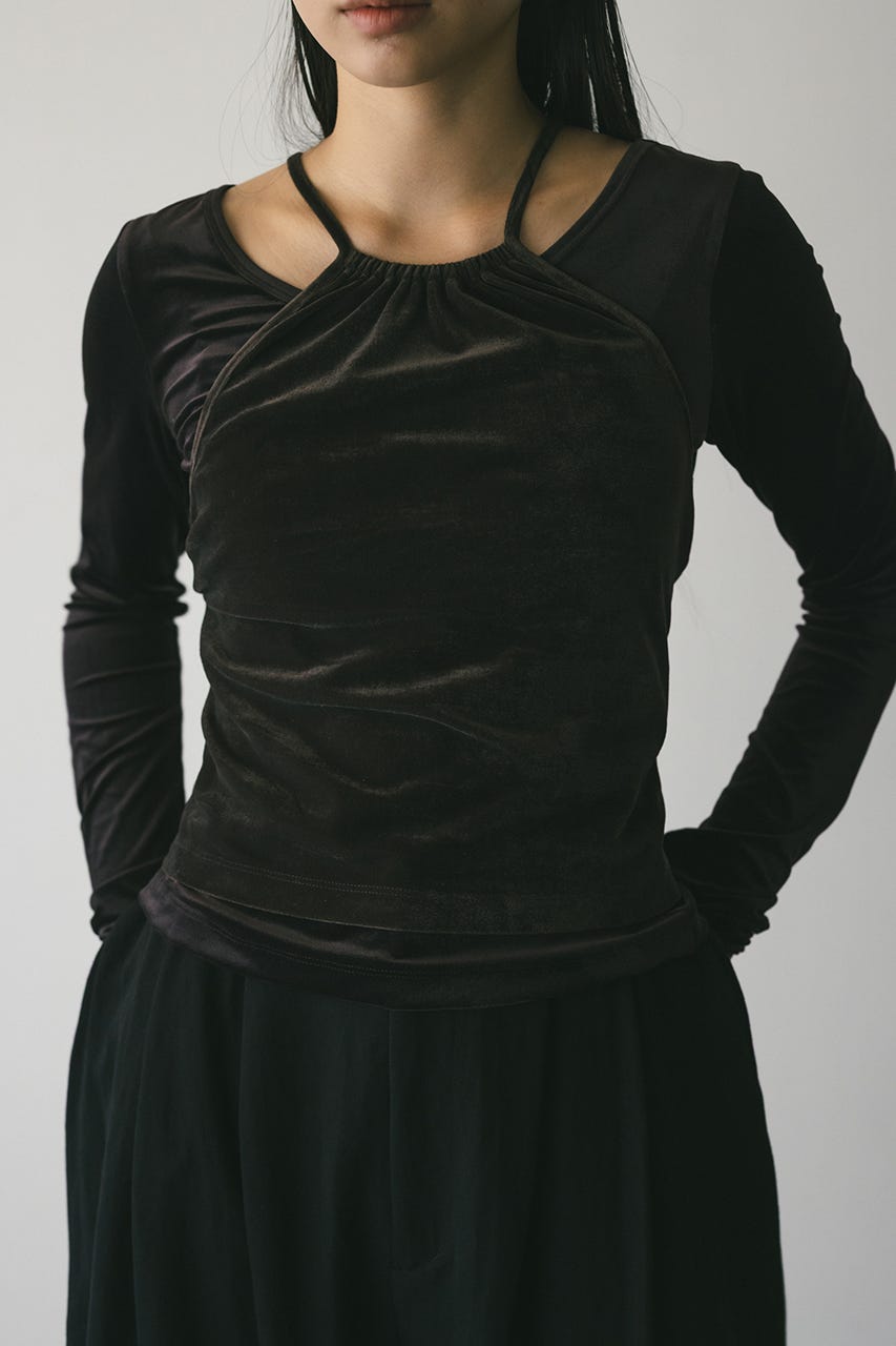 ホルターネックはやや厚みのあるベロア生地を使用。