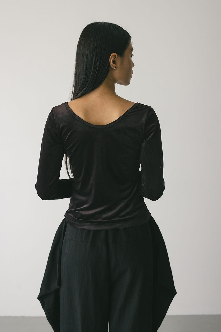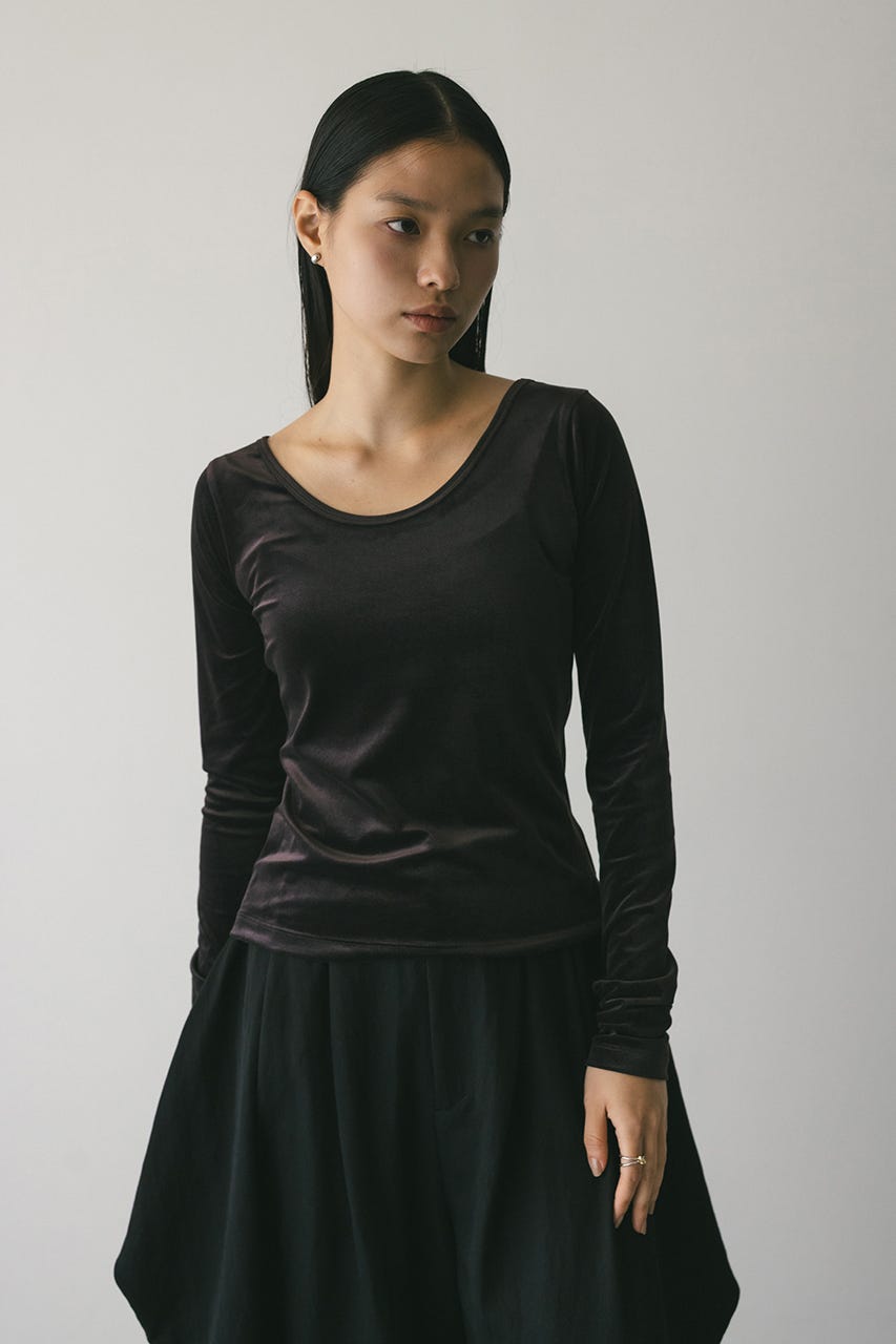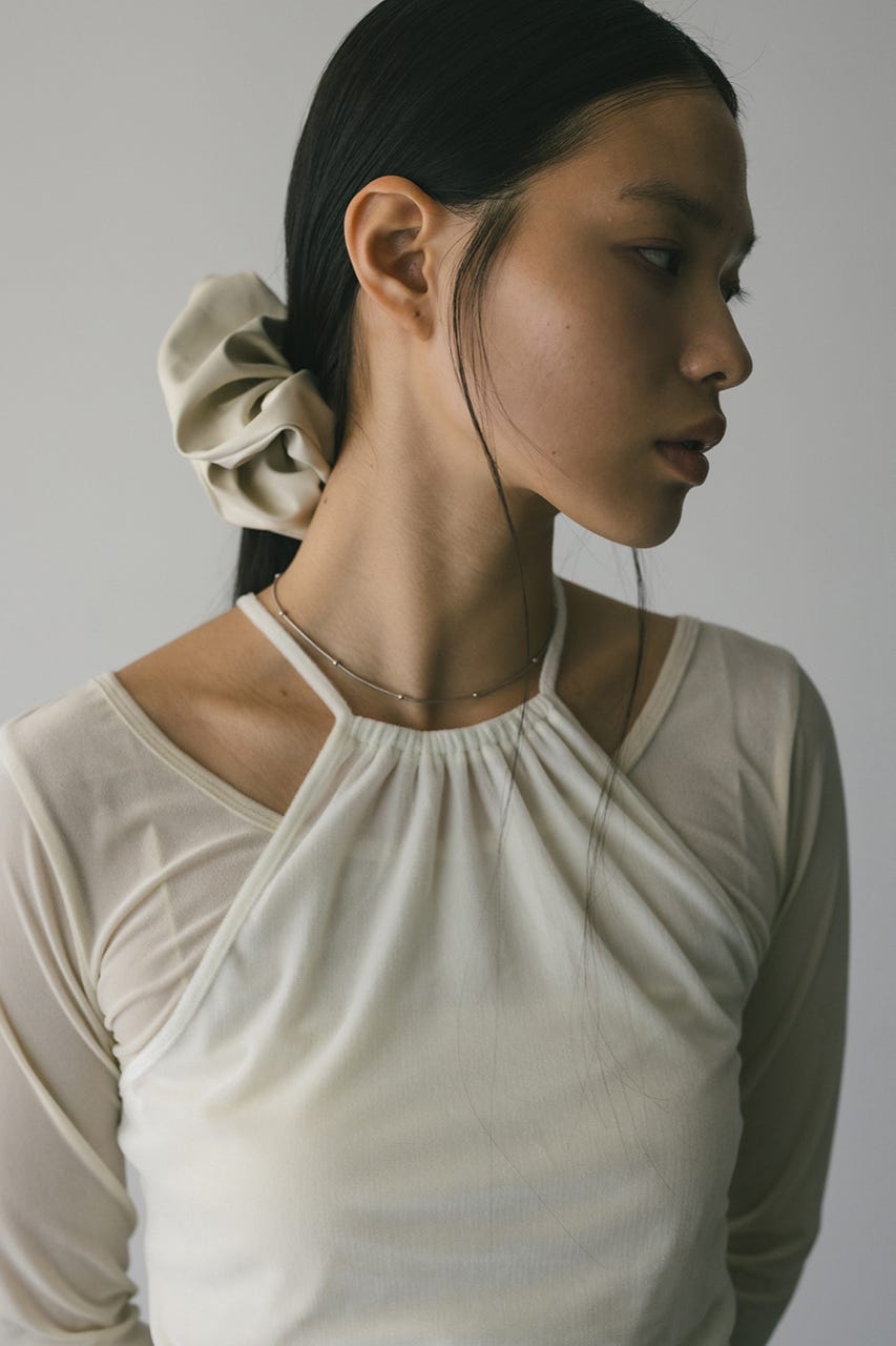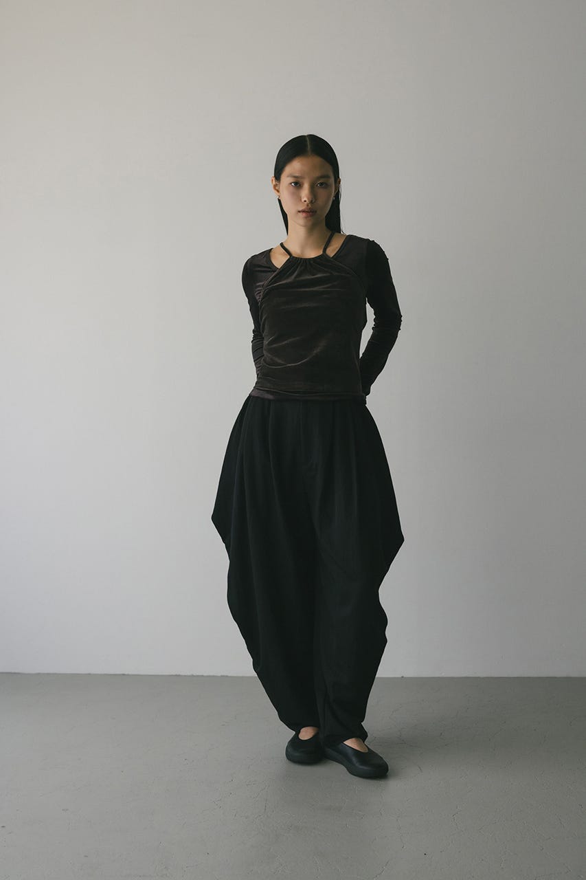 ホルターネックはやや厚みのあるベロア生地を使用。