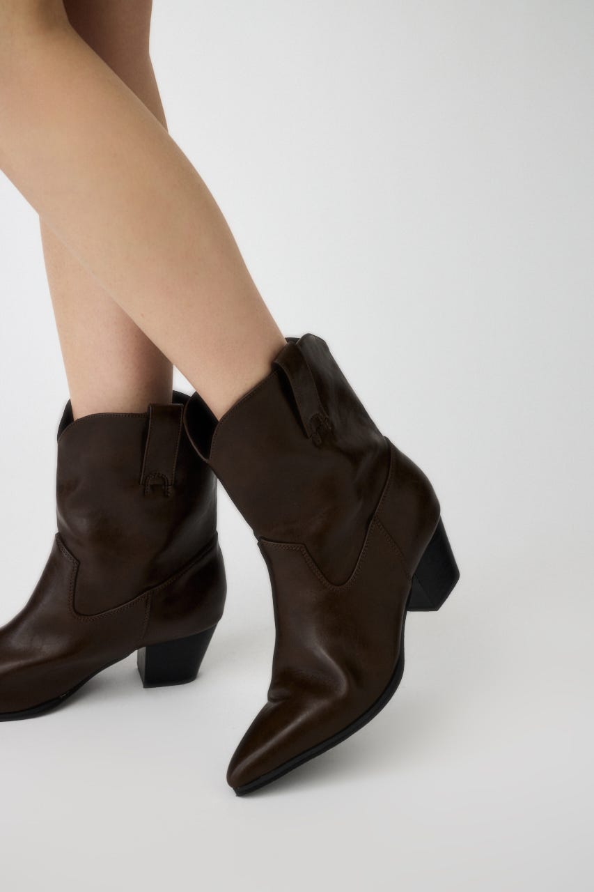 カバーは取り外し可能で、ウェスタンディテールのショートブーツとしても着用できる2WAY仕様。