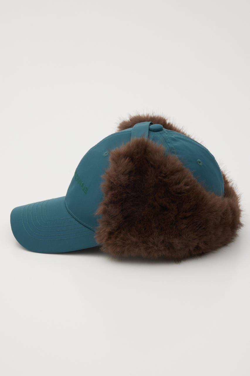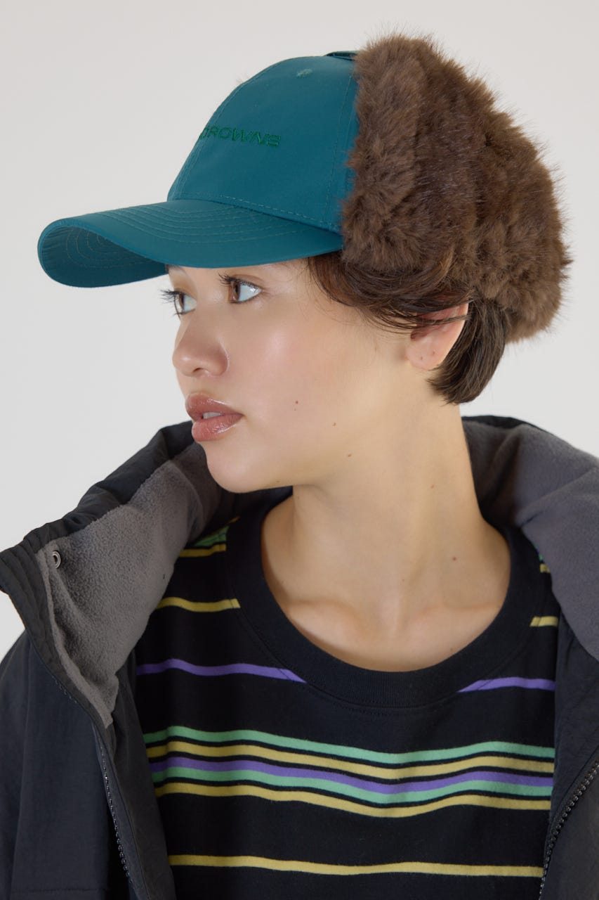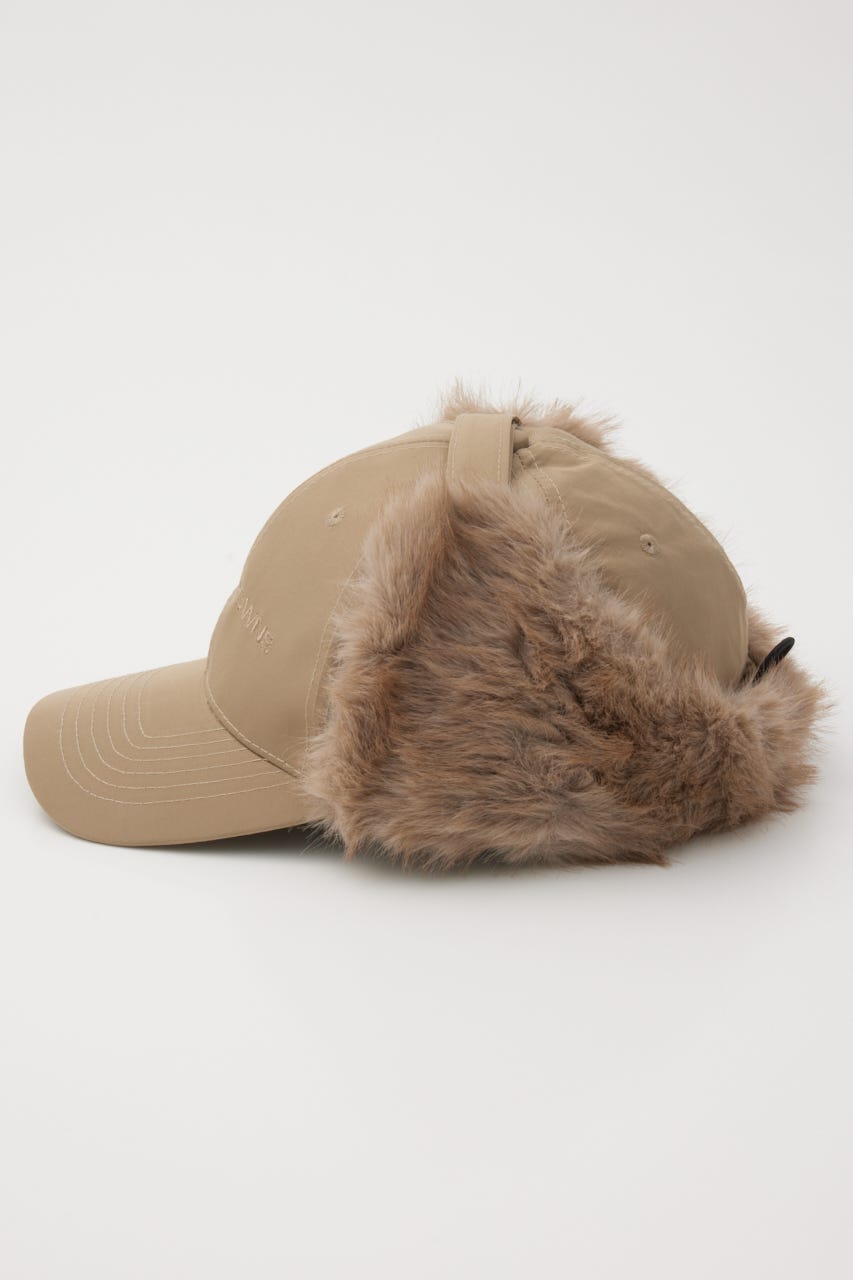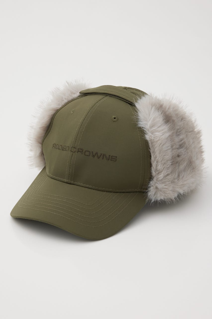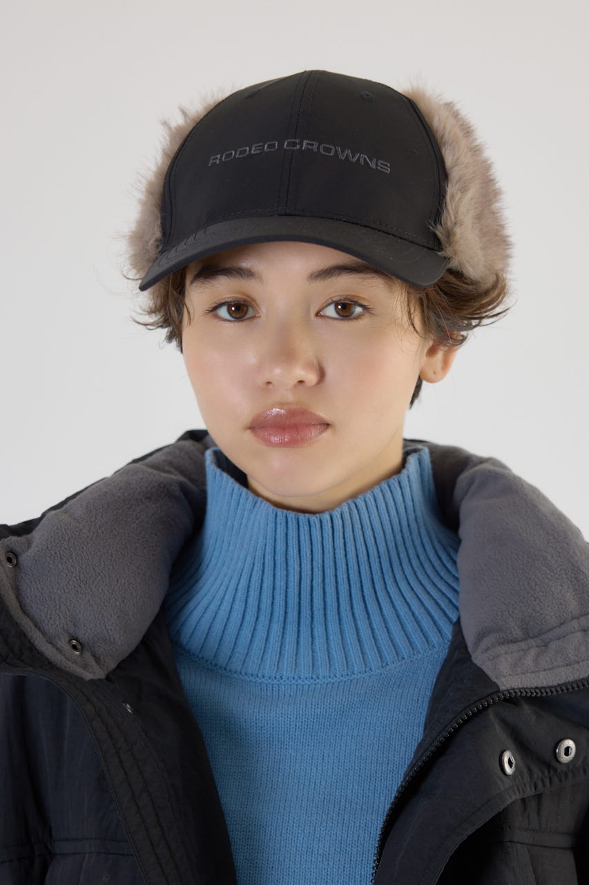 フロントにはスタイリッシュなロゴ刺繍、耳あて部分には肌触りが良く絶妙なカラーのフェイクファーを使用。