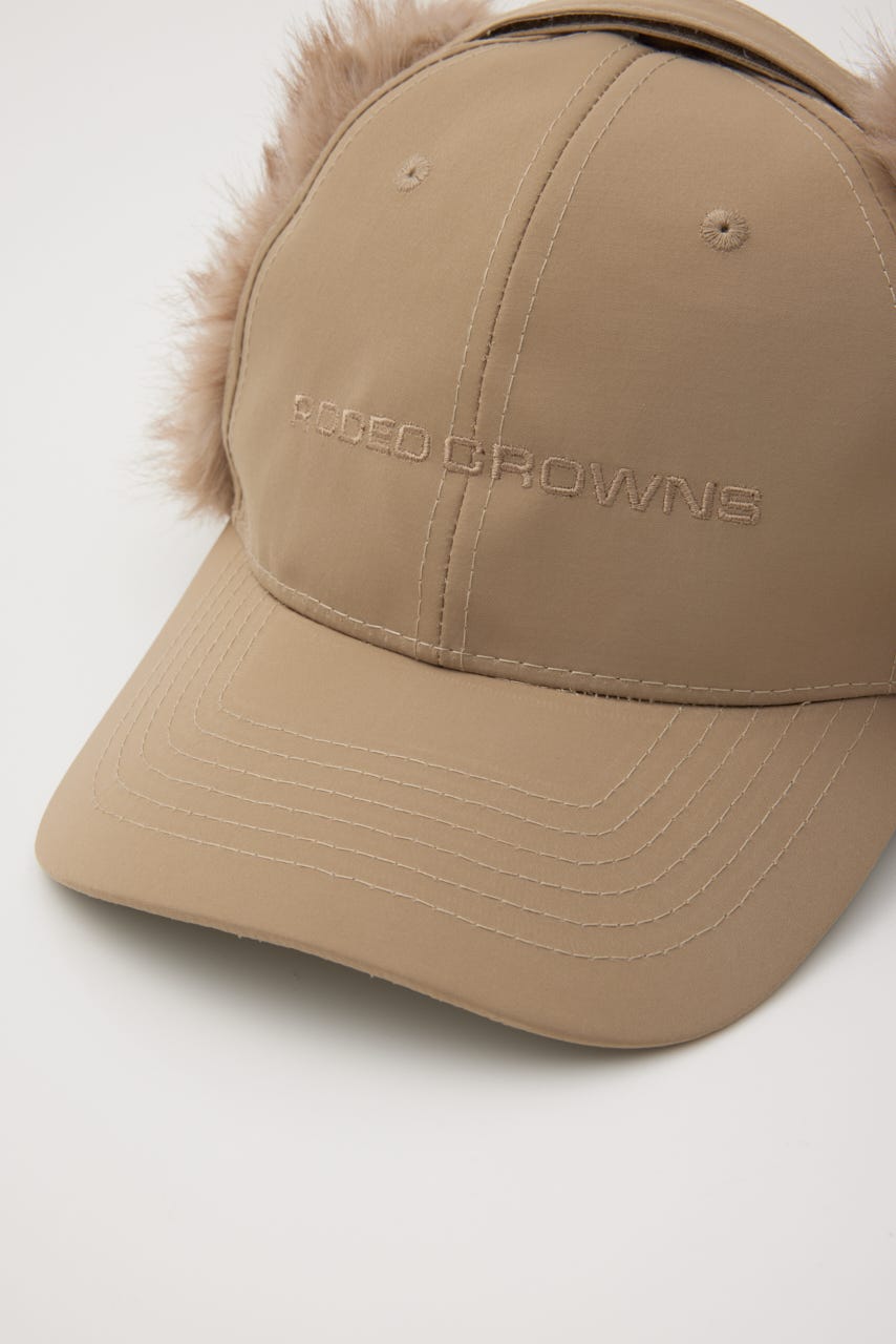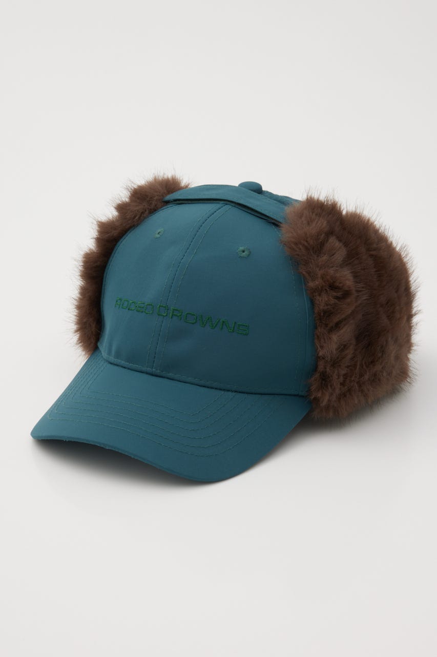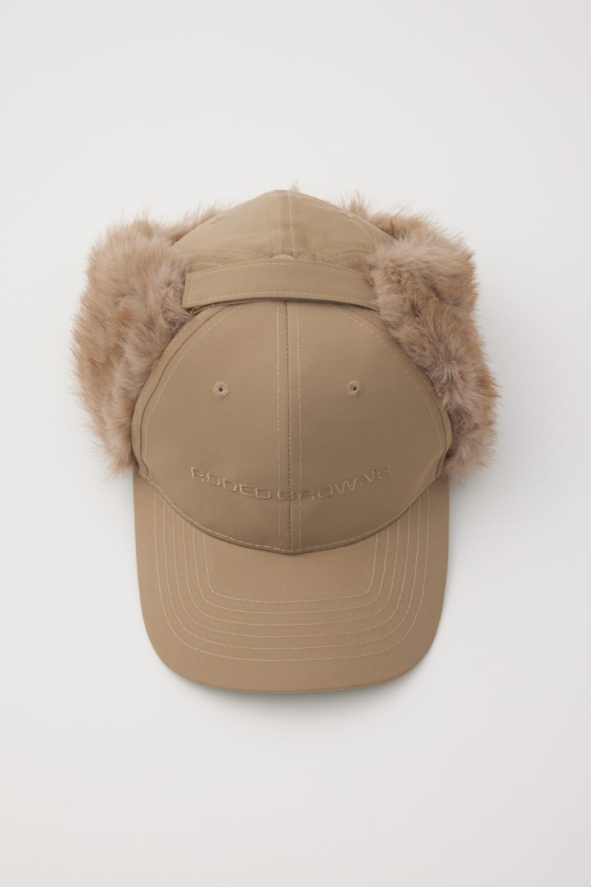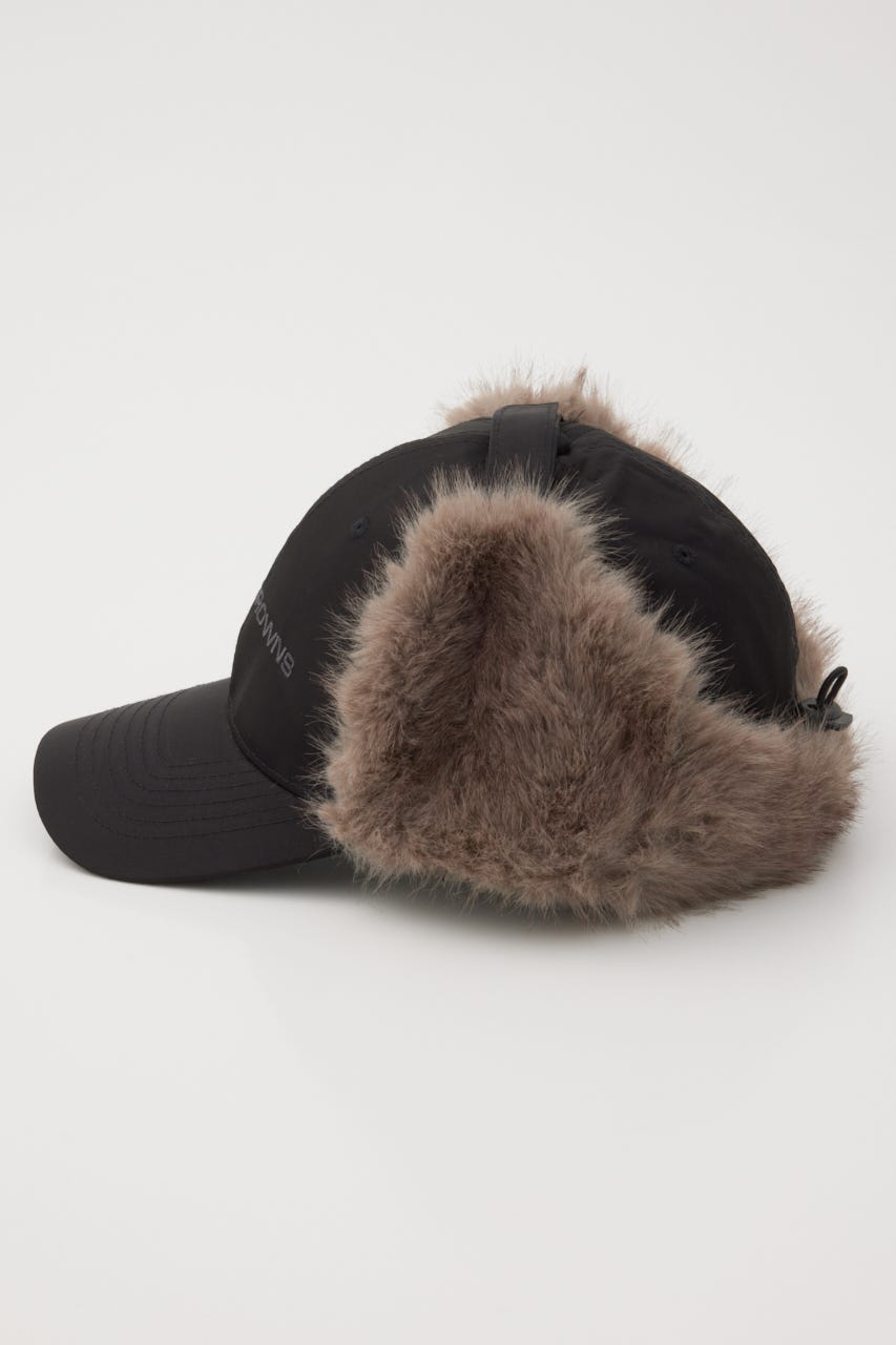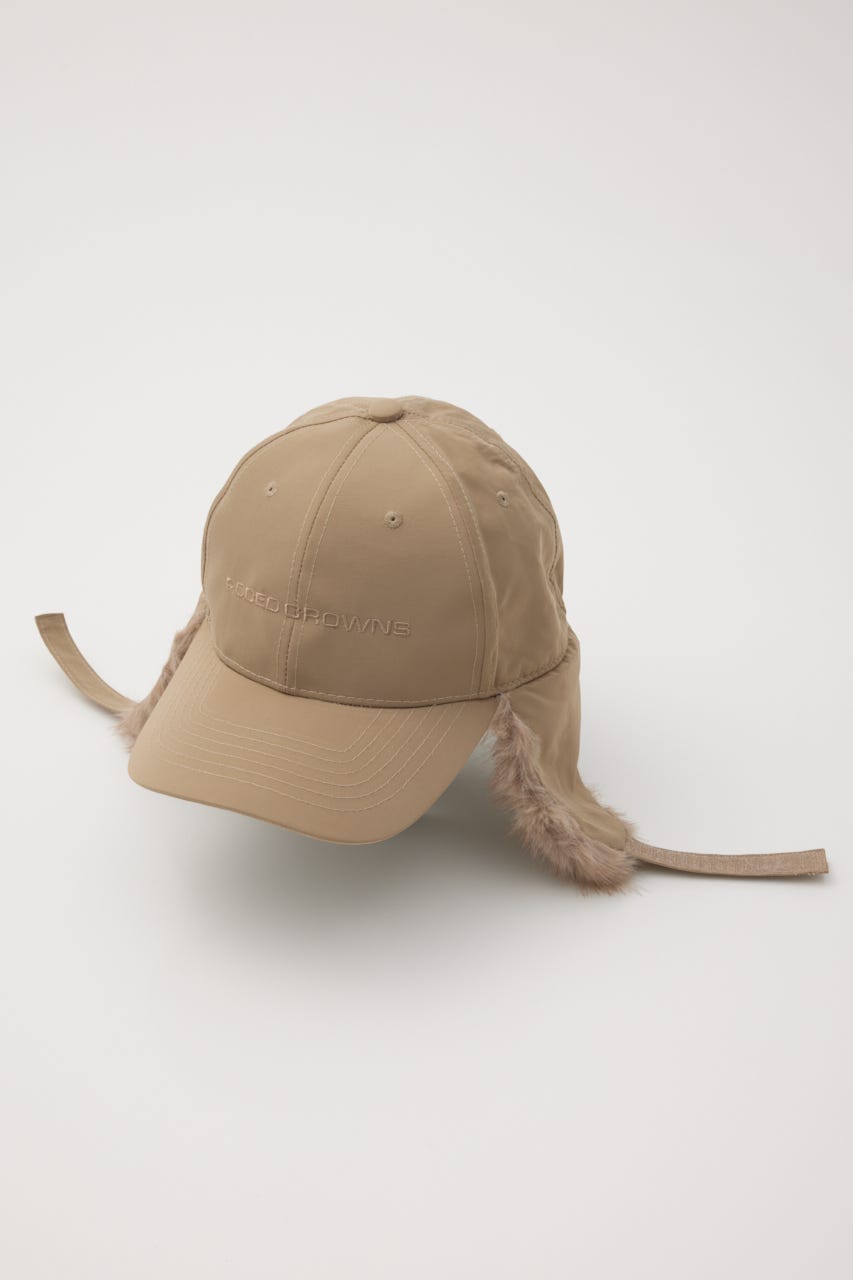 フロントにはスタイリッシュなロゴ刺繍、耳あて部分には肌触りが良く絶妙なカラーのフェイクファーを使用。