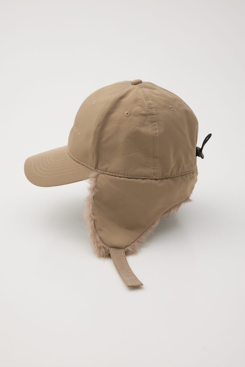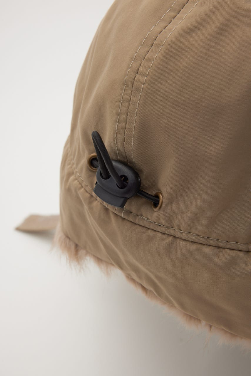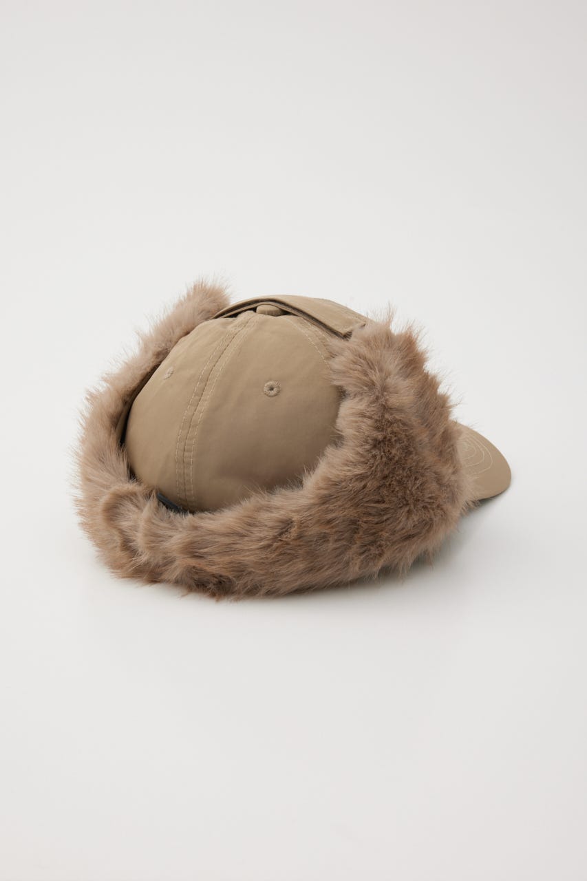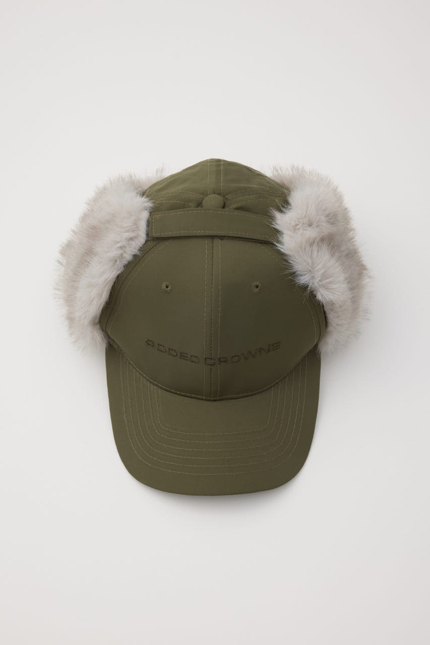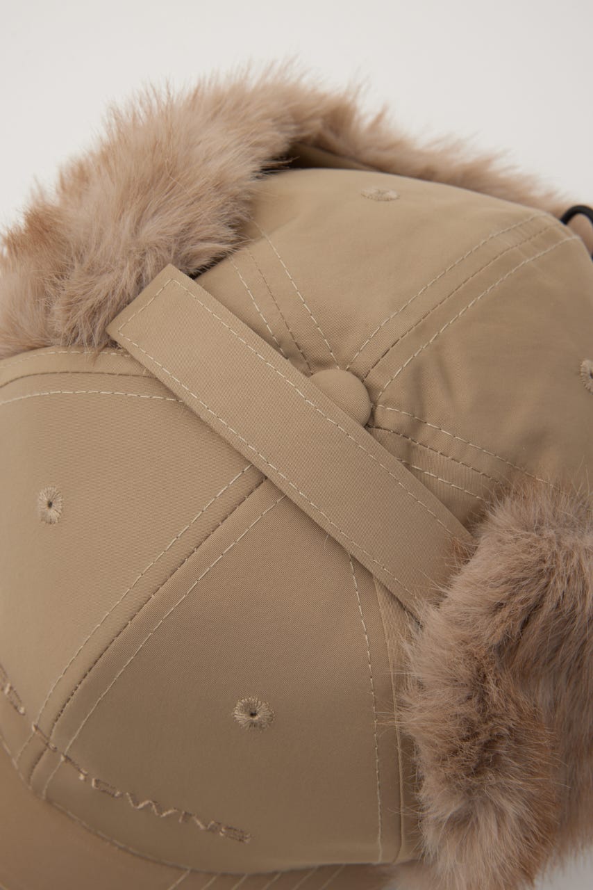フロントにはスタイリッシュなロゴ刺繍、耳あて部分には肌触りが良く絶妙なカラーのフェイクファーを使用。