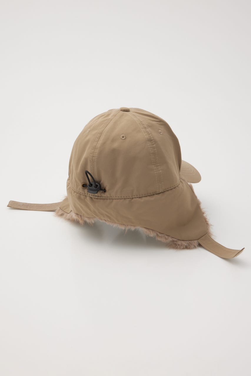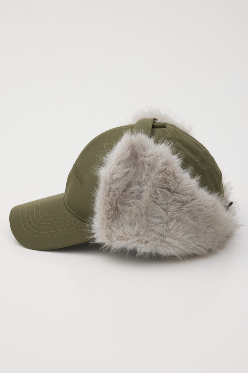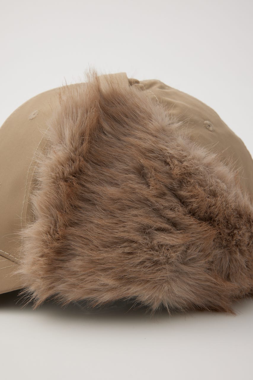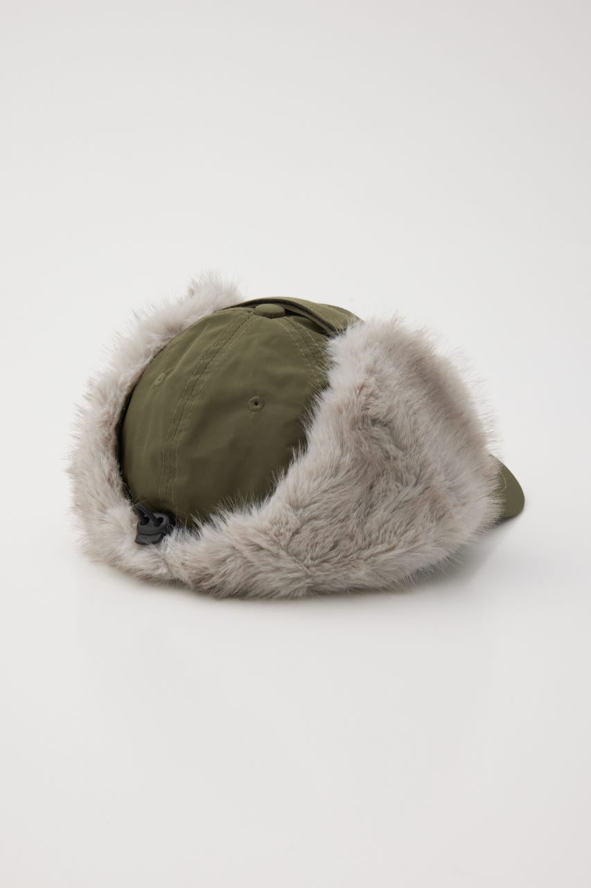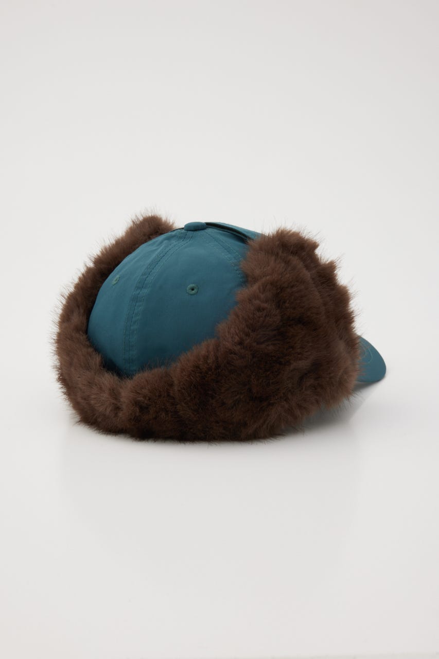 フロントにはスタイリッシュなロゴ刺繍、耳あて部分には肌触りが良く絶妙なカラーのフェイクファーを使用。