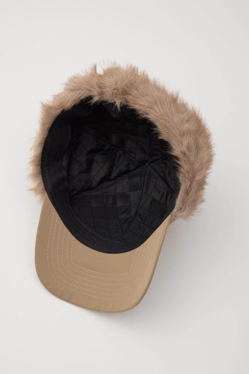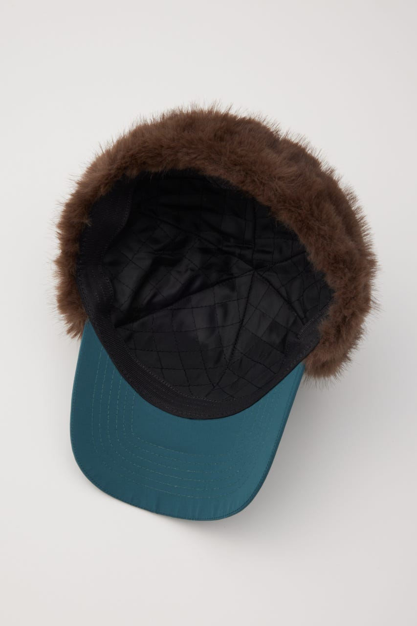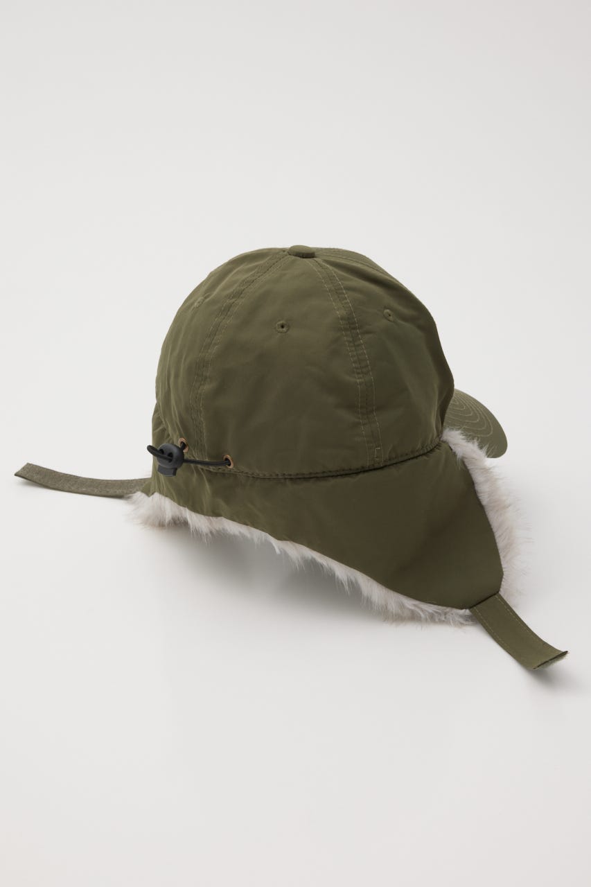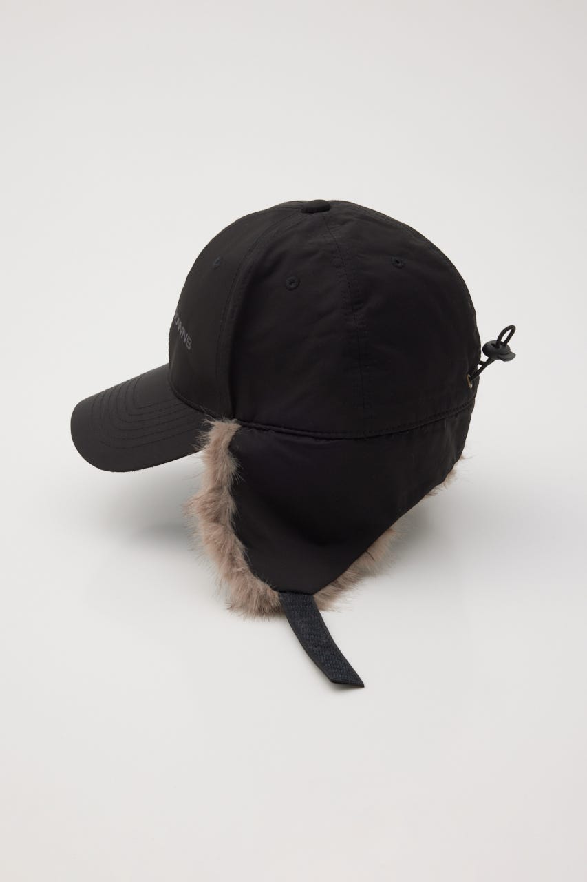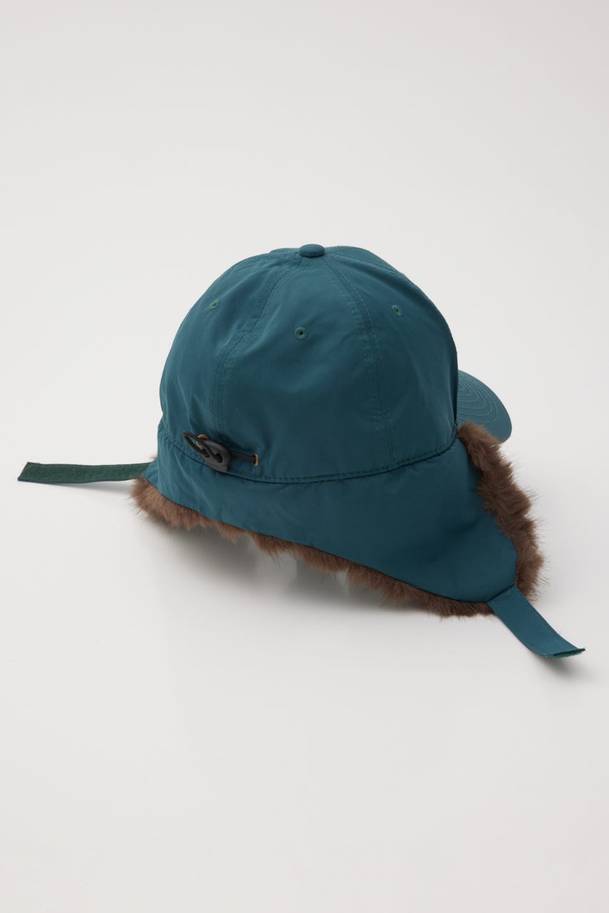 フロントにはスタイリッシュなロゴ刺繍、耳あて部分には肌触りが良く絶妙なカラーのフェイクファーを使用。