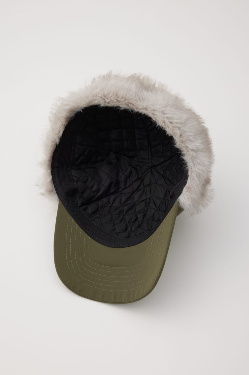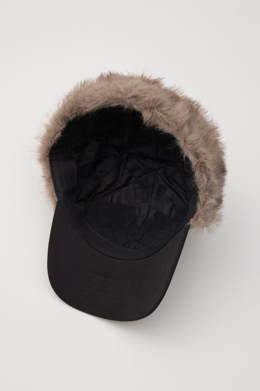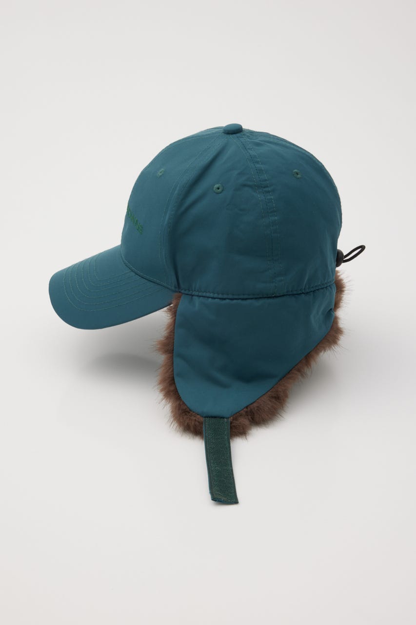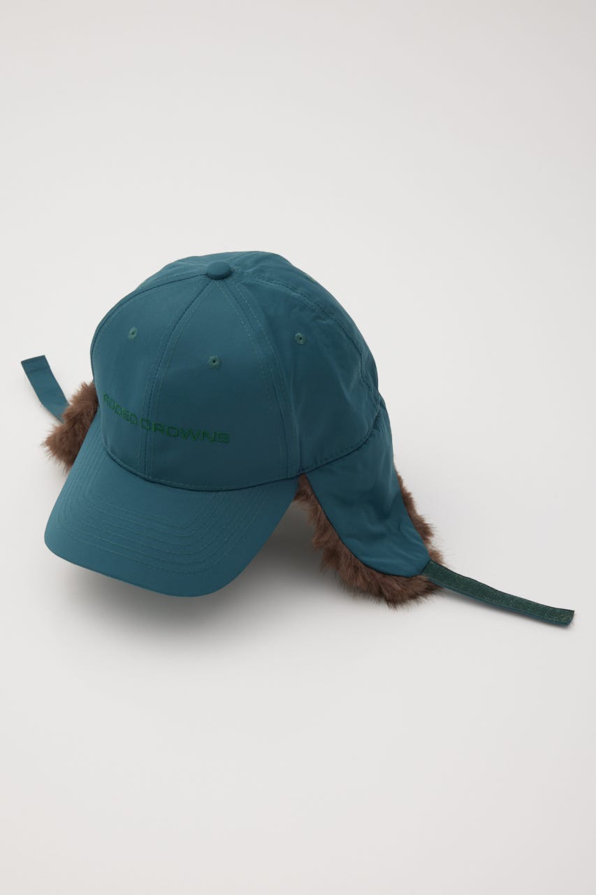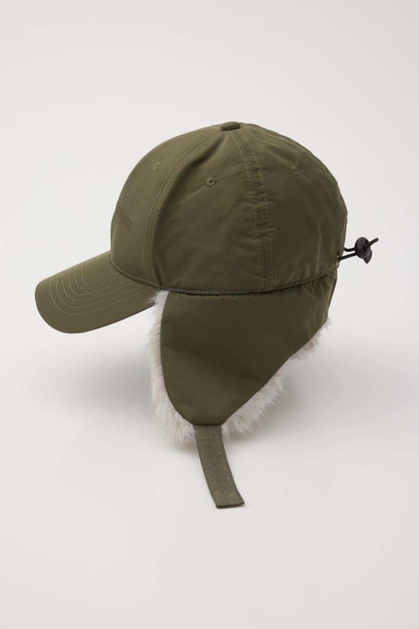 フロントにはスタイリッシュなロゴ刺繍、耳あて部分には肌触りが良く絶妙なカラーのフェイクファーを使用。
