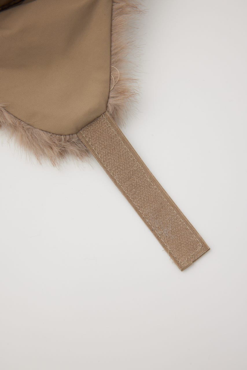 ベルクロで装着も簡単で、留めた状態で被って頂いたり、下ろして頂いたりと、その日のコーディネートの顔周りのボリュームに応じてかぶり方を変えるのがおすすめです。