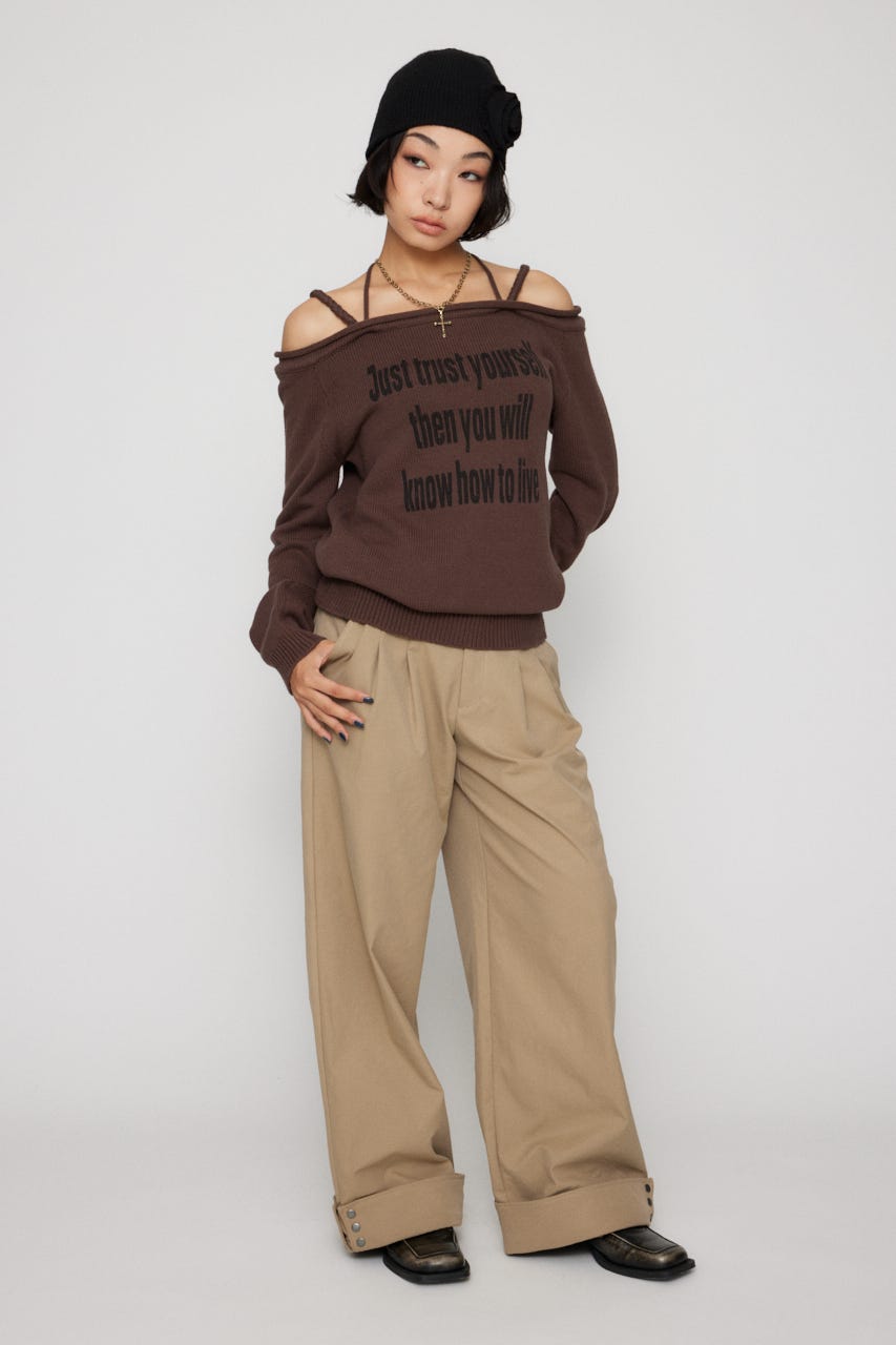 ■POINT:ルーズなシルエットにデコルテがちらっと見えるデザインが抜け感のあるニット。