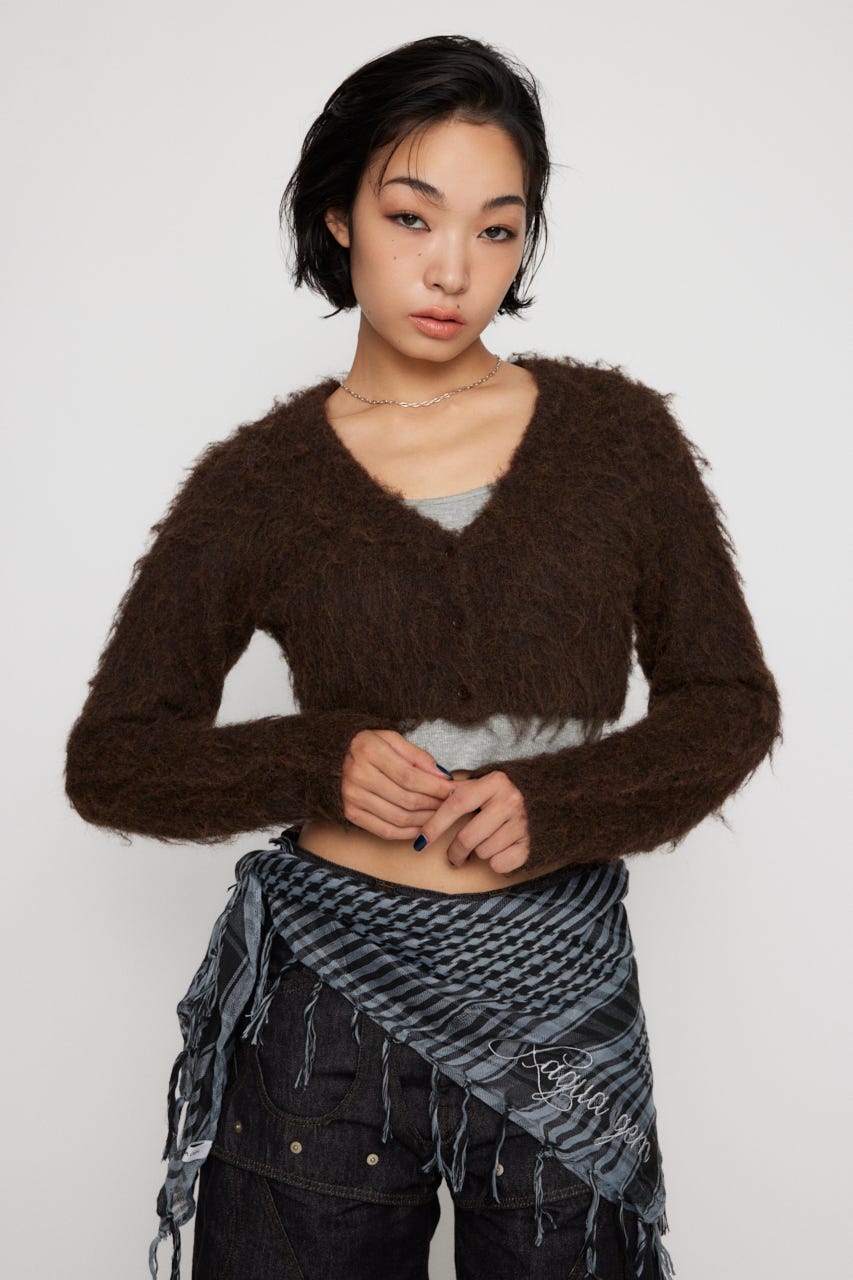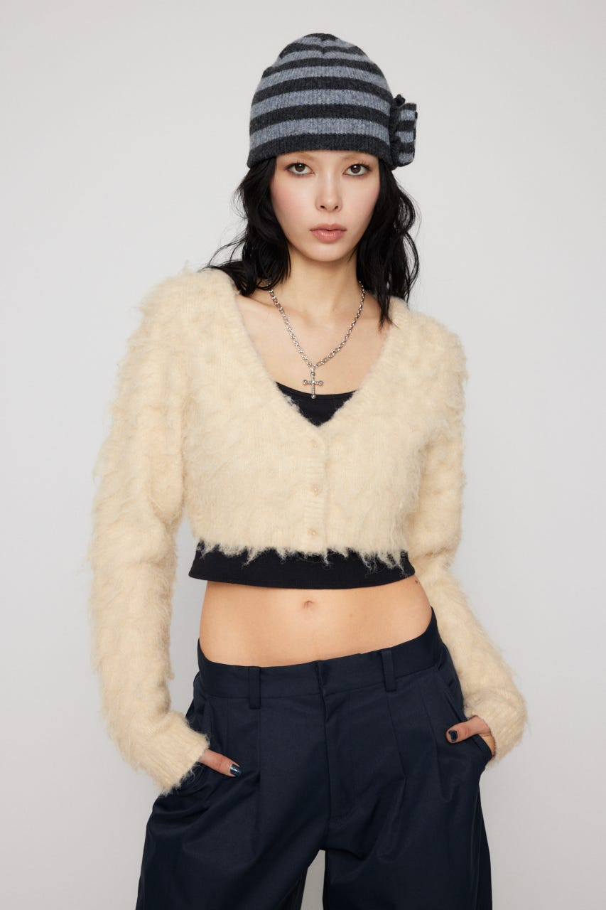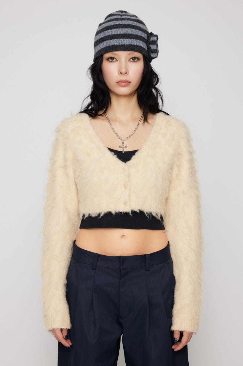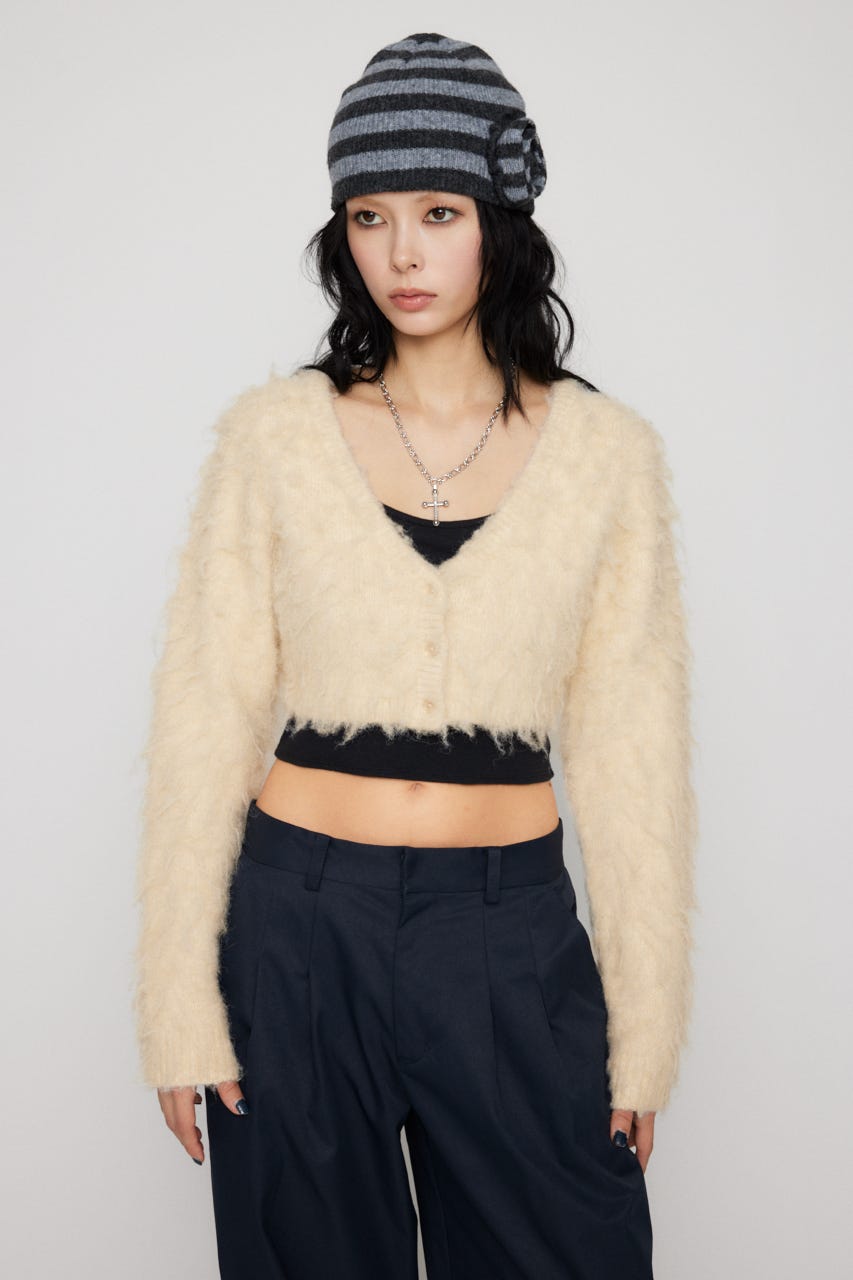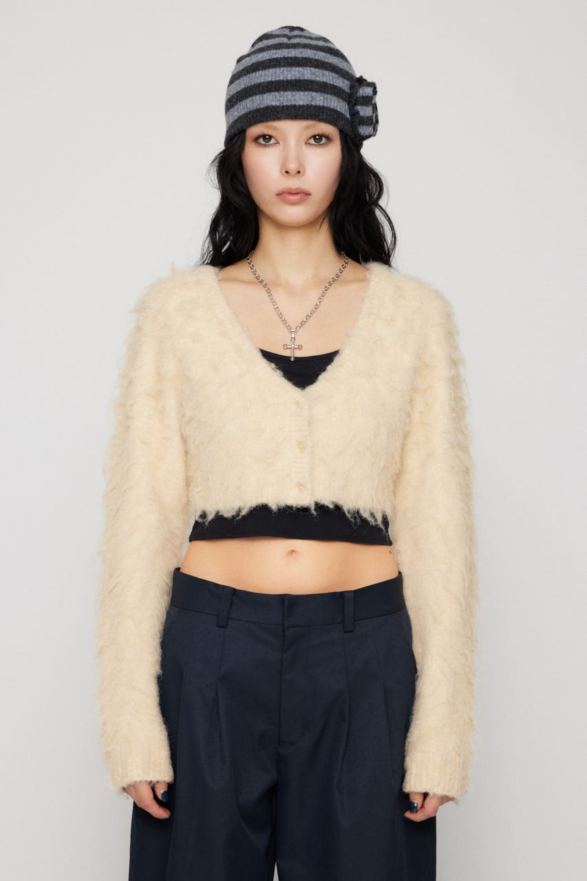 ■POINT:クロップド丈で起毛感のあるニットがポイントのカーディガン。