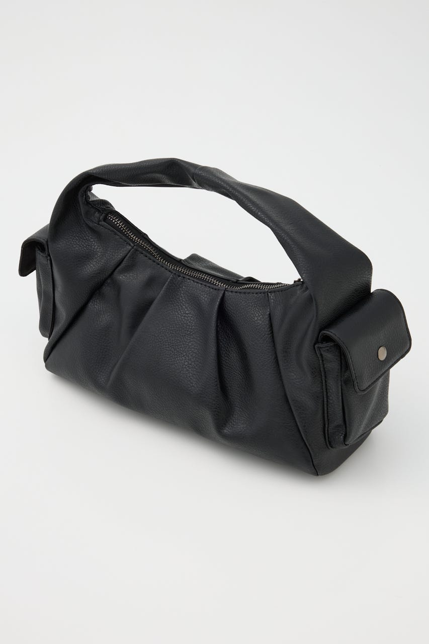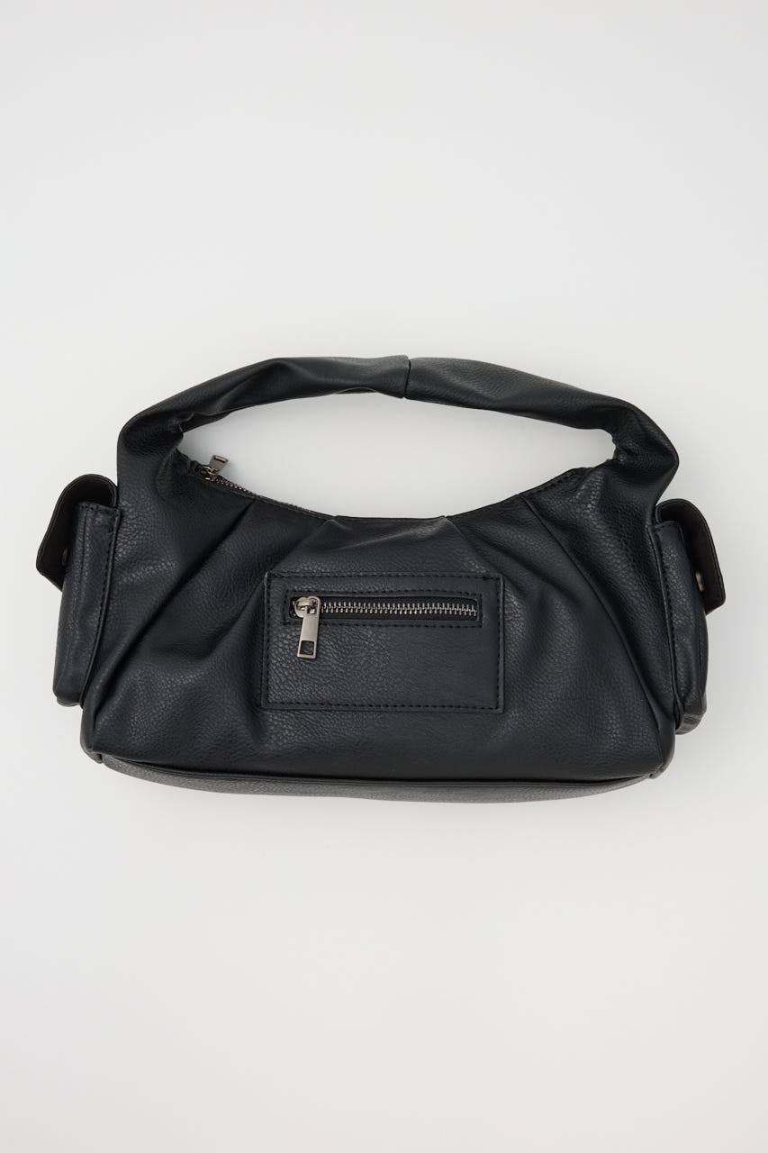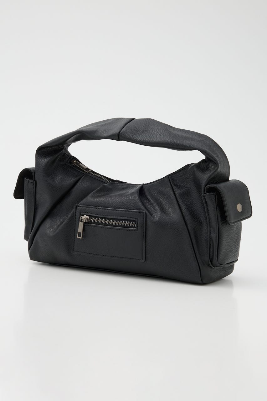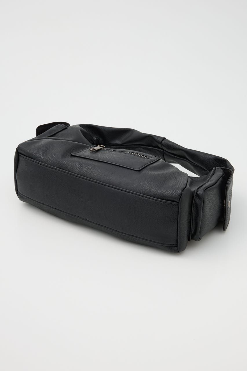 ■POINT:絞感のあるフェイクレザーで、サイドのポケットデザインやジップポケットが存在感のあるバッグ。