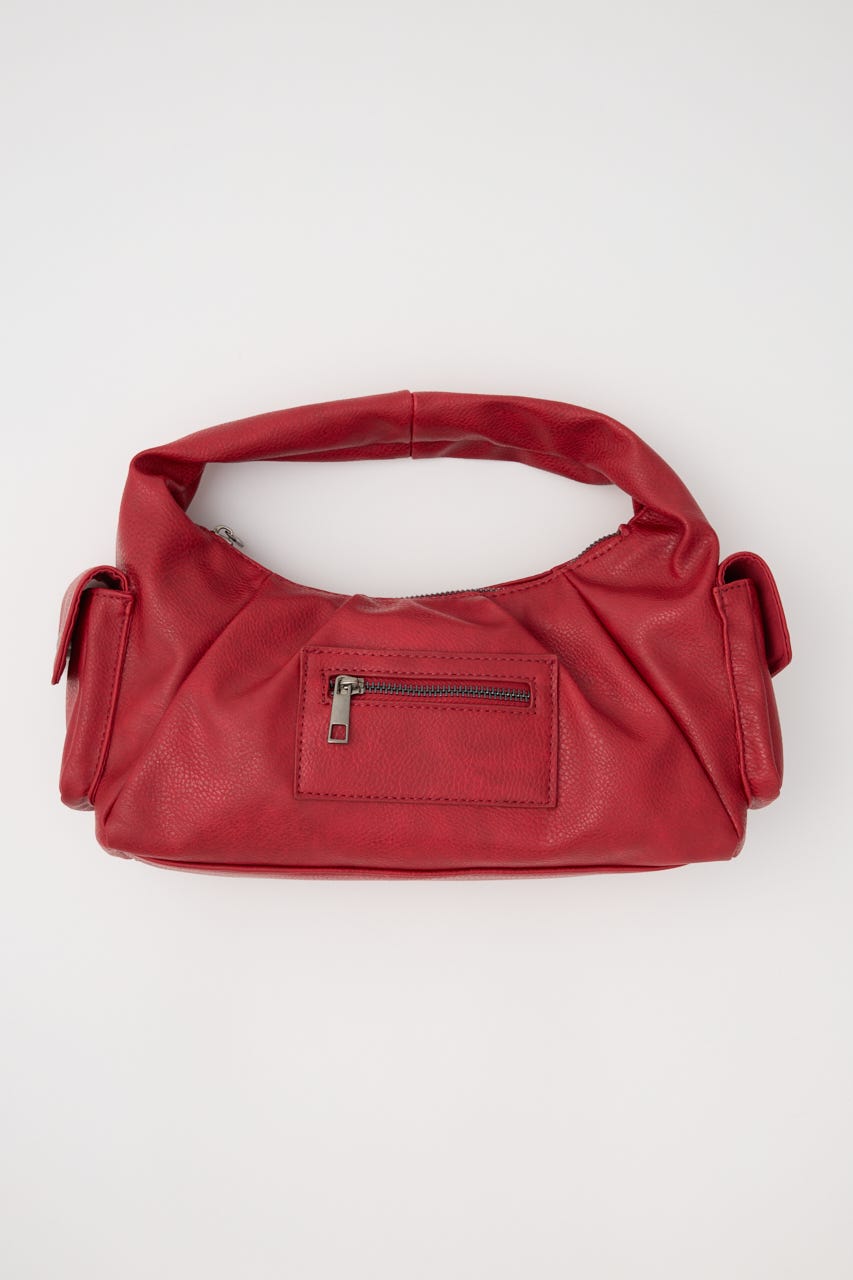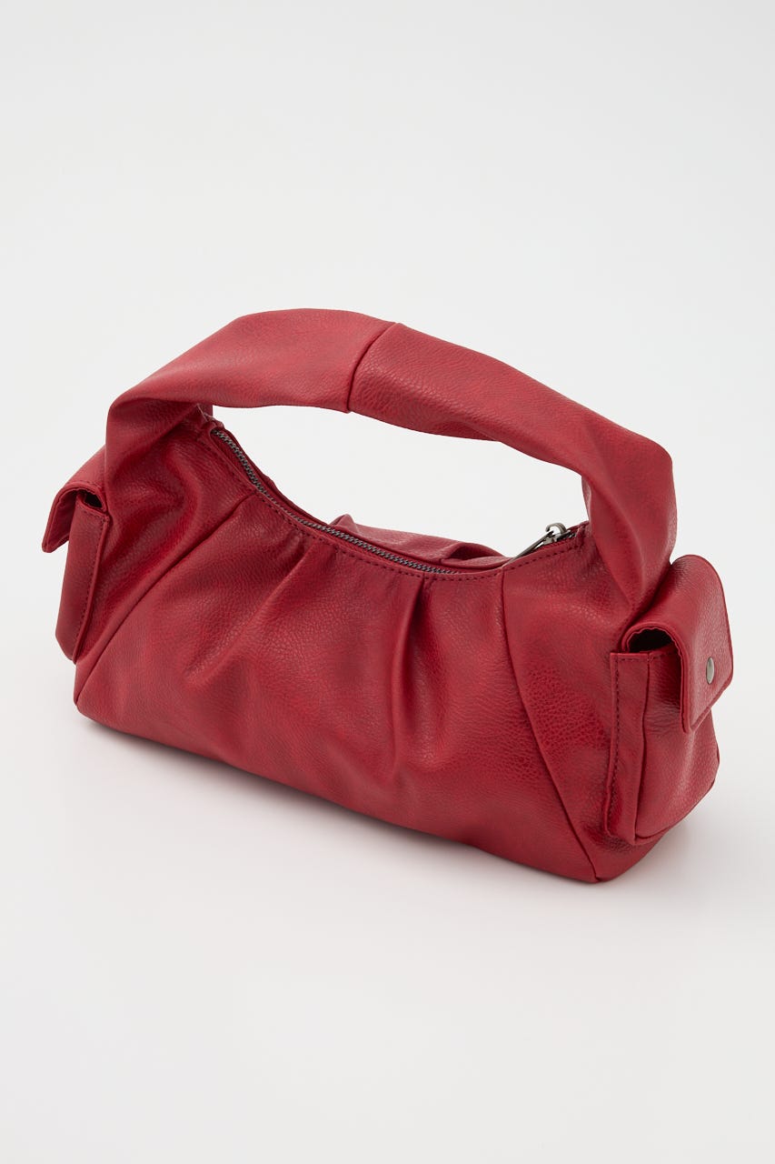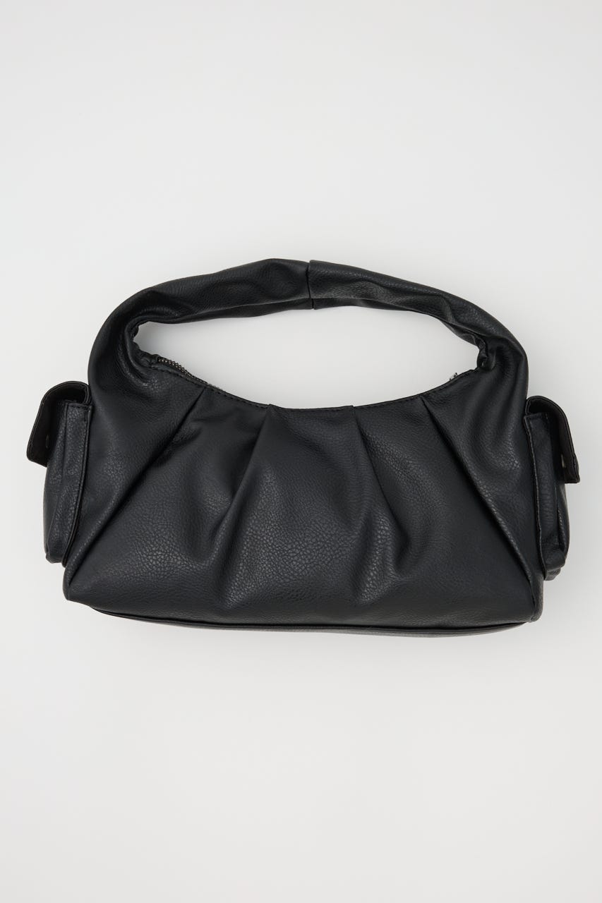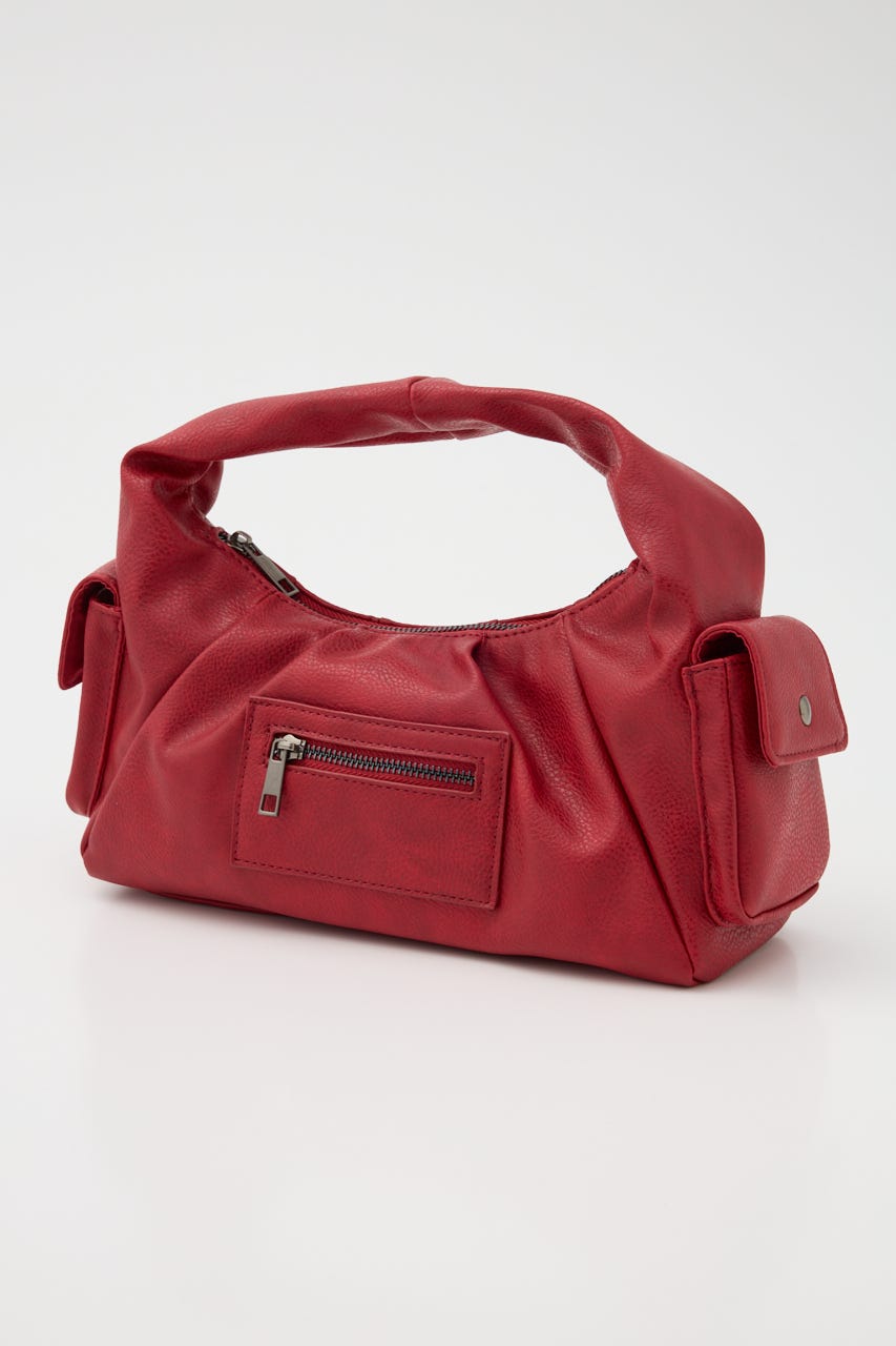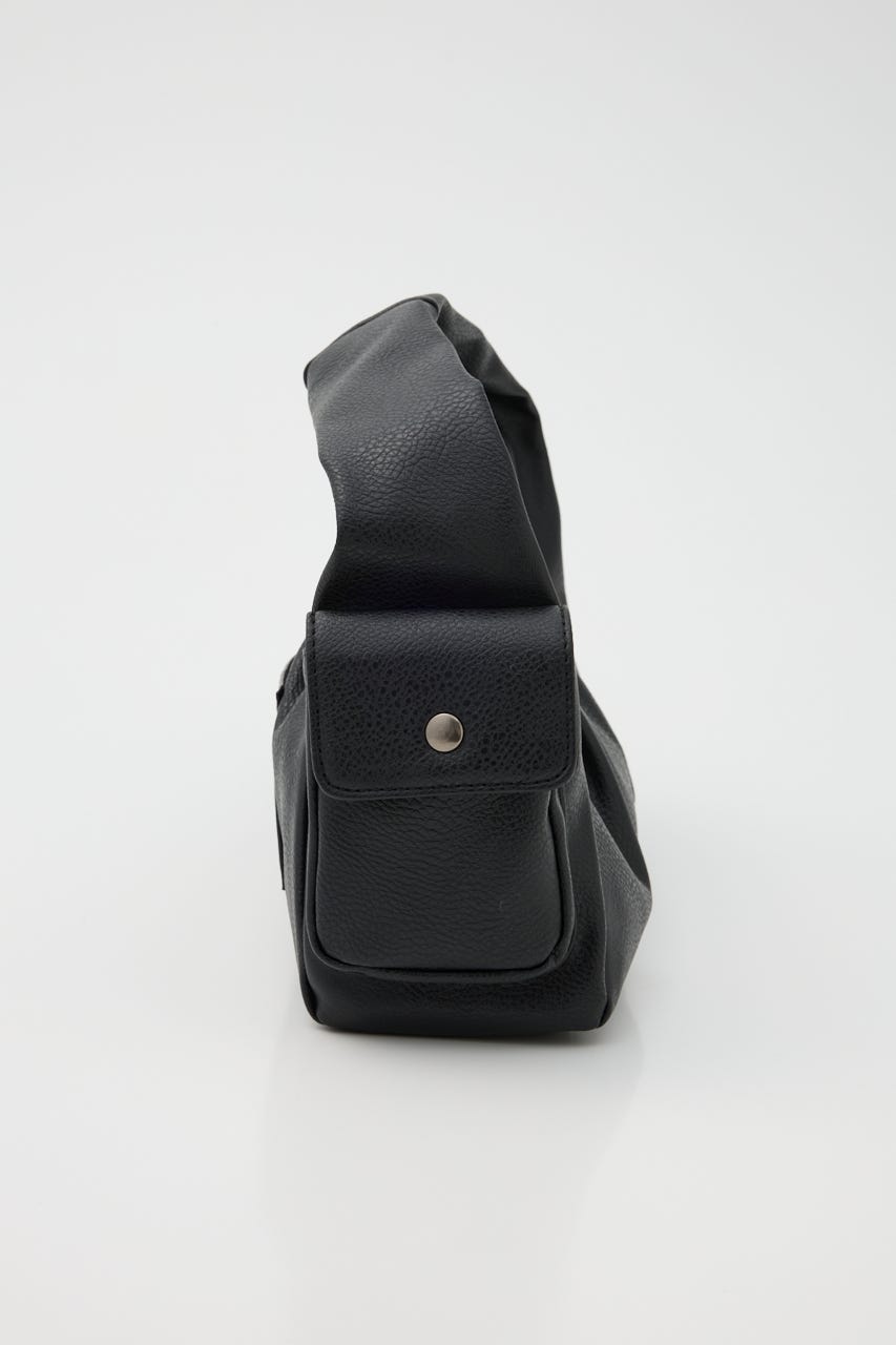 ■POINT:絞感のあるフェイクレザーで、サイドのポケットデザインやジップポケットが存在感のあるバッグ。