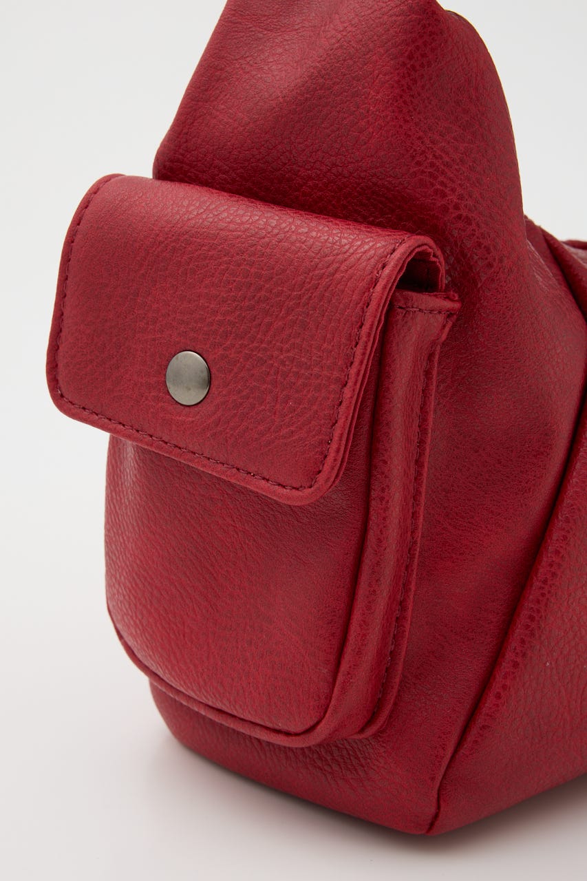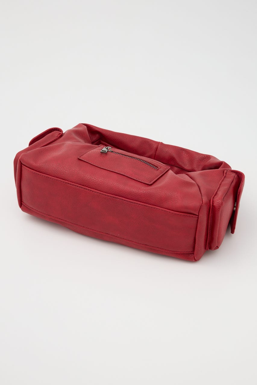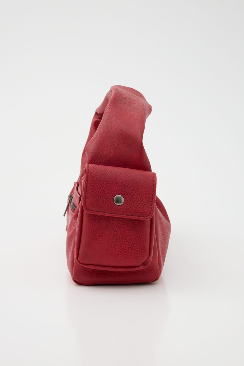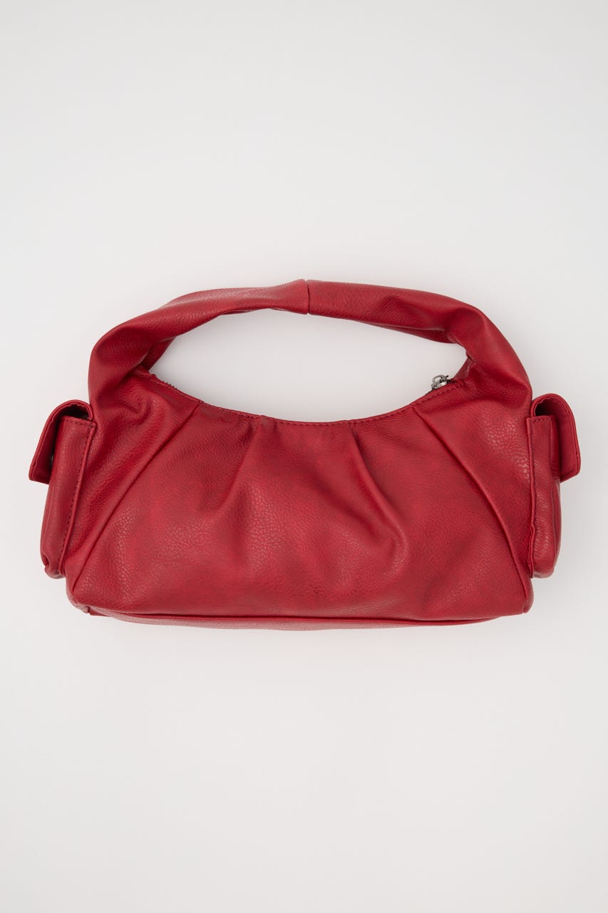■POINT:絞感のあるフェイクレザーで、サイドのポケットデザインやジップポケットが存在感のあるバッグ。