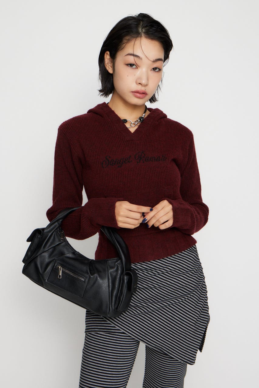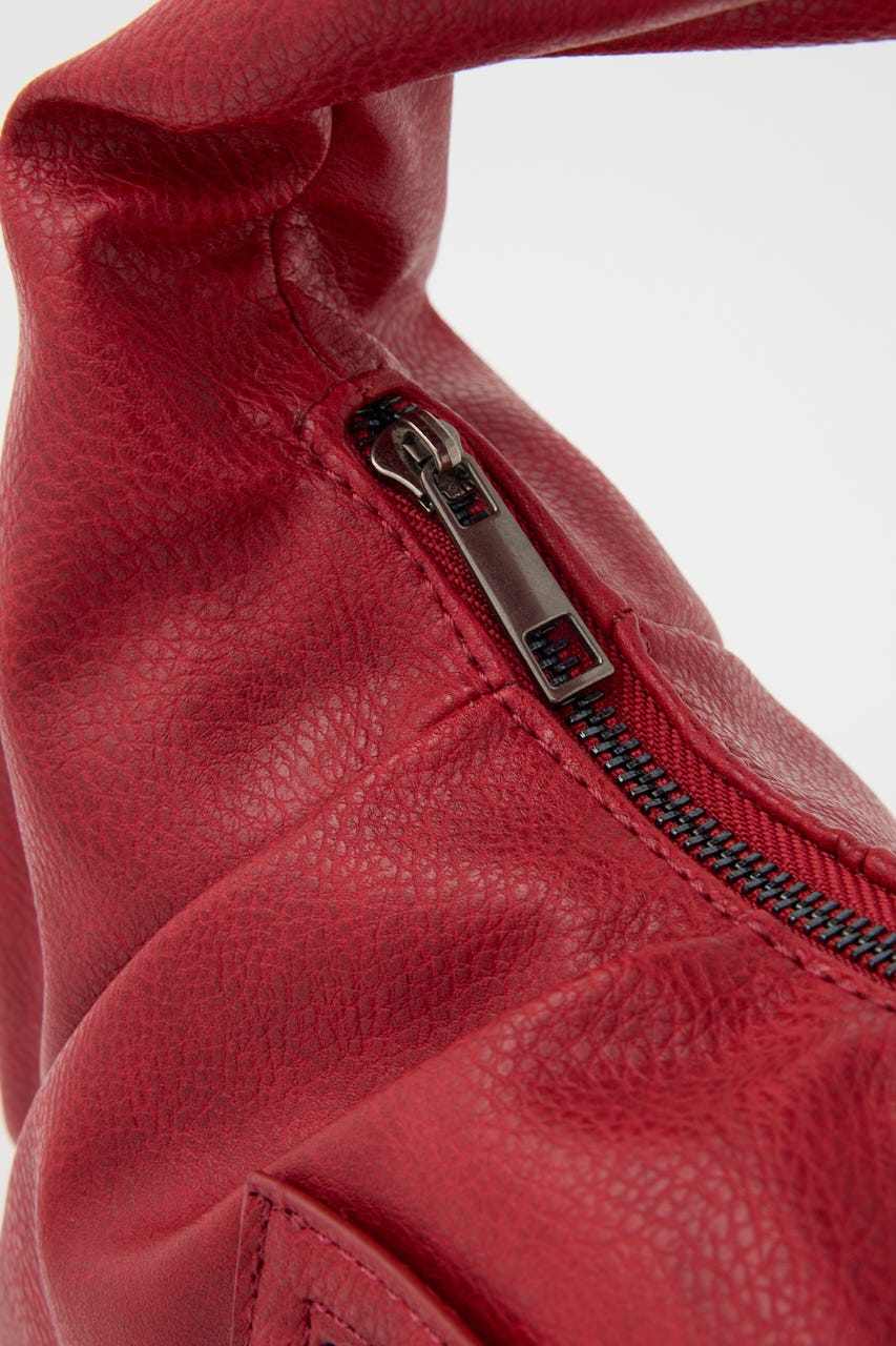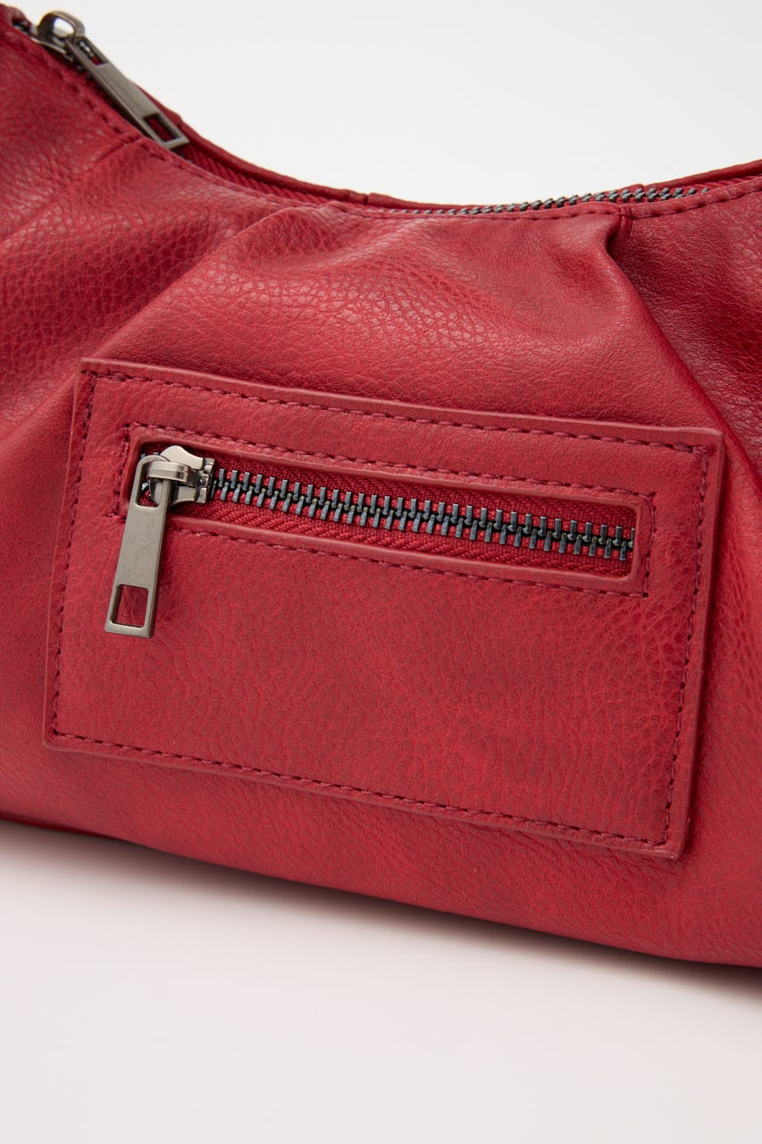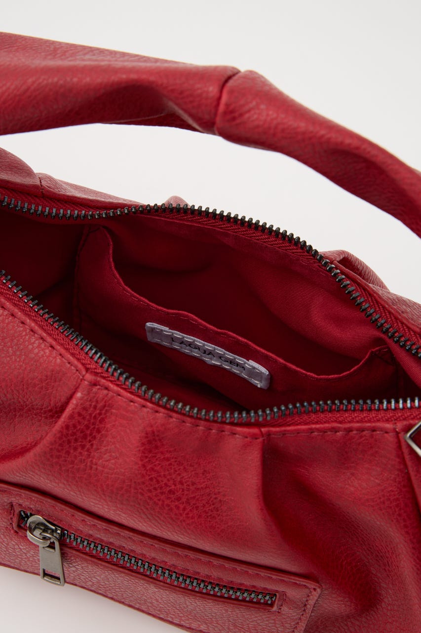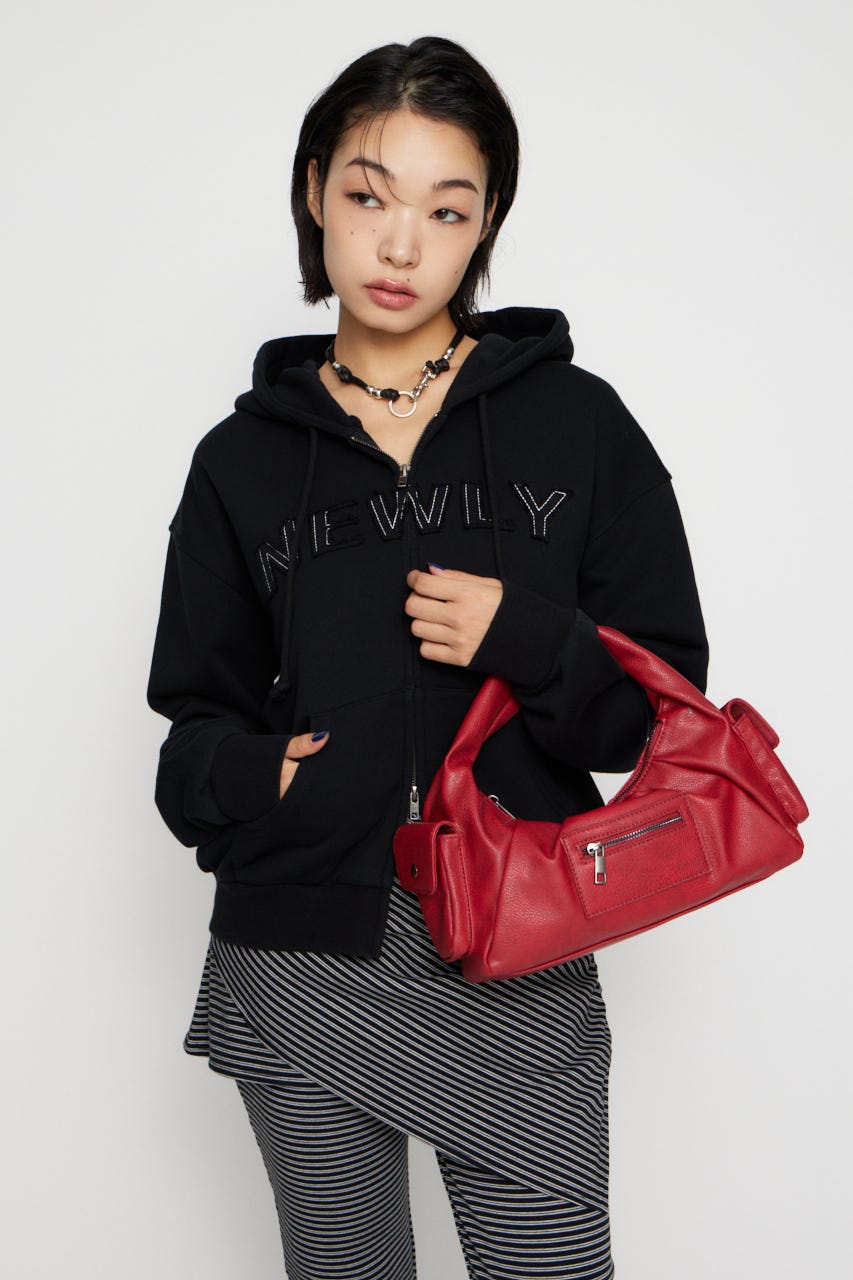 ■POINT:絞感のあるフェイクレザーで、サイドのポケットデザインやジップポケットが存在感のあるバッグ。