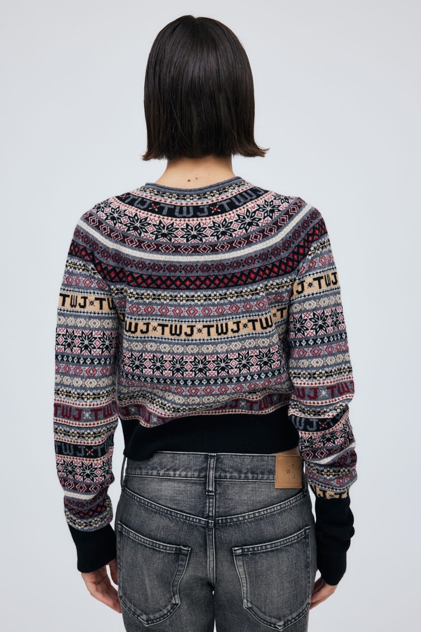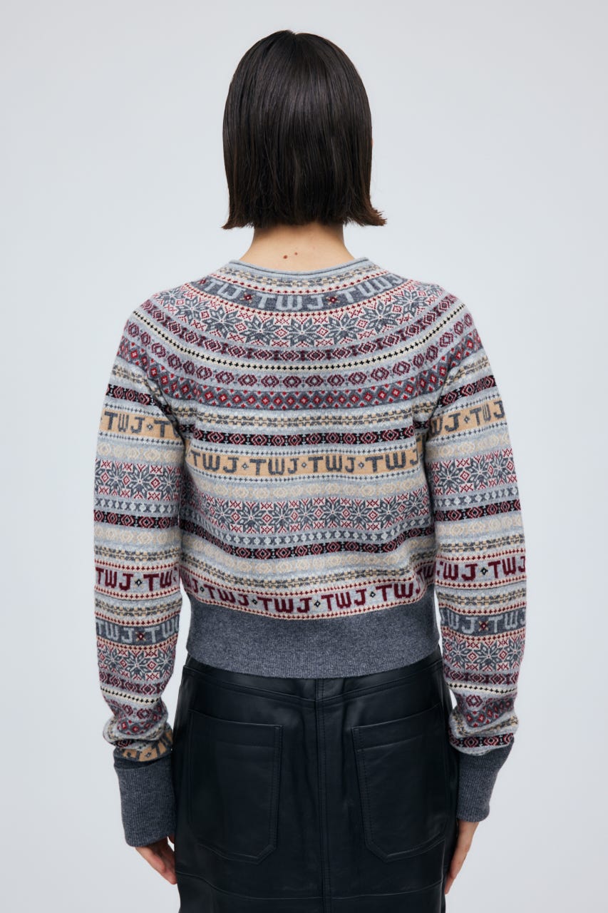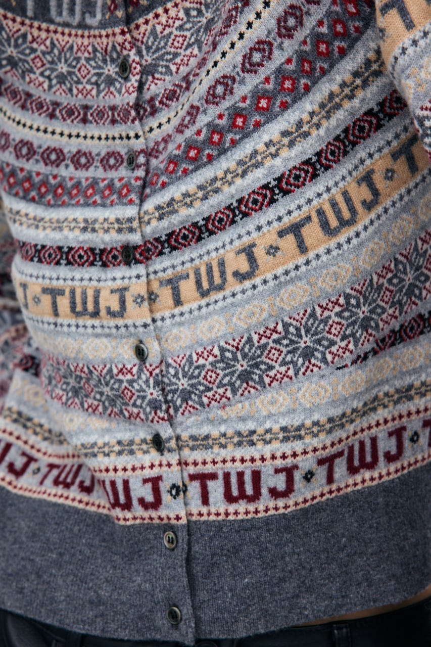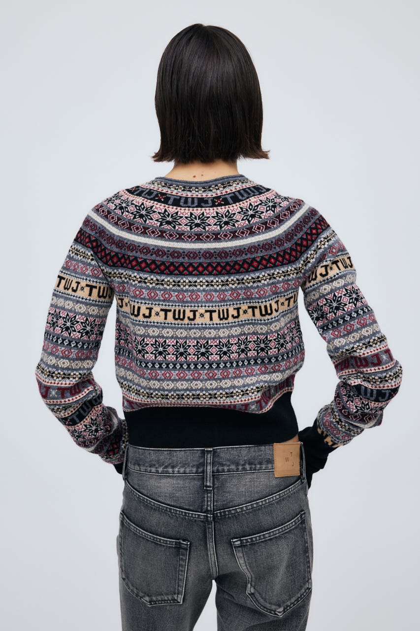 12Gのウールジャガードで雪の結晶やTWJのロゴを組み込んでスタイリッシュに仕上げた一着。