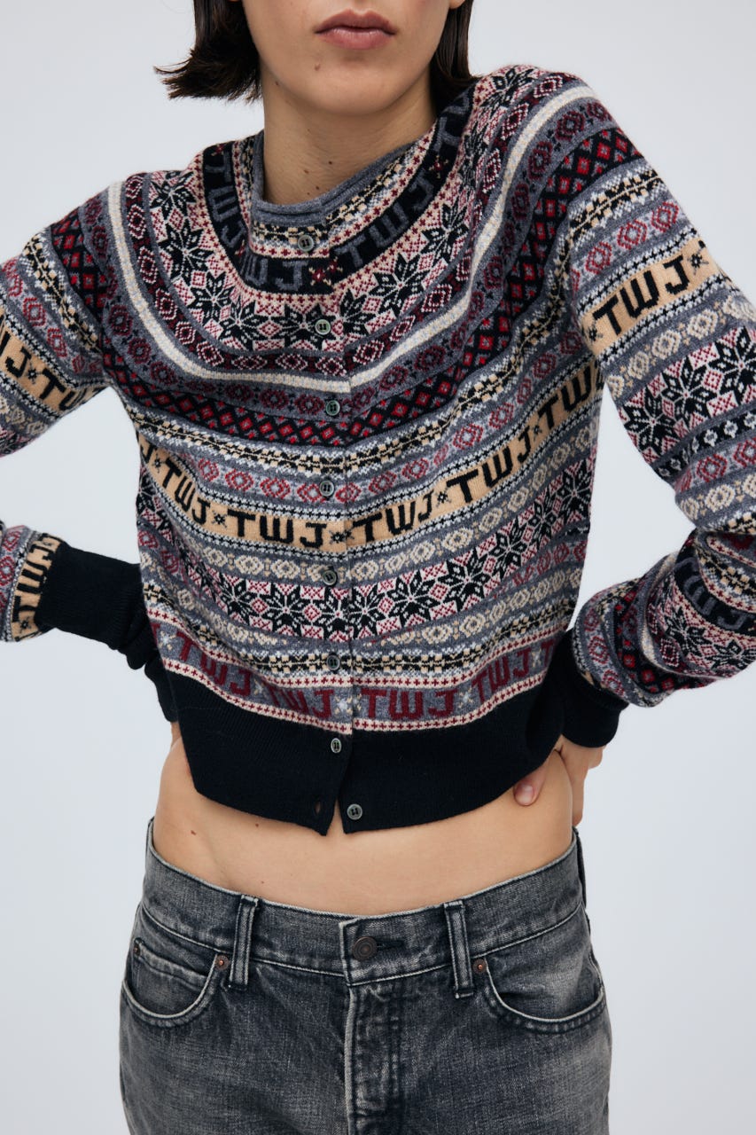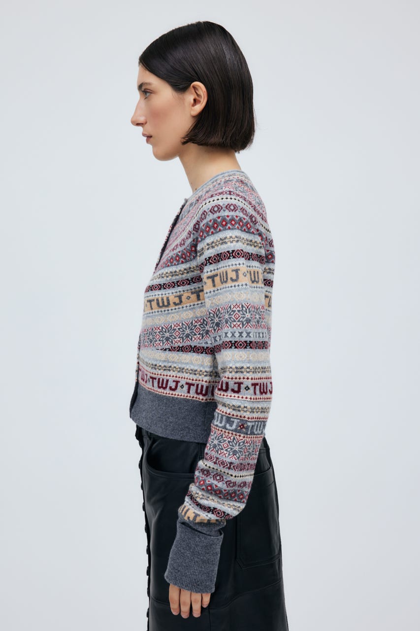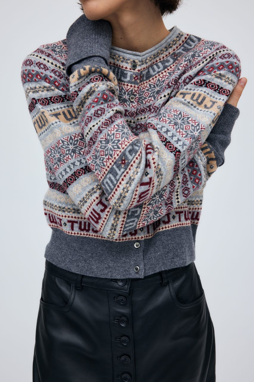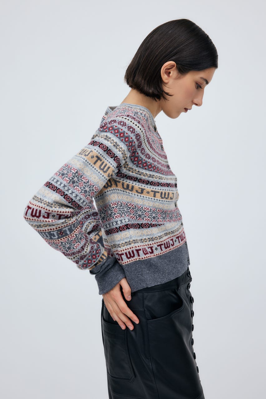 12Gのウールジャガードで雪の結晶やTWJのロゴを組み込んでスタイリッシュに仕上げた一着。