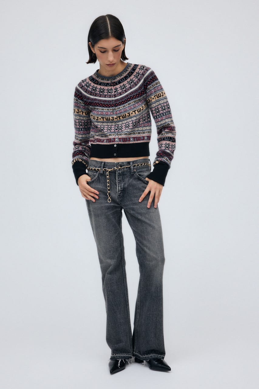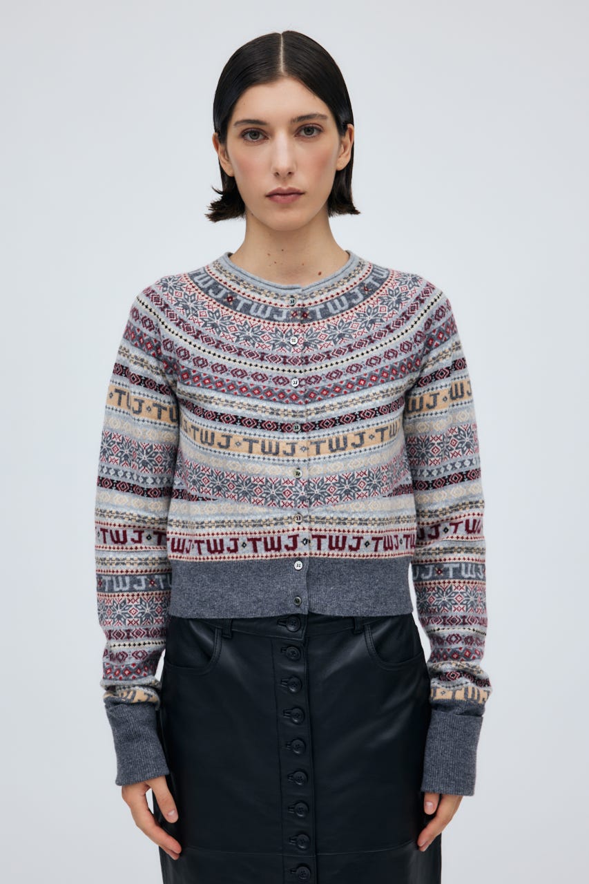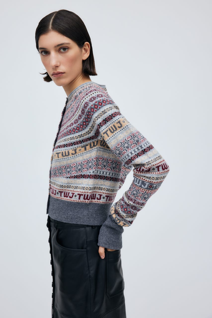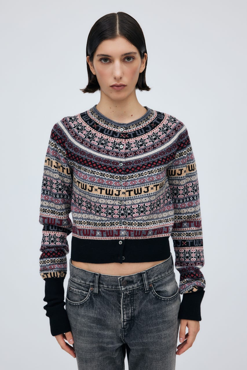 12Gのウールジャガードで雪の結晶やTWJのロゴを組み込んでスタイリッシュに仕上げた一着。
