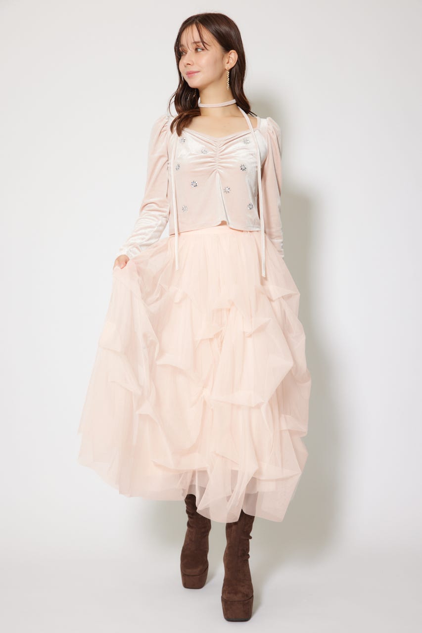贅沢にチュール生地を使用したボリューム感が魅力の目を惹くチュールスカート。