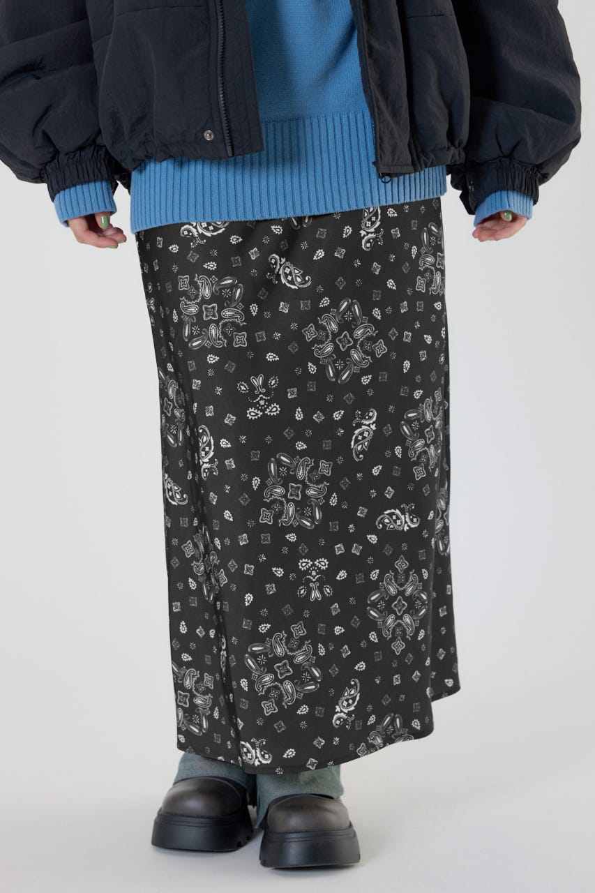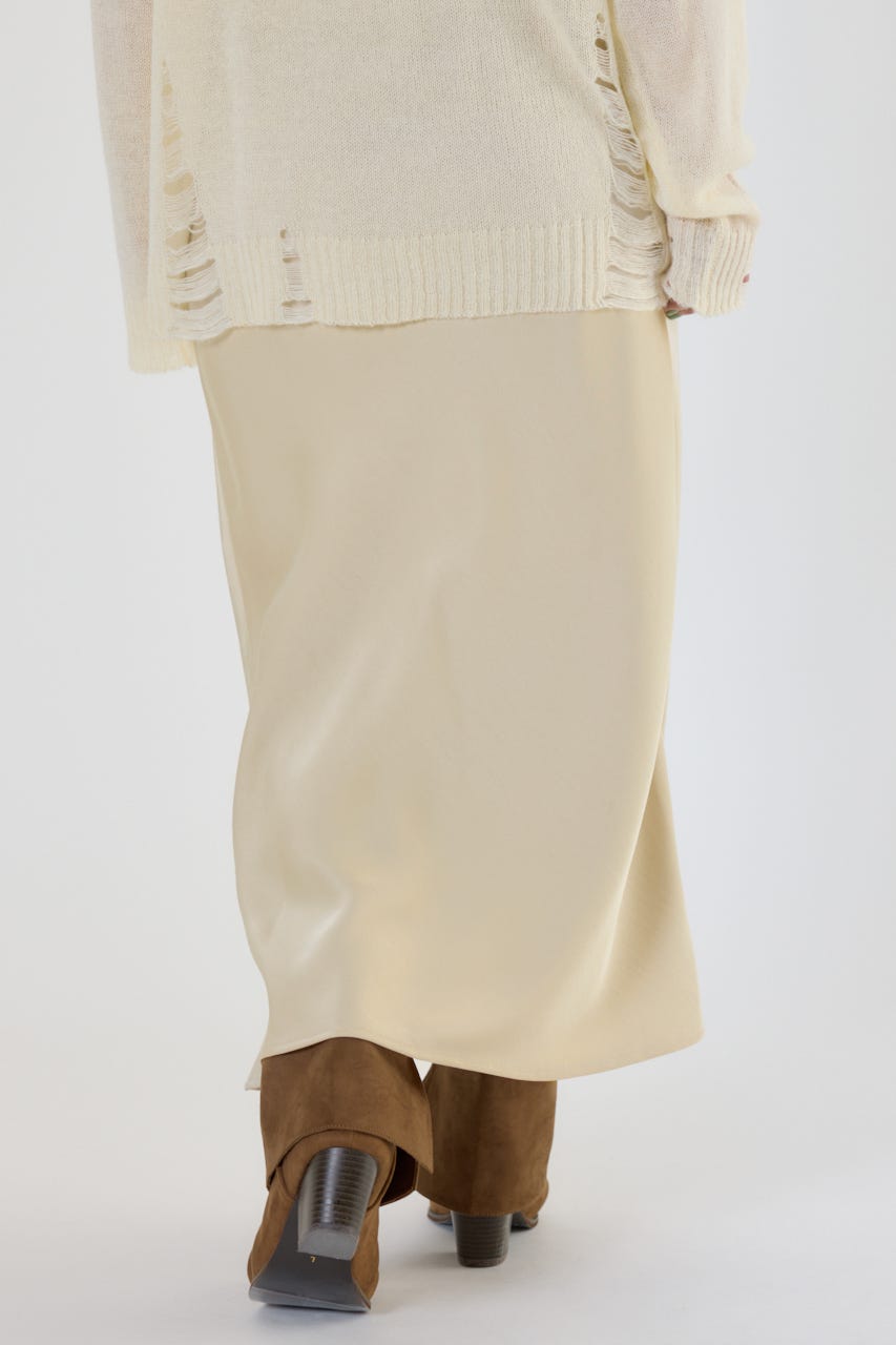 腰周りはすっきりとしながら程よいサーキュラーシルエットのサテンスカートです。