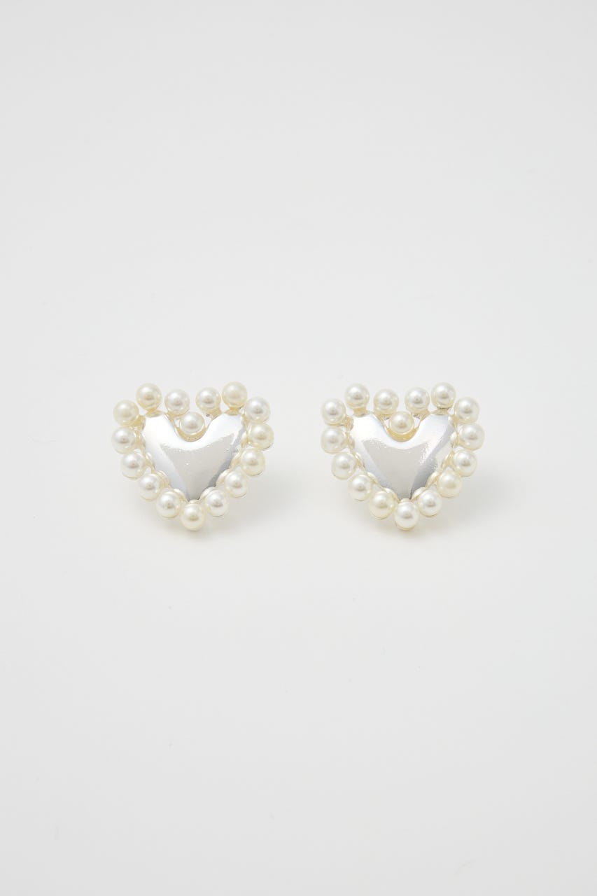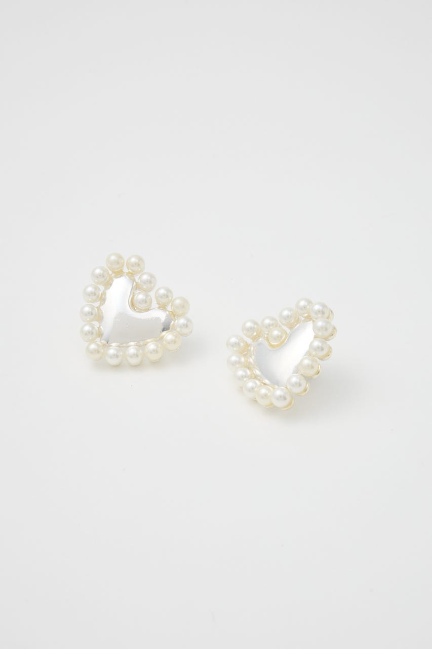 フェイクパールに囲まれたぷっくりハートが大人可愛い贅沢イヤリング。