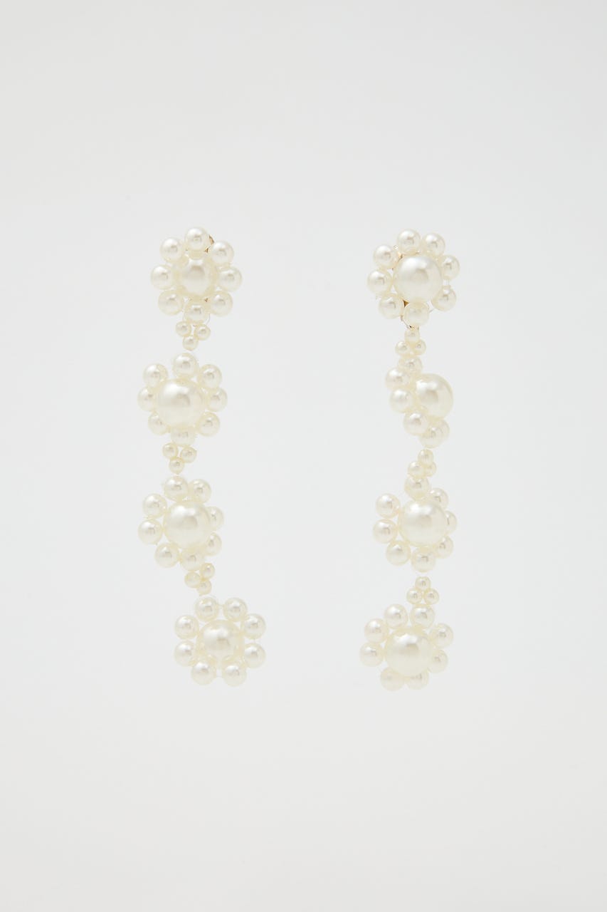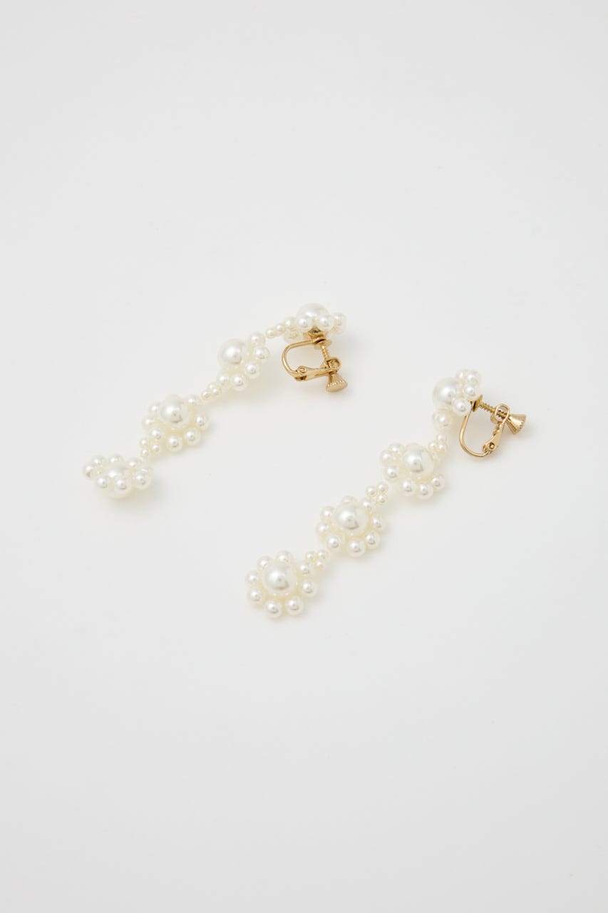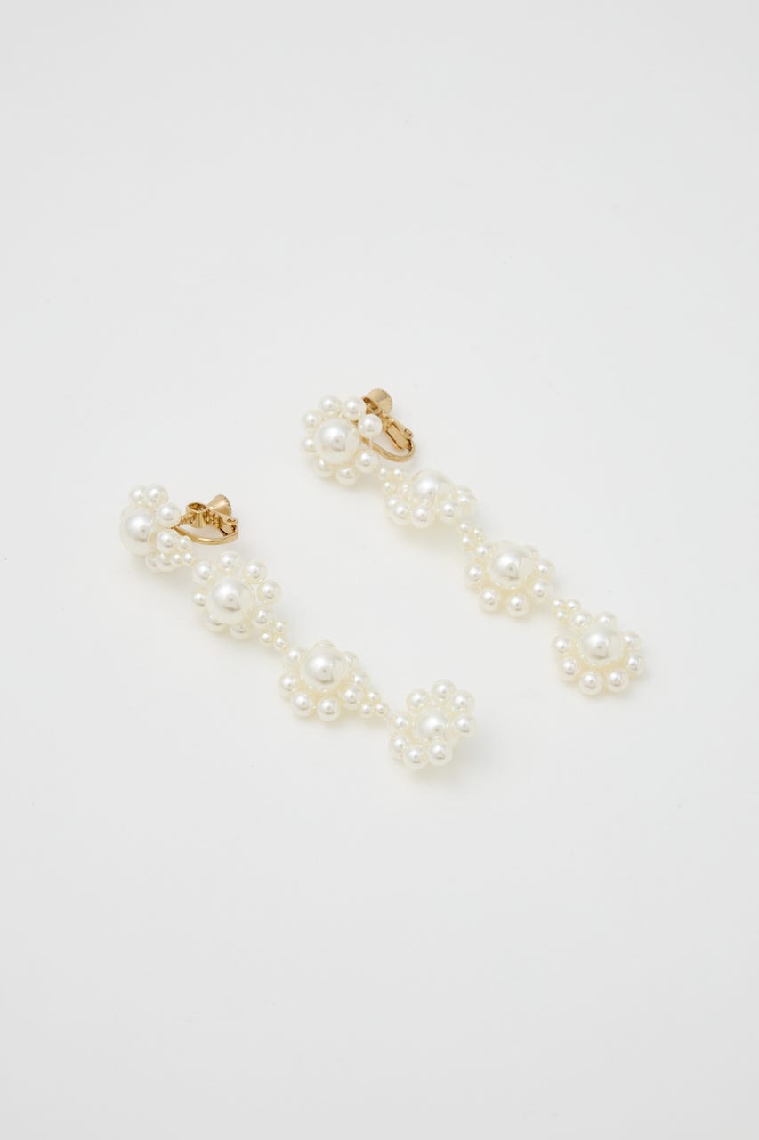 ビーズで編んだ小花が可愛らしいデザインの4連イヤリング。