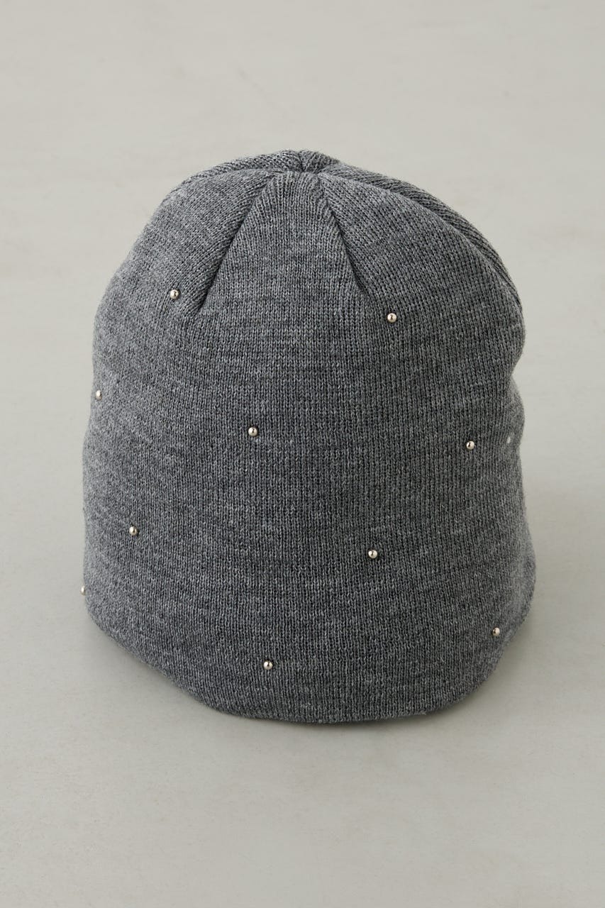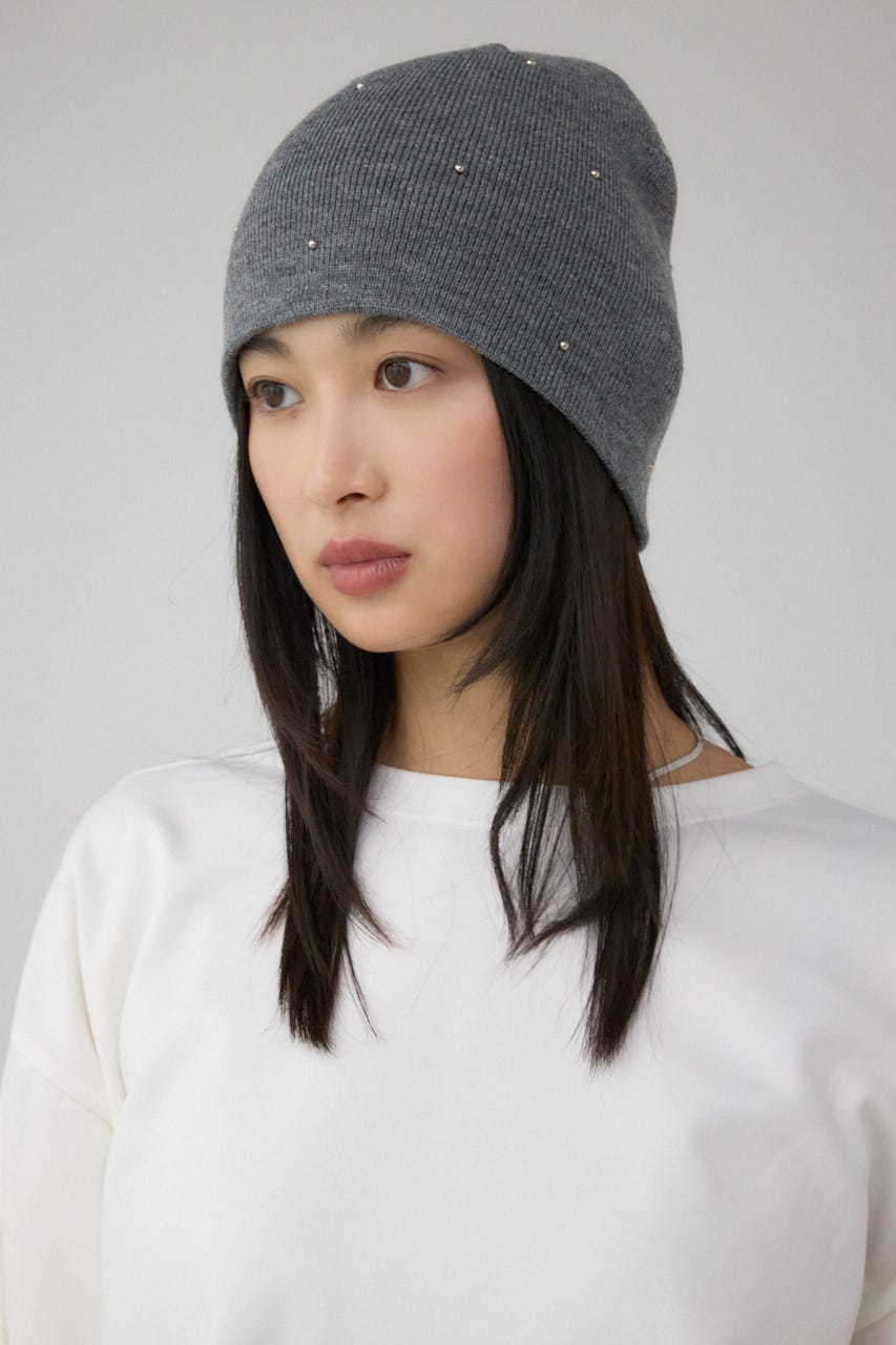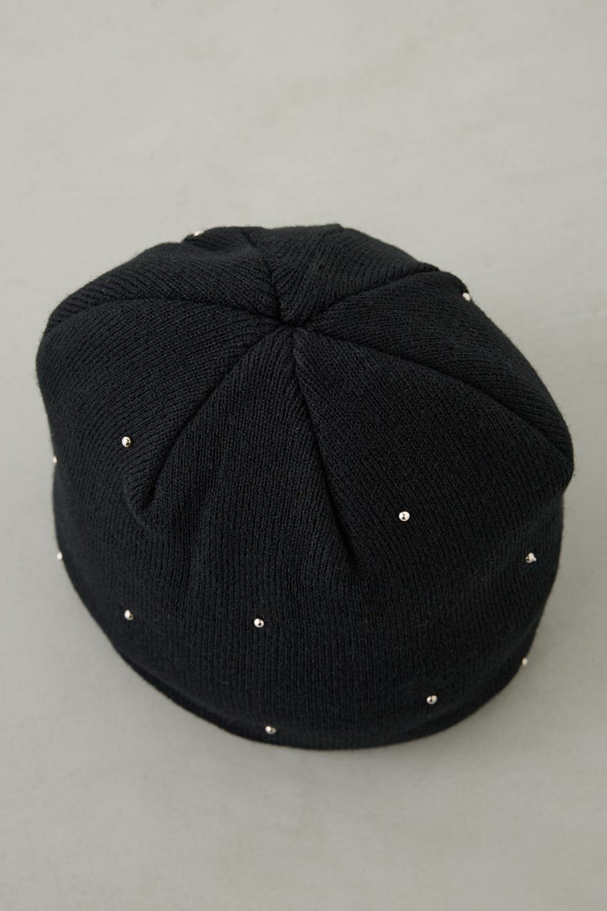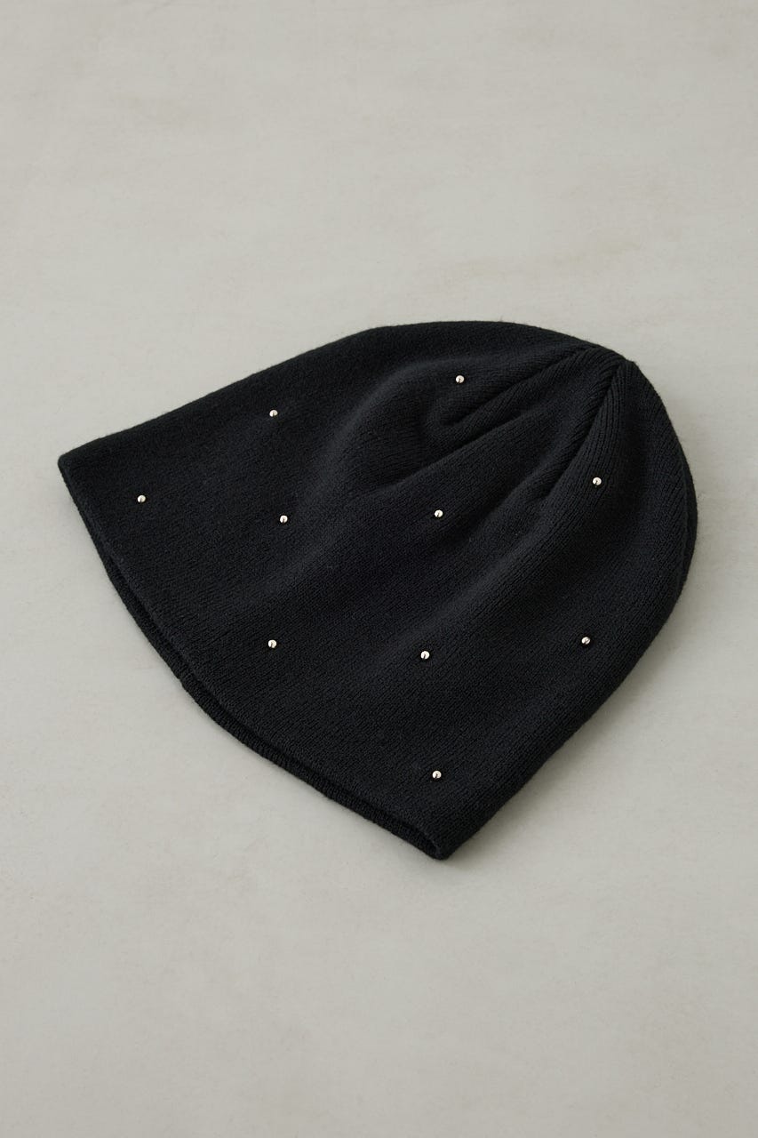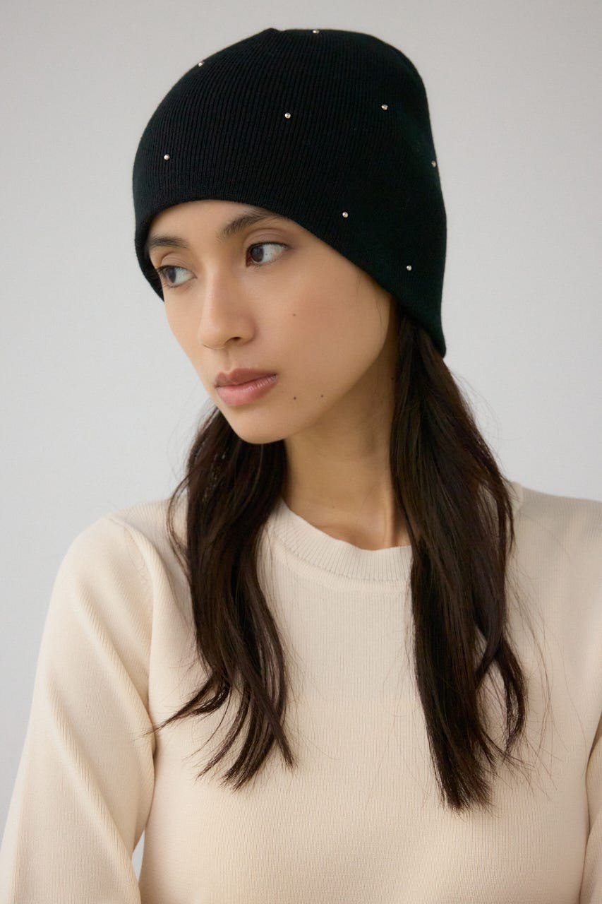 キラッと光るスタッズとパールがアクセントの、冬の主役ニットキャップ。