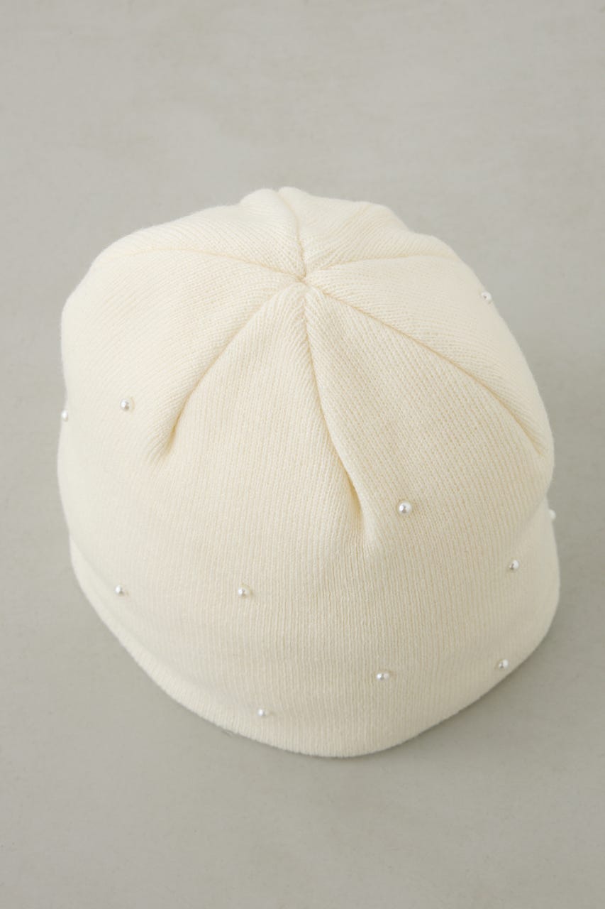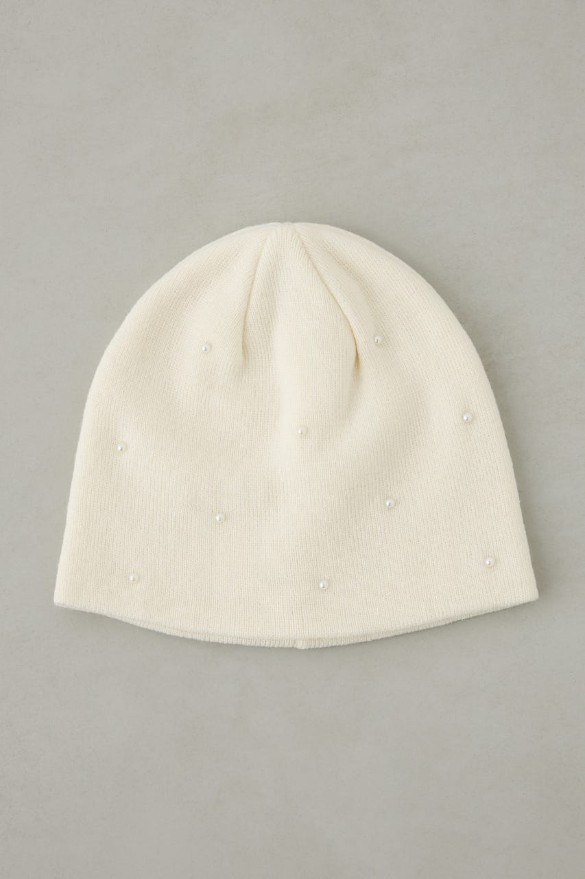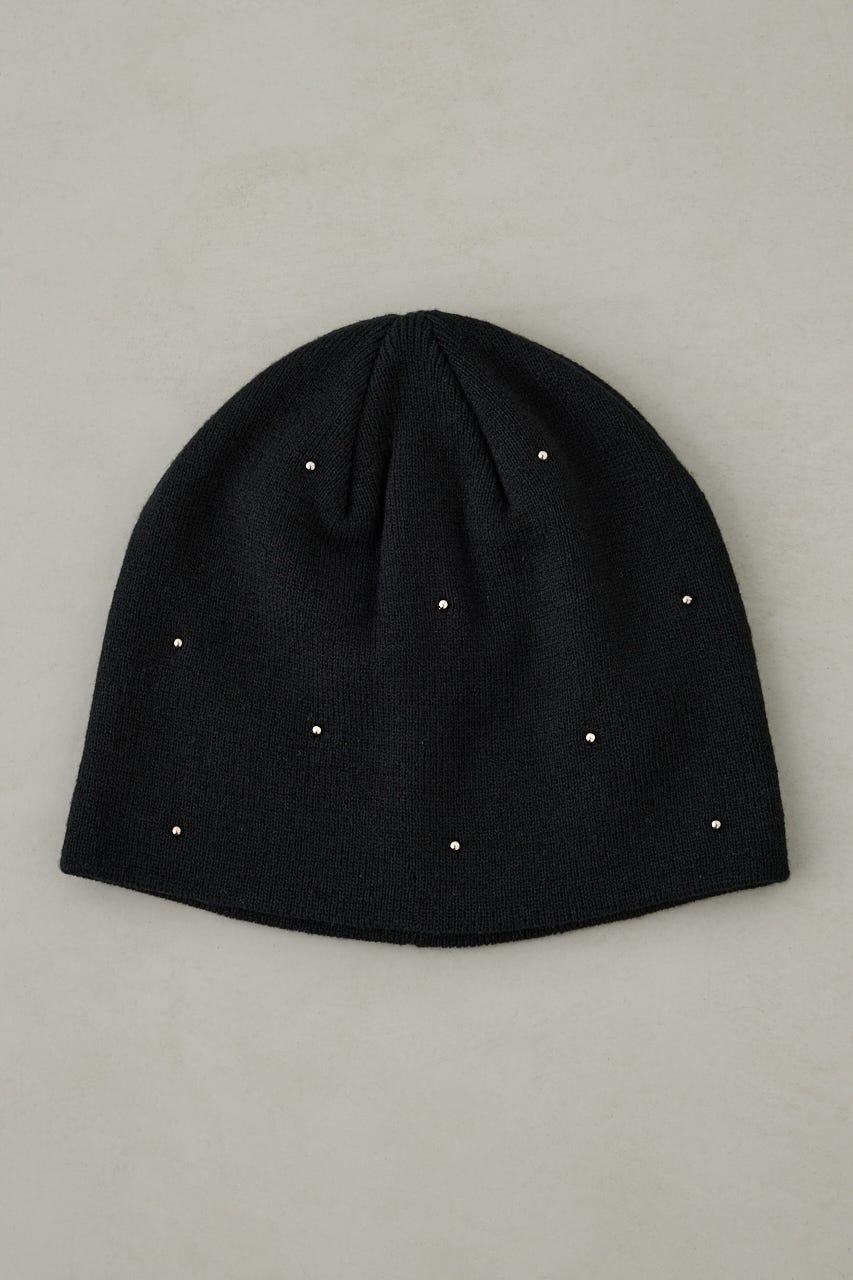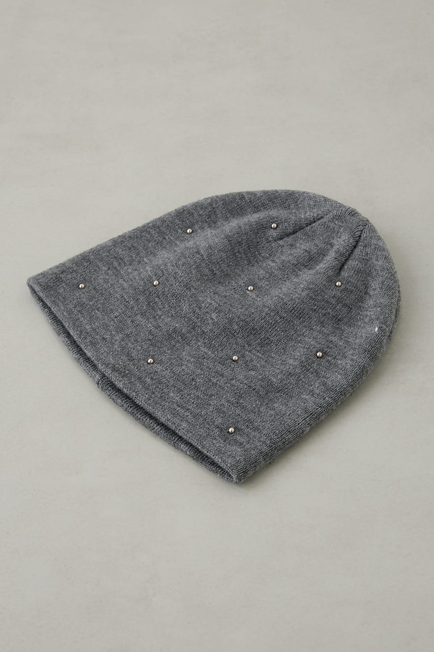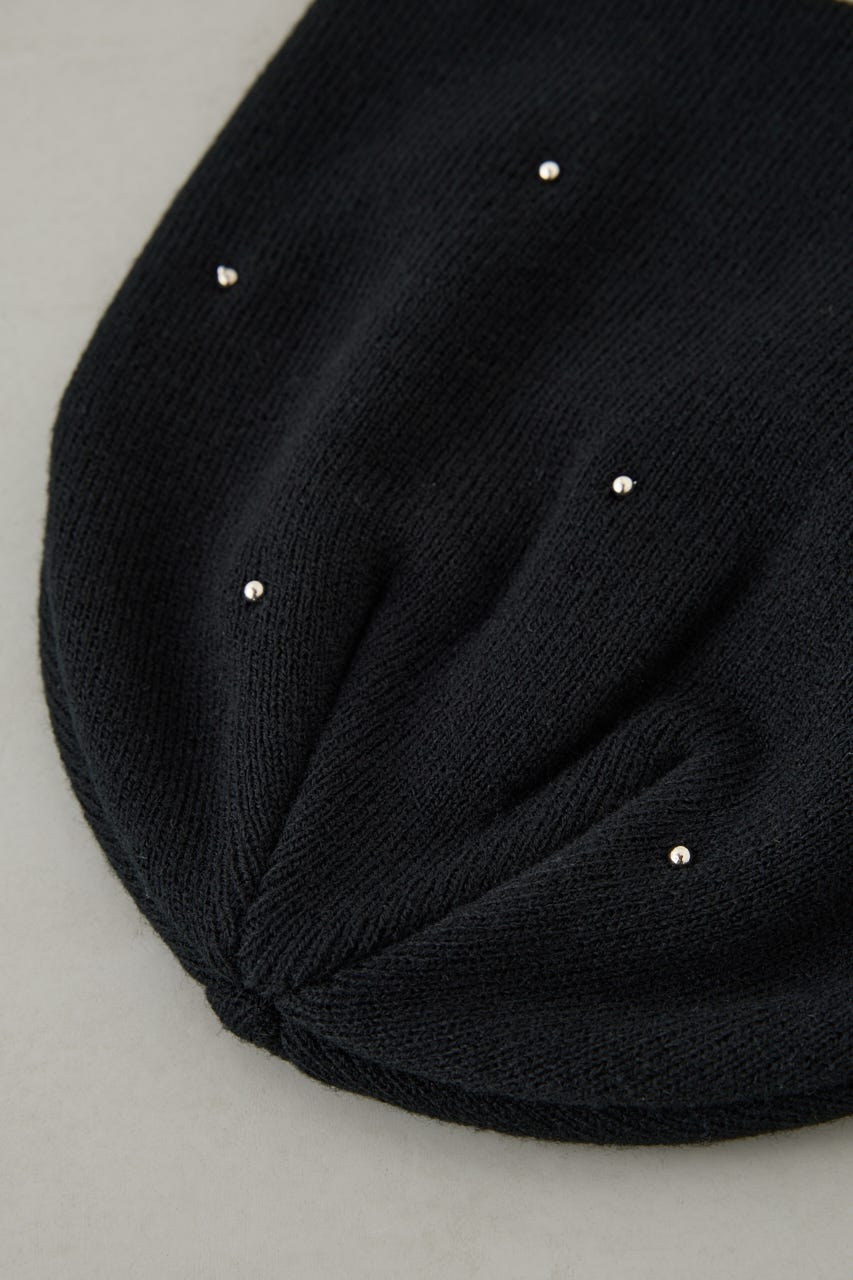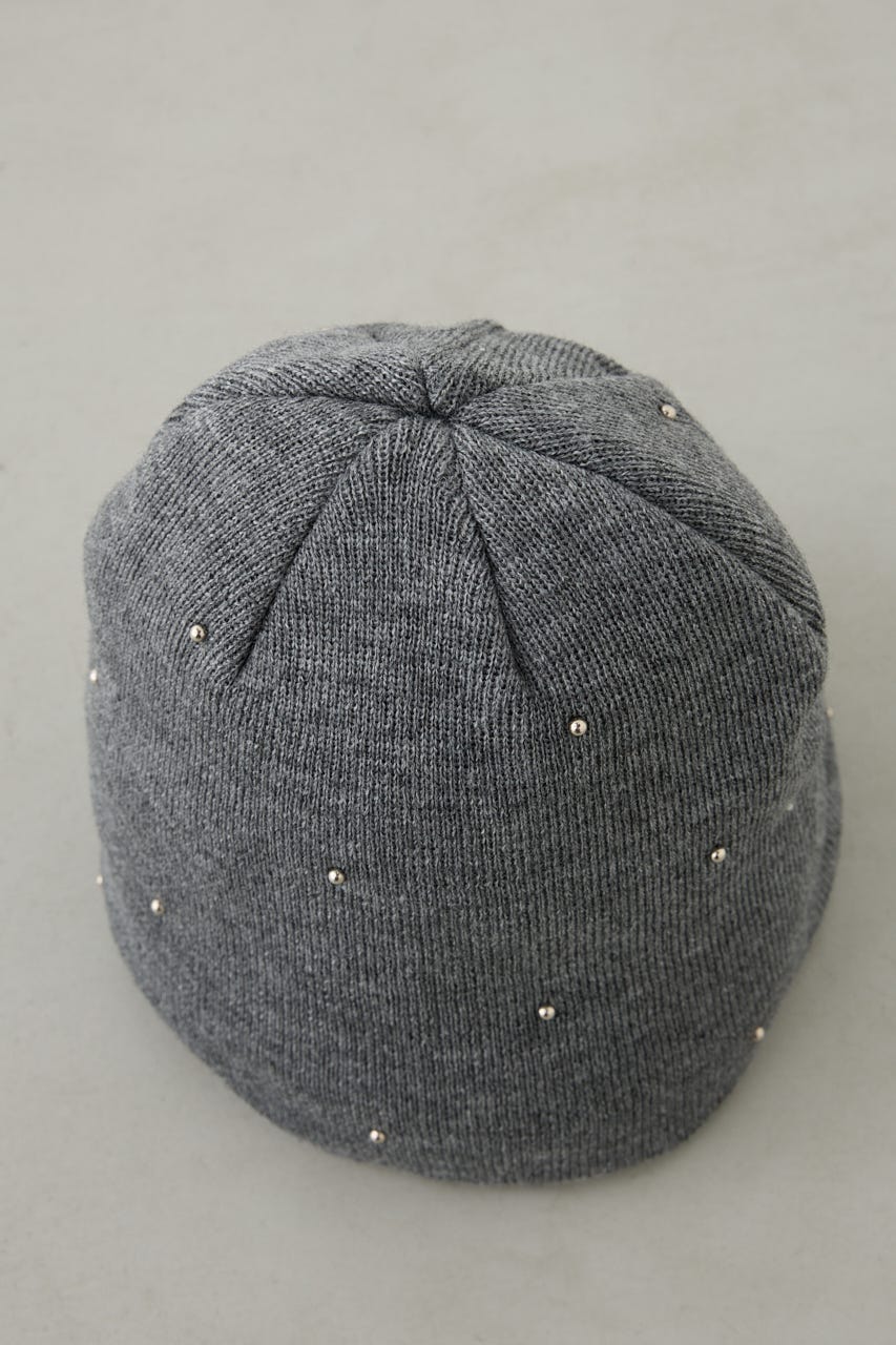 キラッと光るスタッズとパールがアクセントの、冬の主役ニットキャップ。