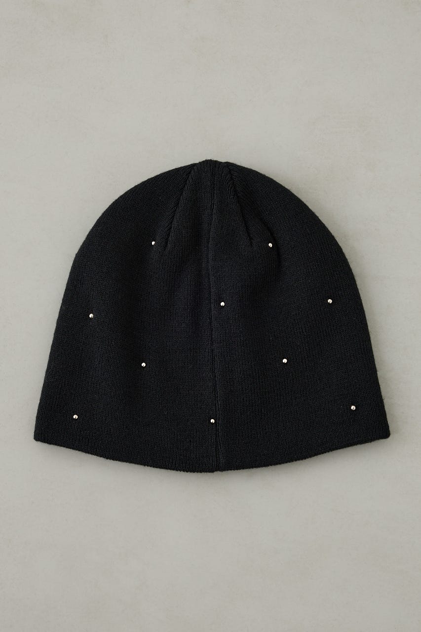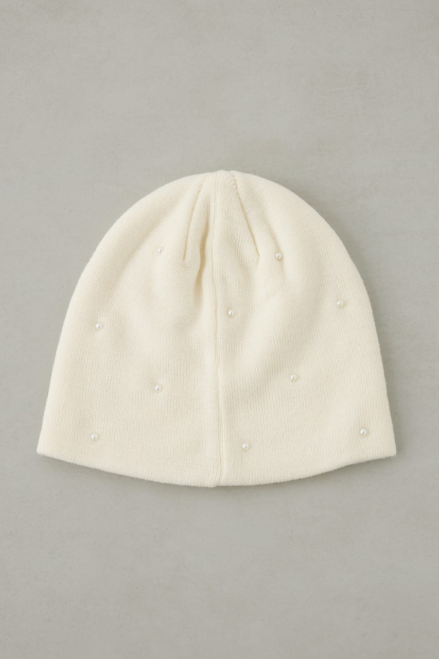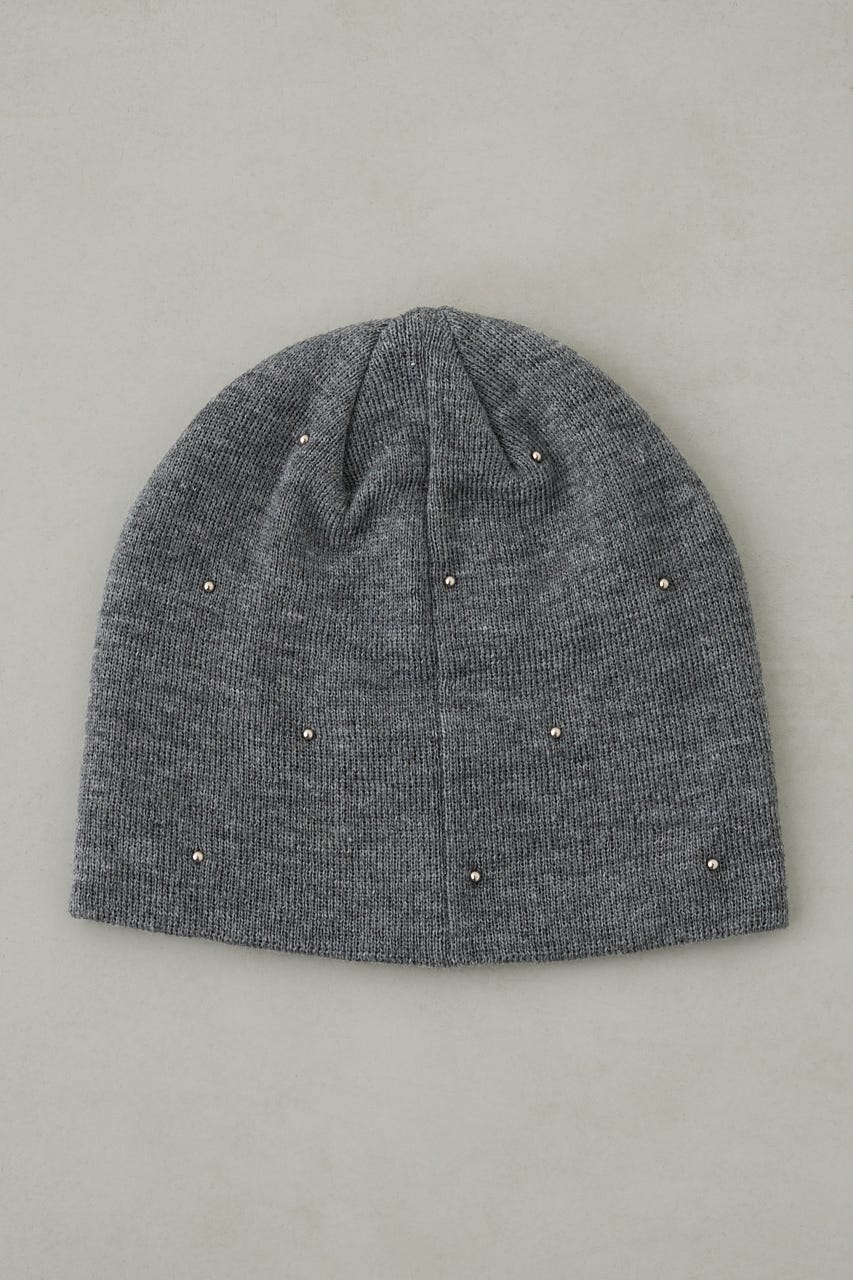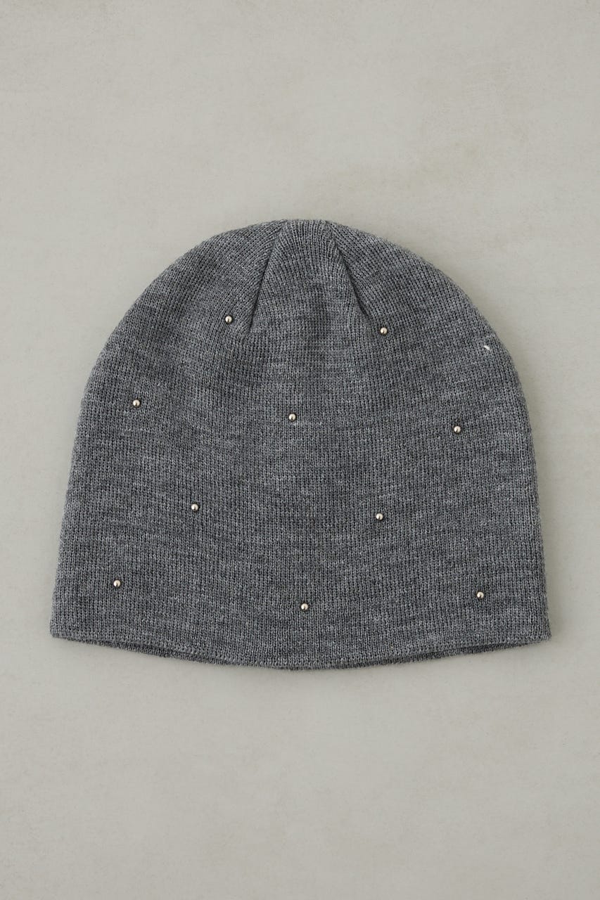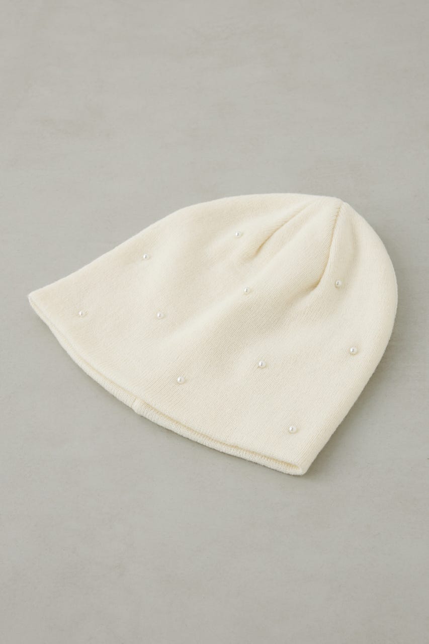 キラッと光るスタッズとパールがアクセントの、冬の主役ニットキャップ。