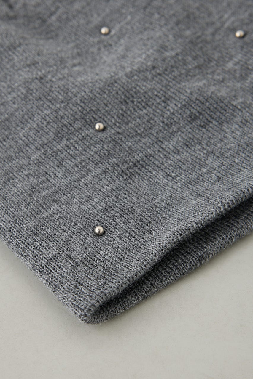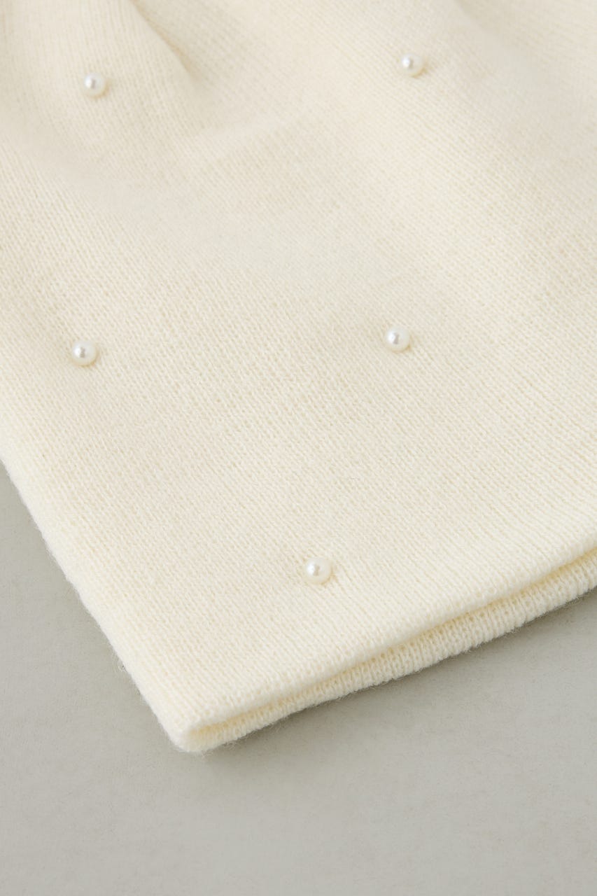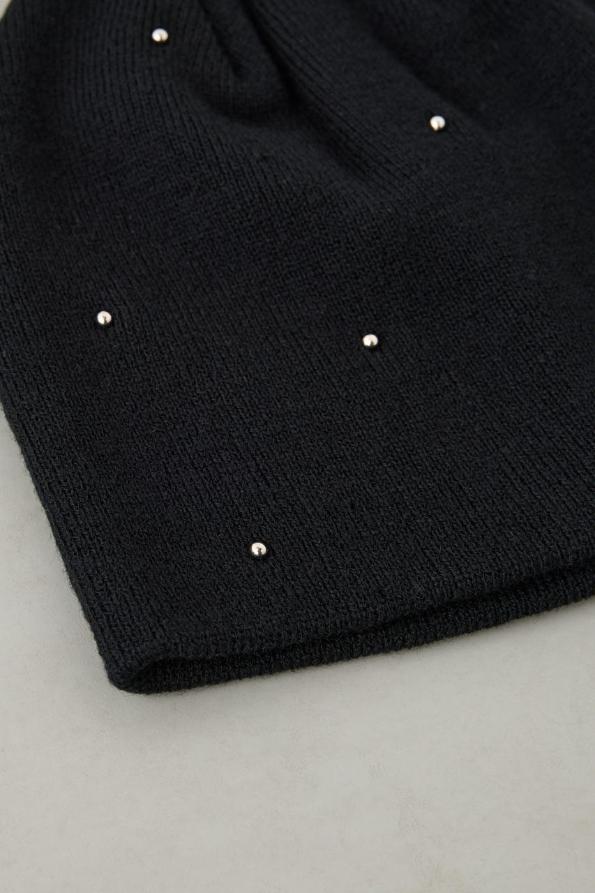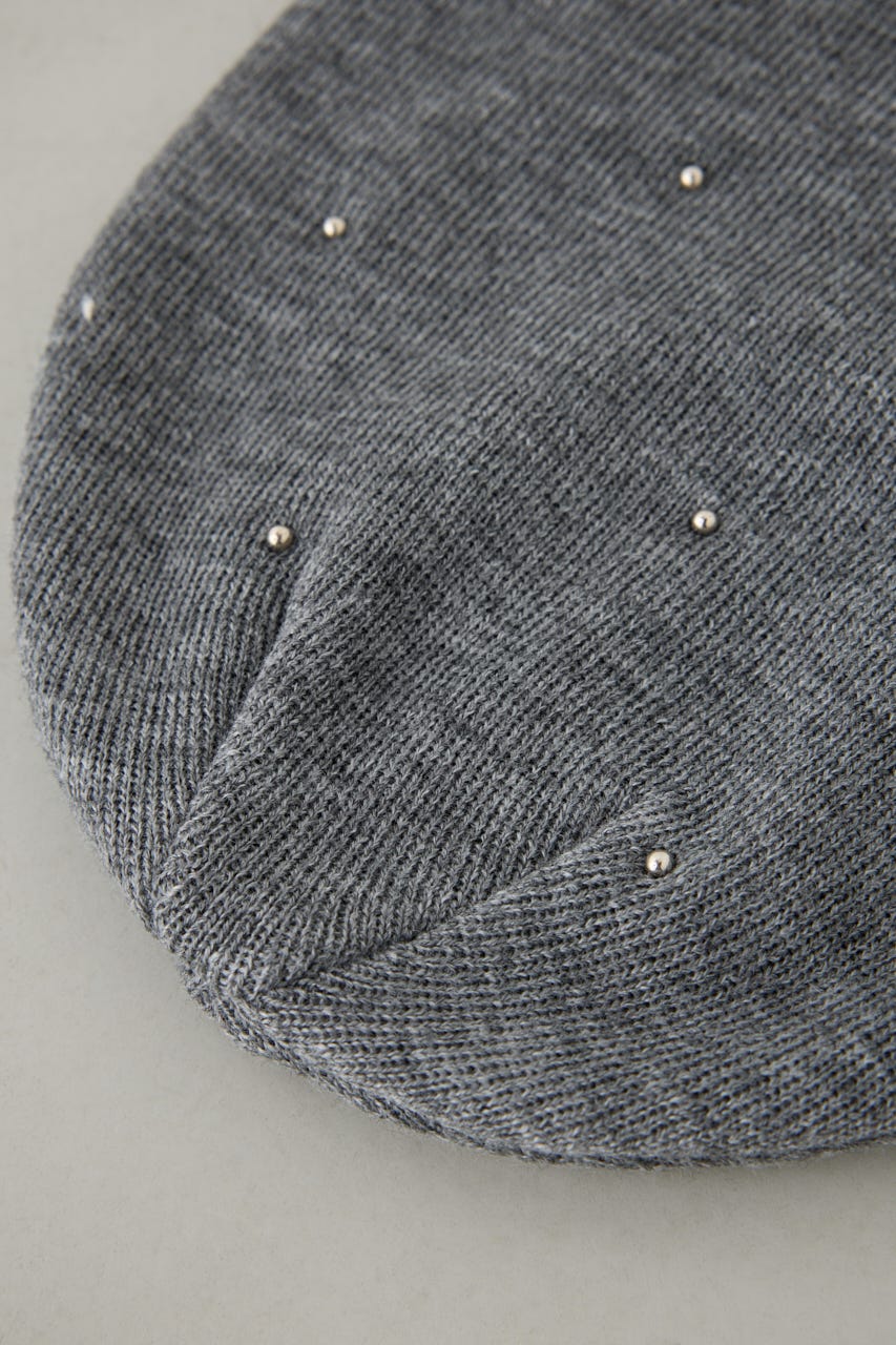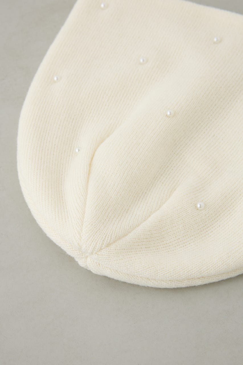 キラッと光るスタッズとパールがアクセントの、冬の主役ニットキャップ。