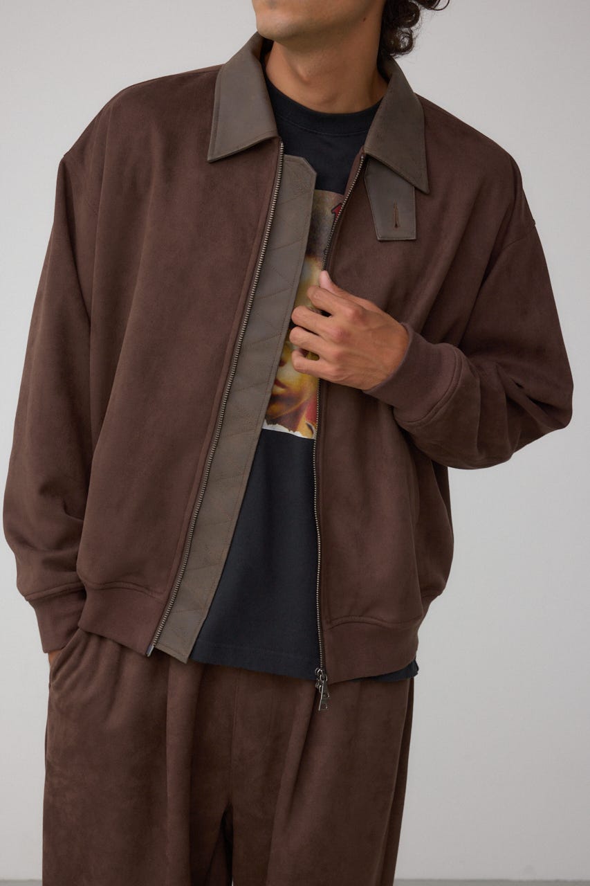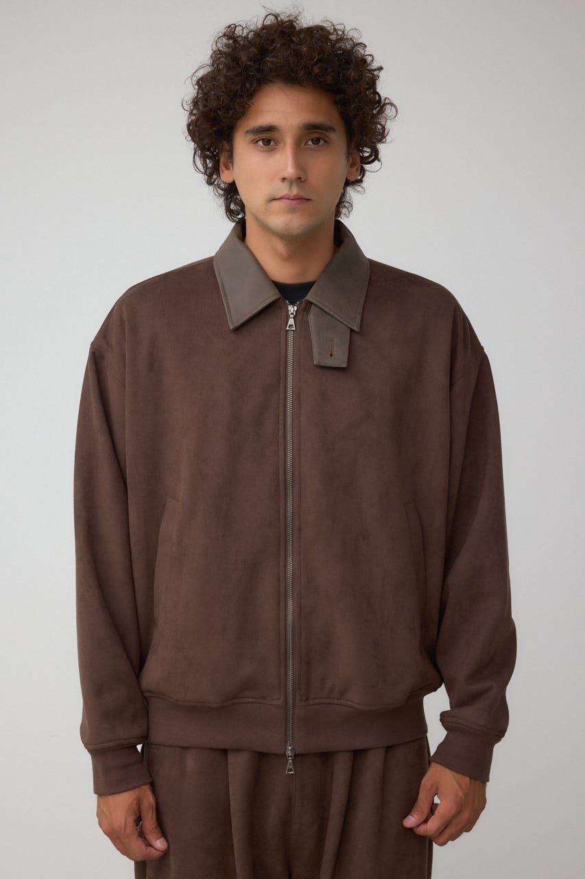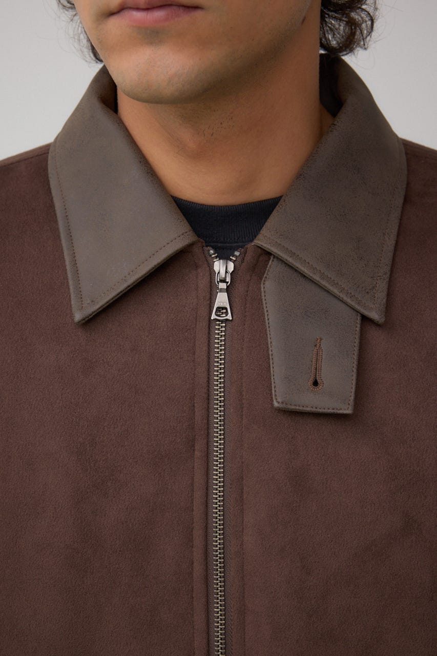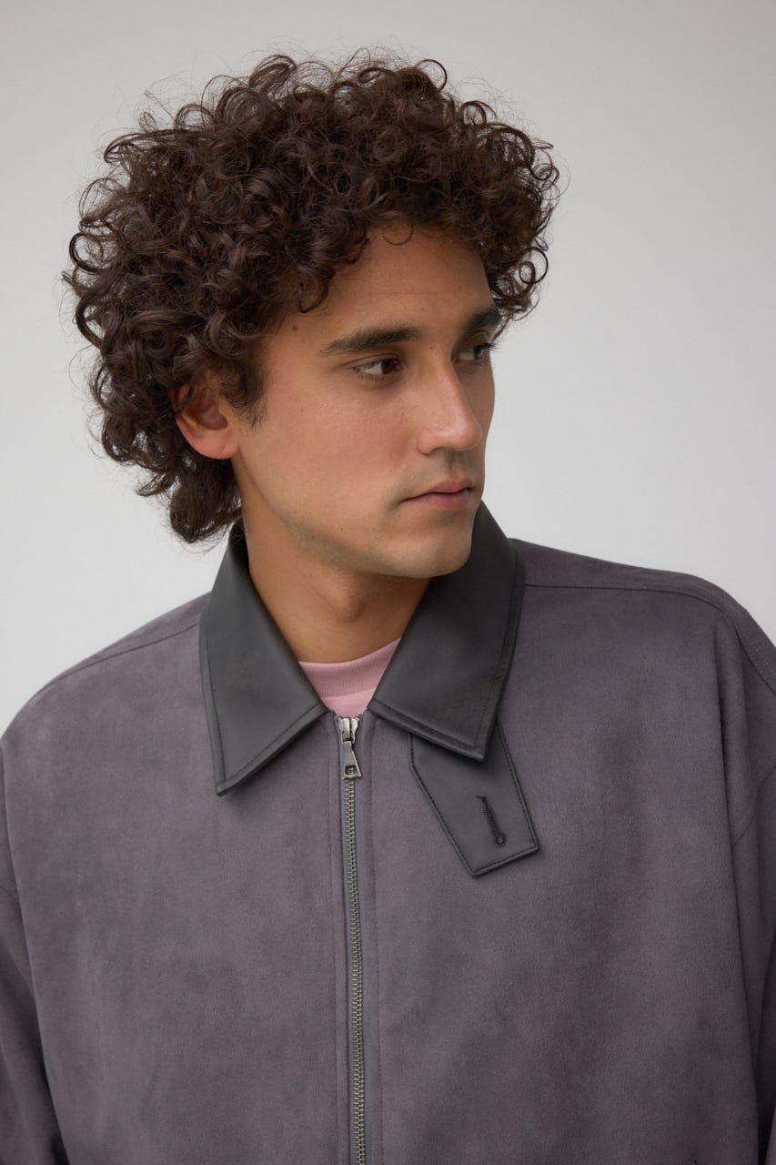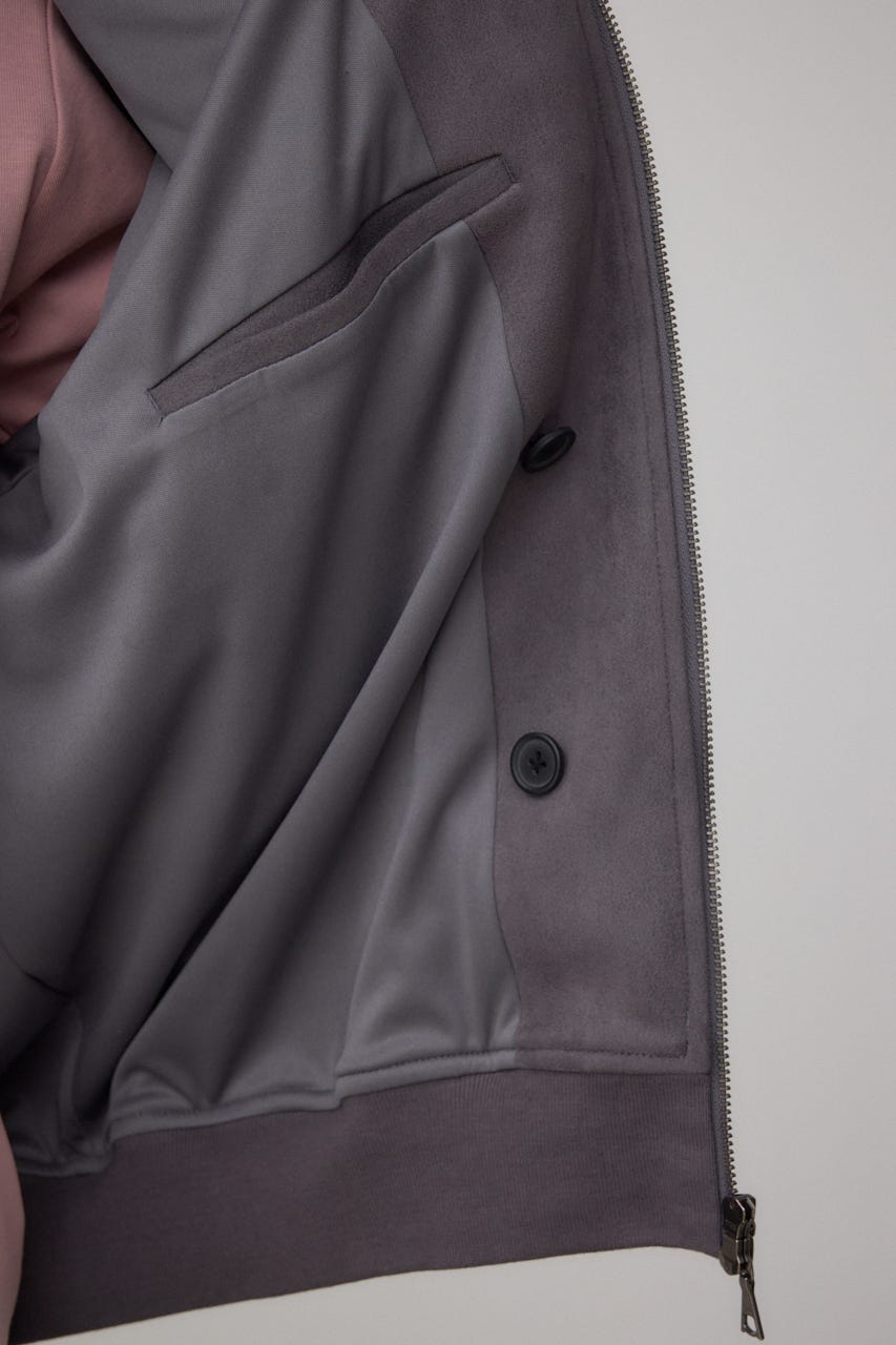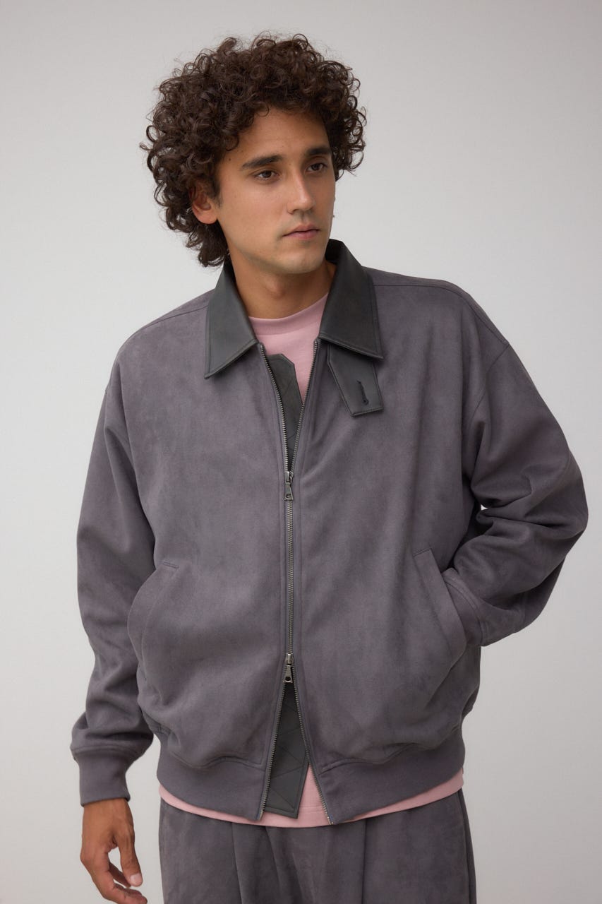 微光沢感のあるフェイクスエードを使用したキレイめブルゾンになります。