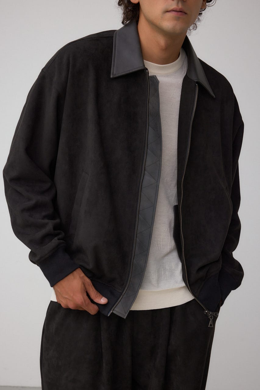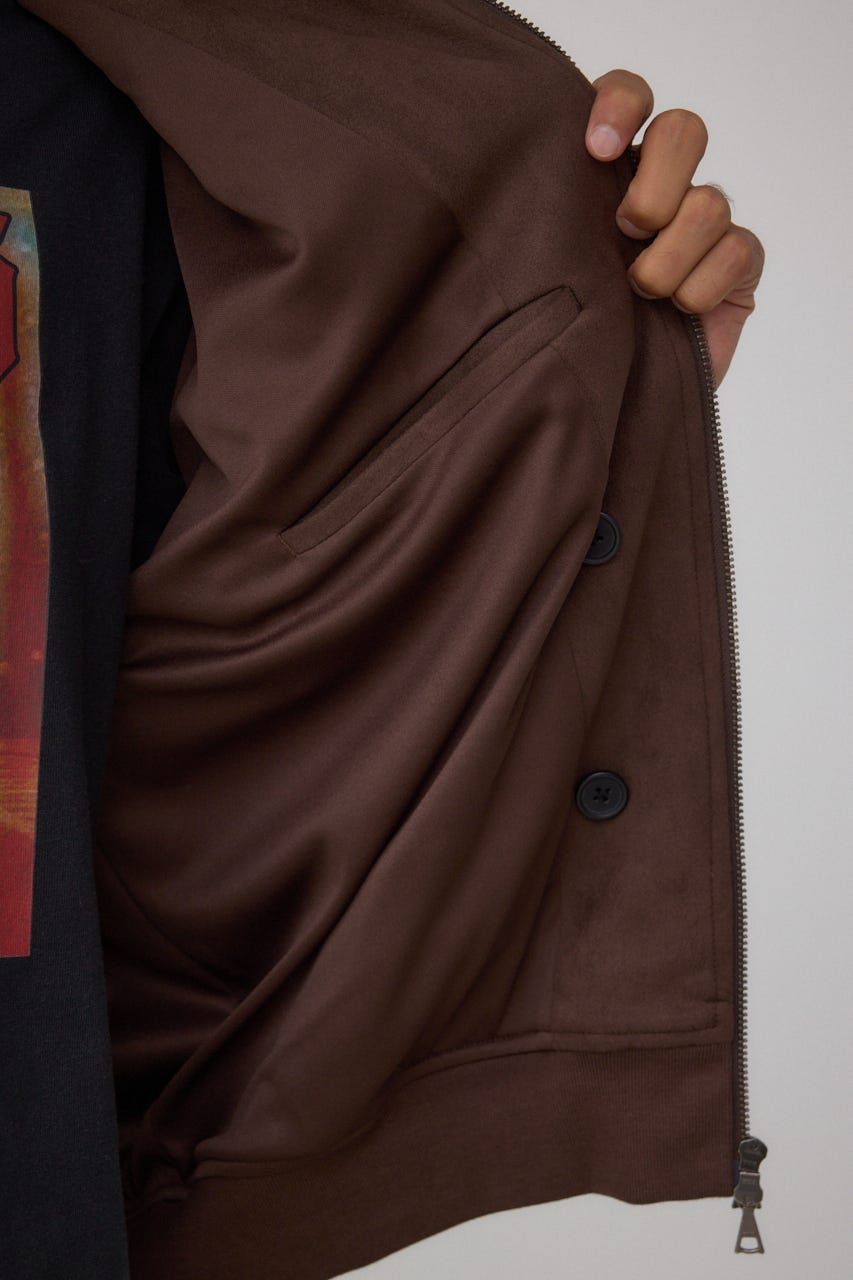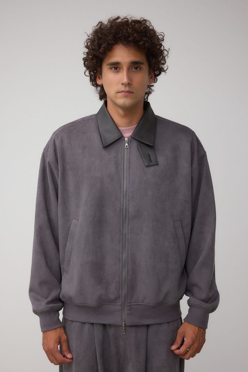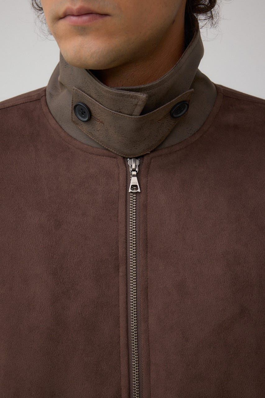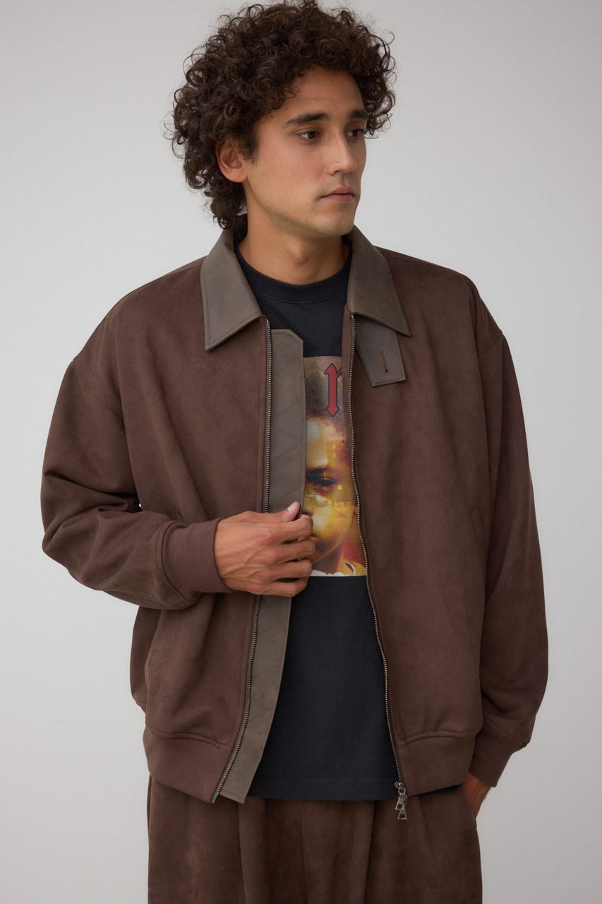 微光沢感のあるフェイクスエードを使用したキレイめブルゾンになります。