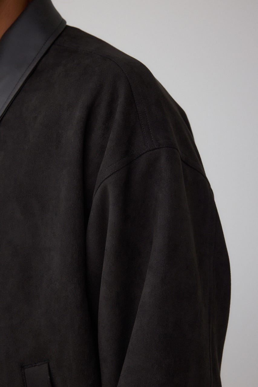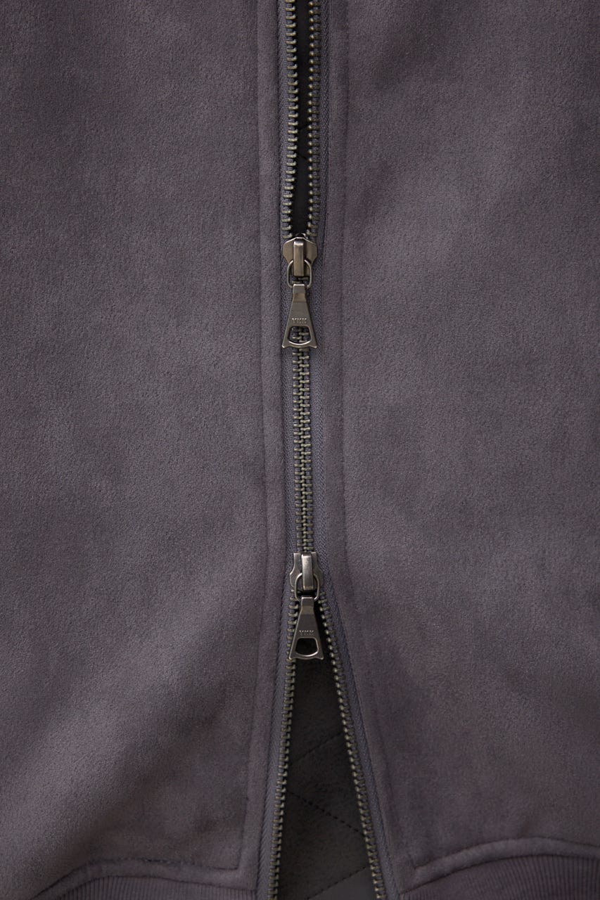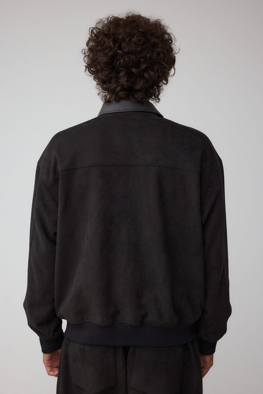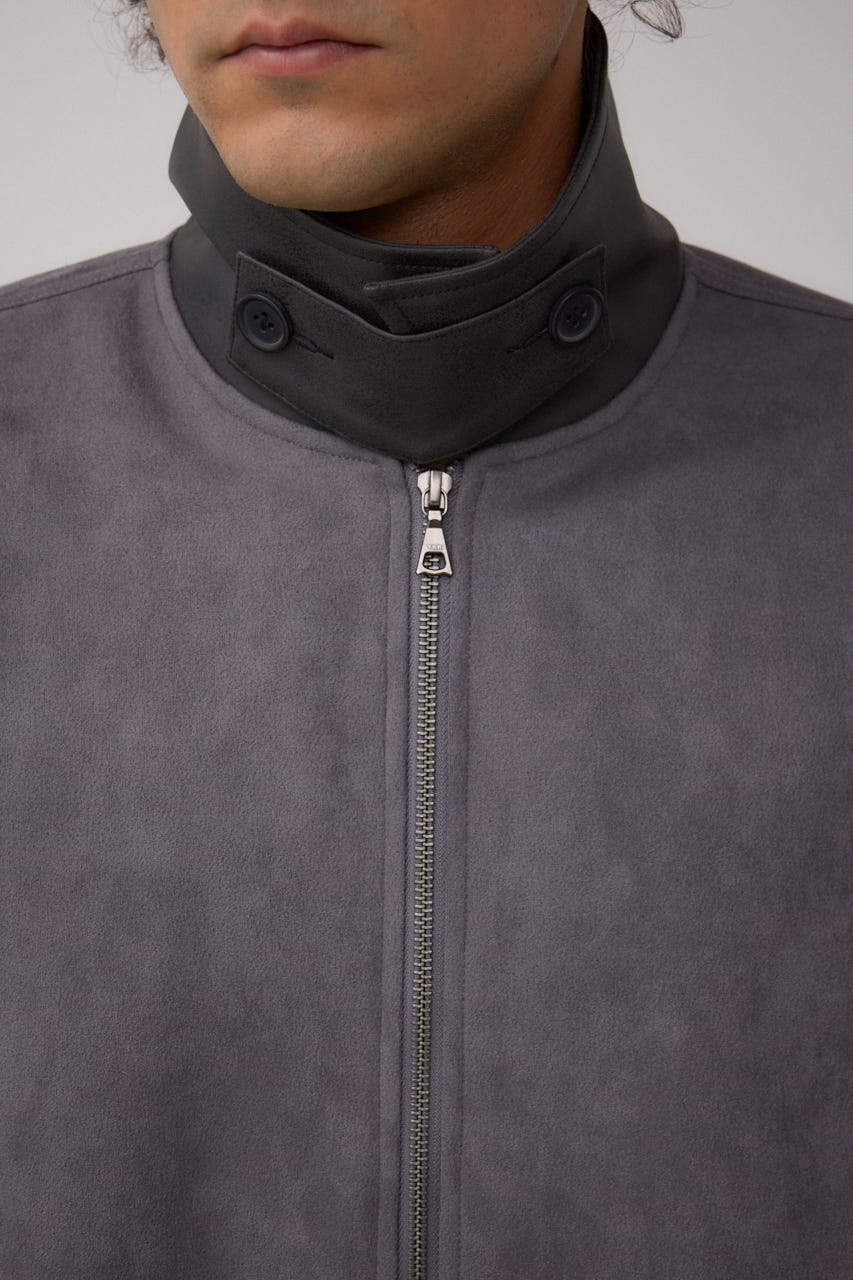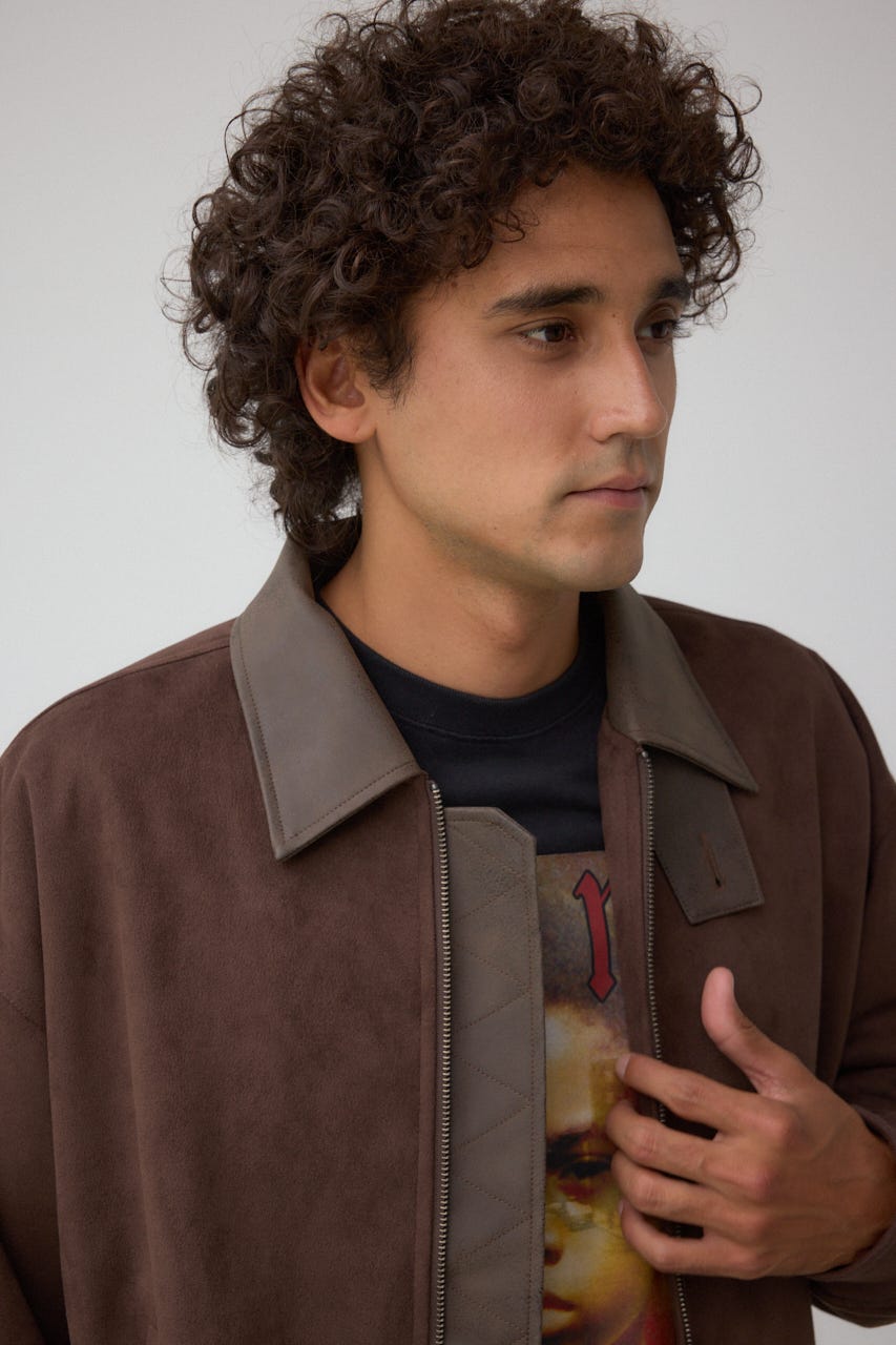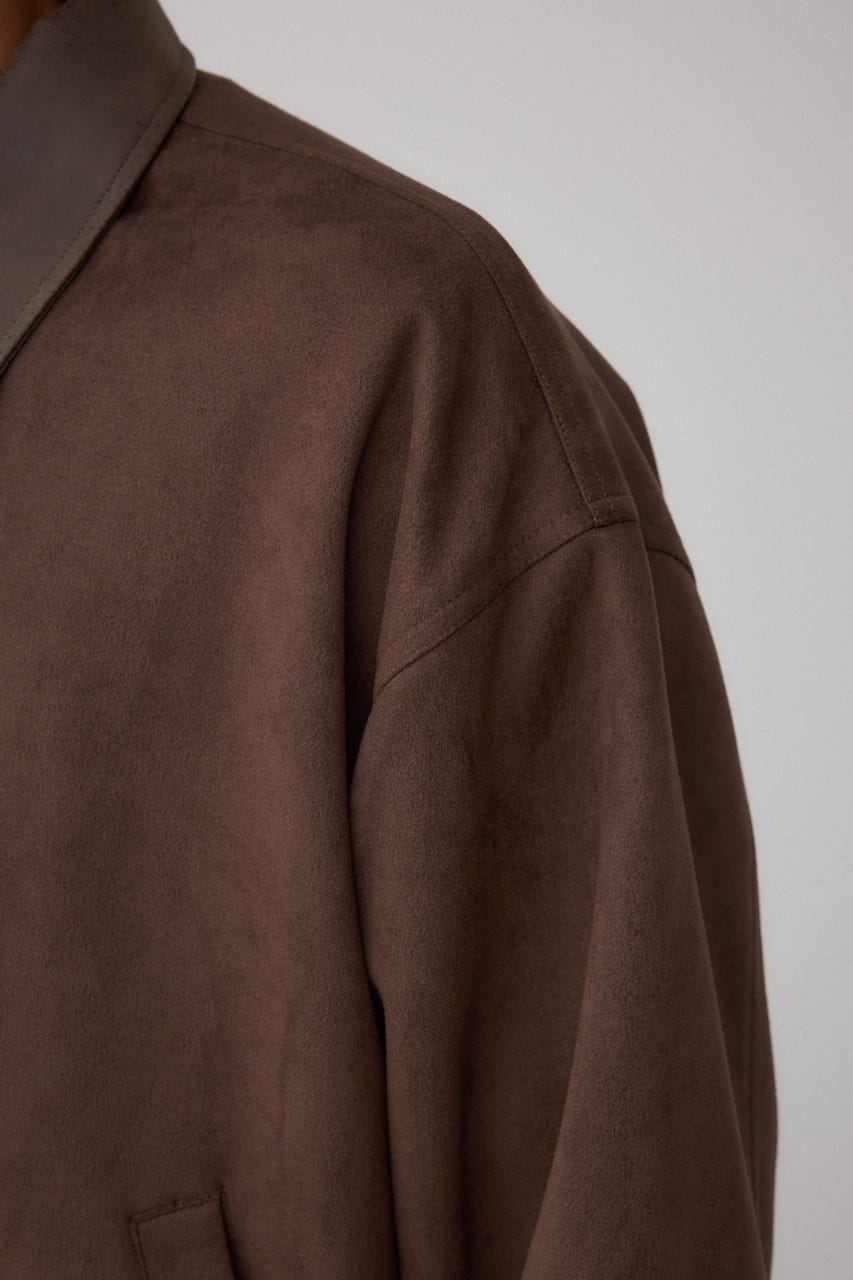 微光沢感のあるフェイクスエードを使用したキレイめブルゾンになります。