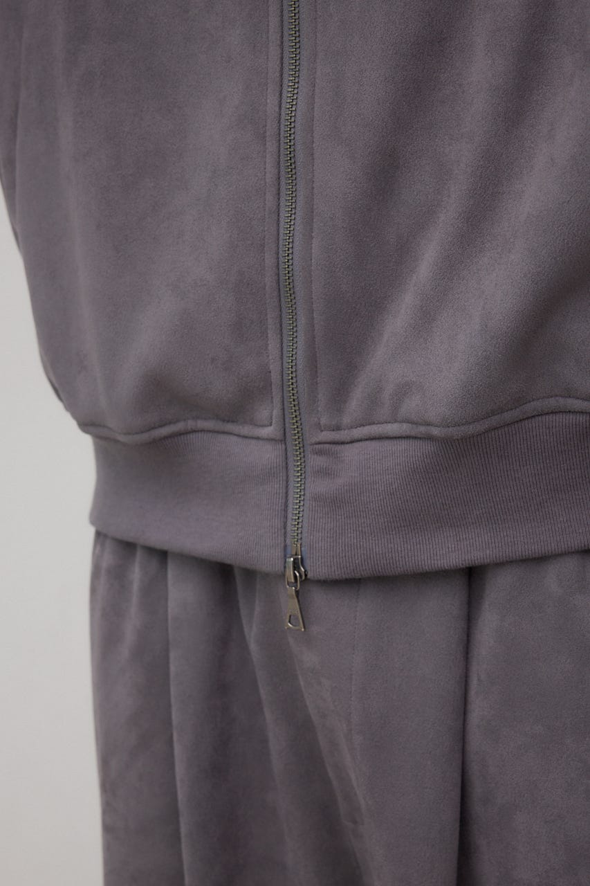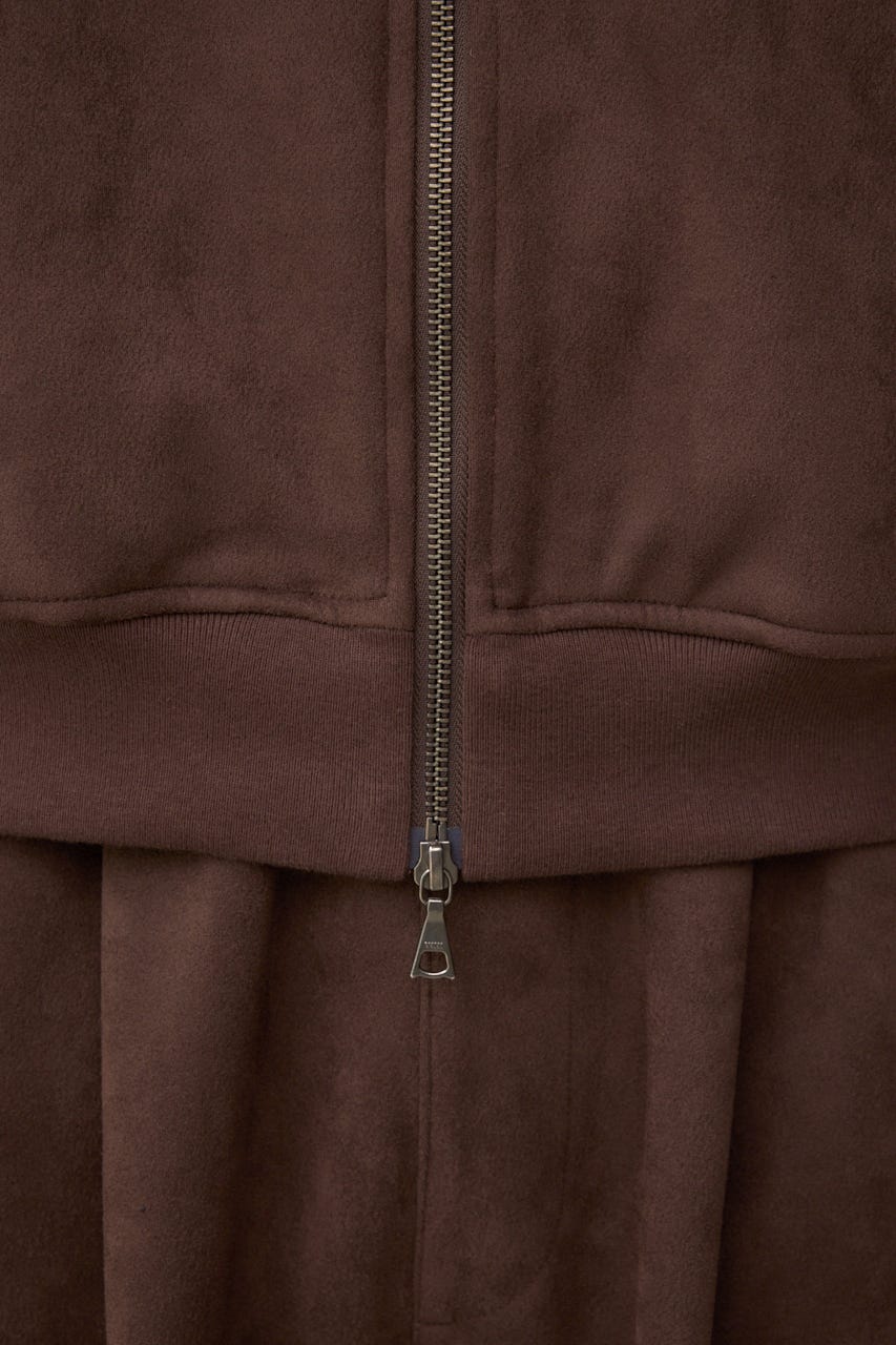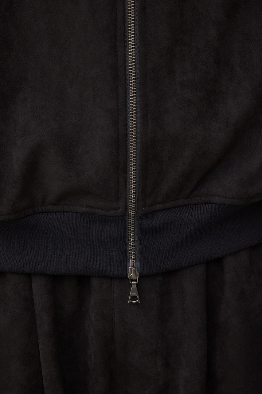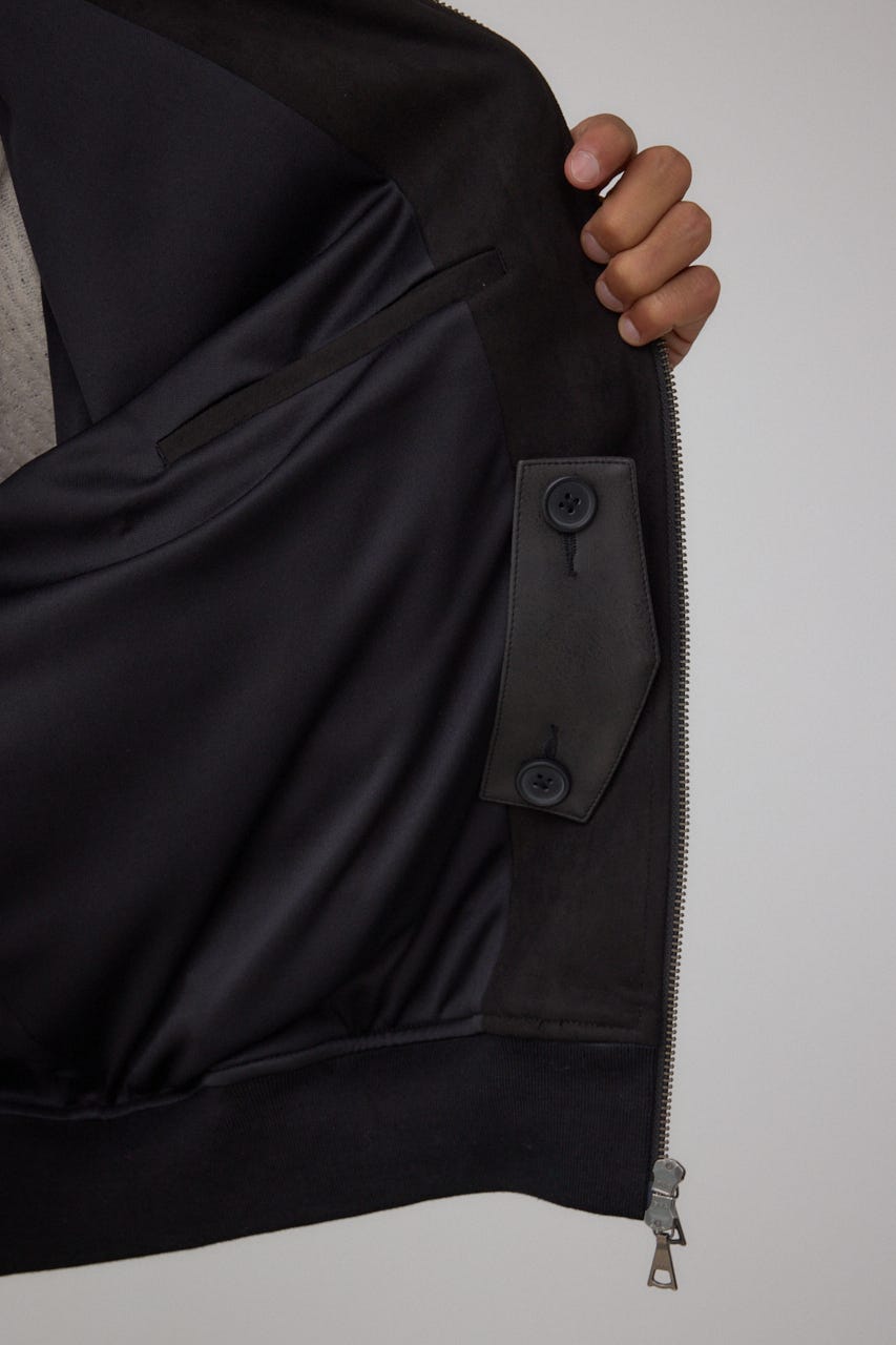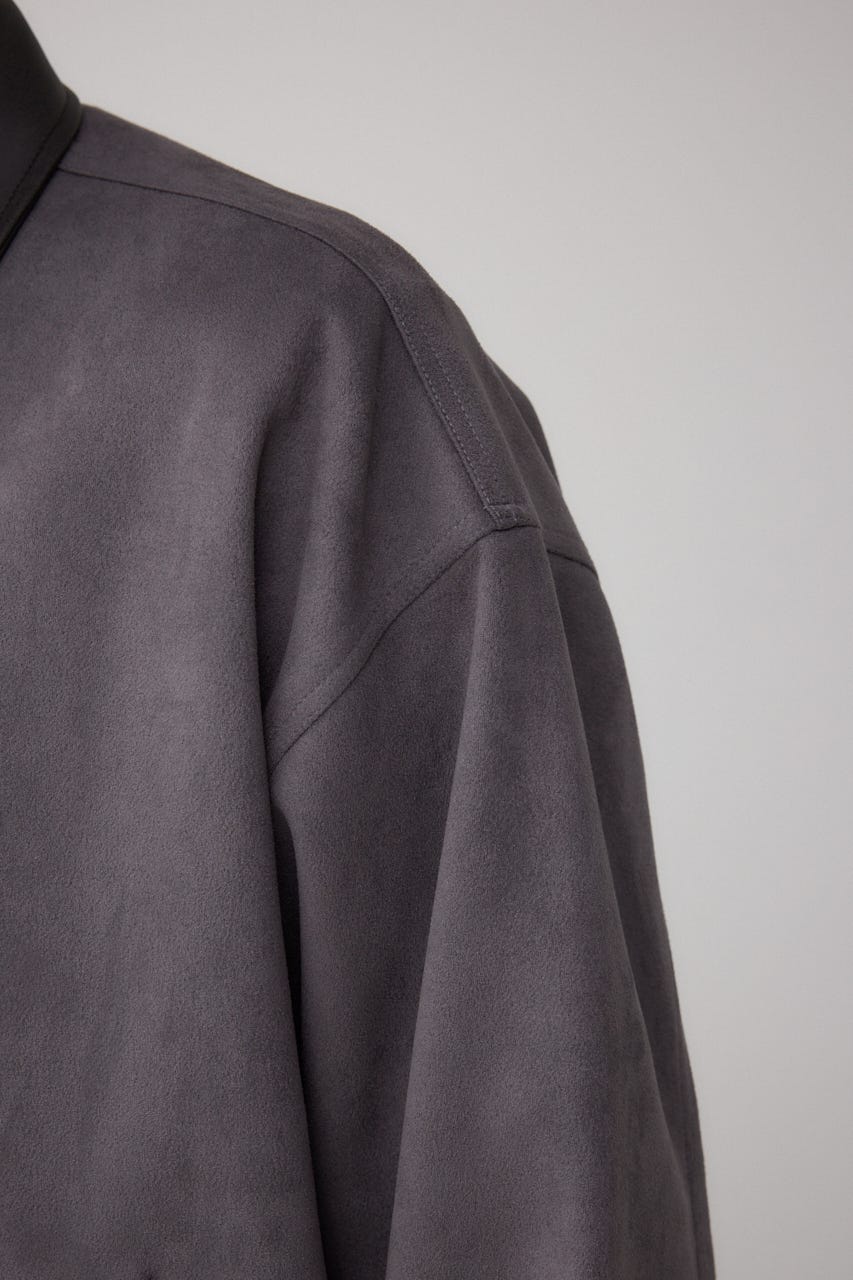 微光沢感のあるフェイクスエードを使用したキレイめブルゾンになります。