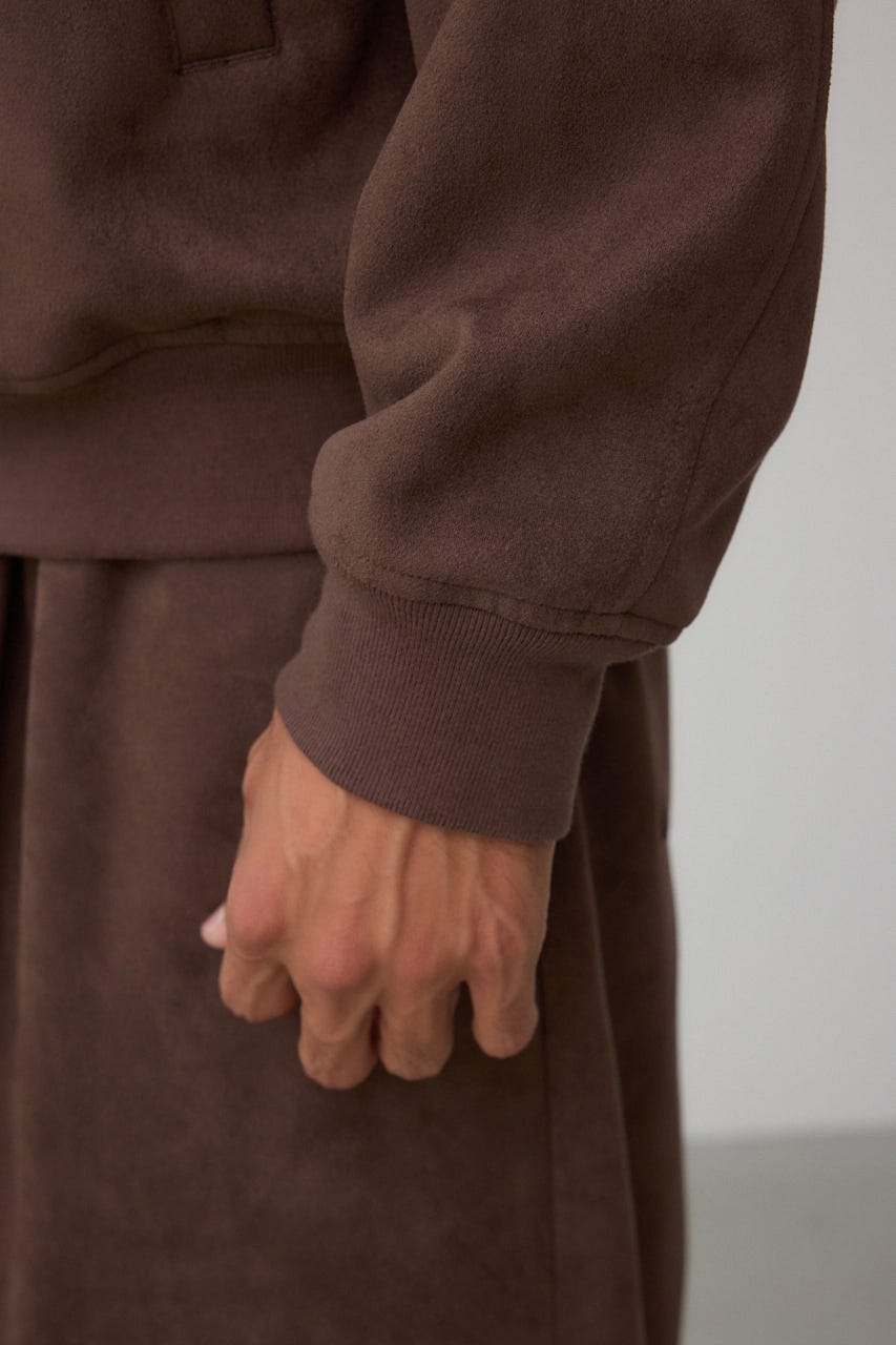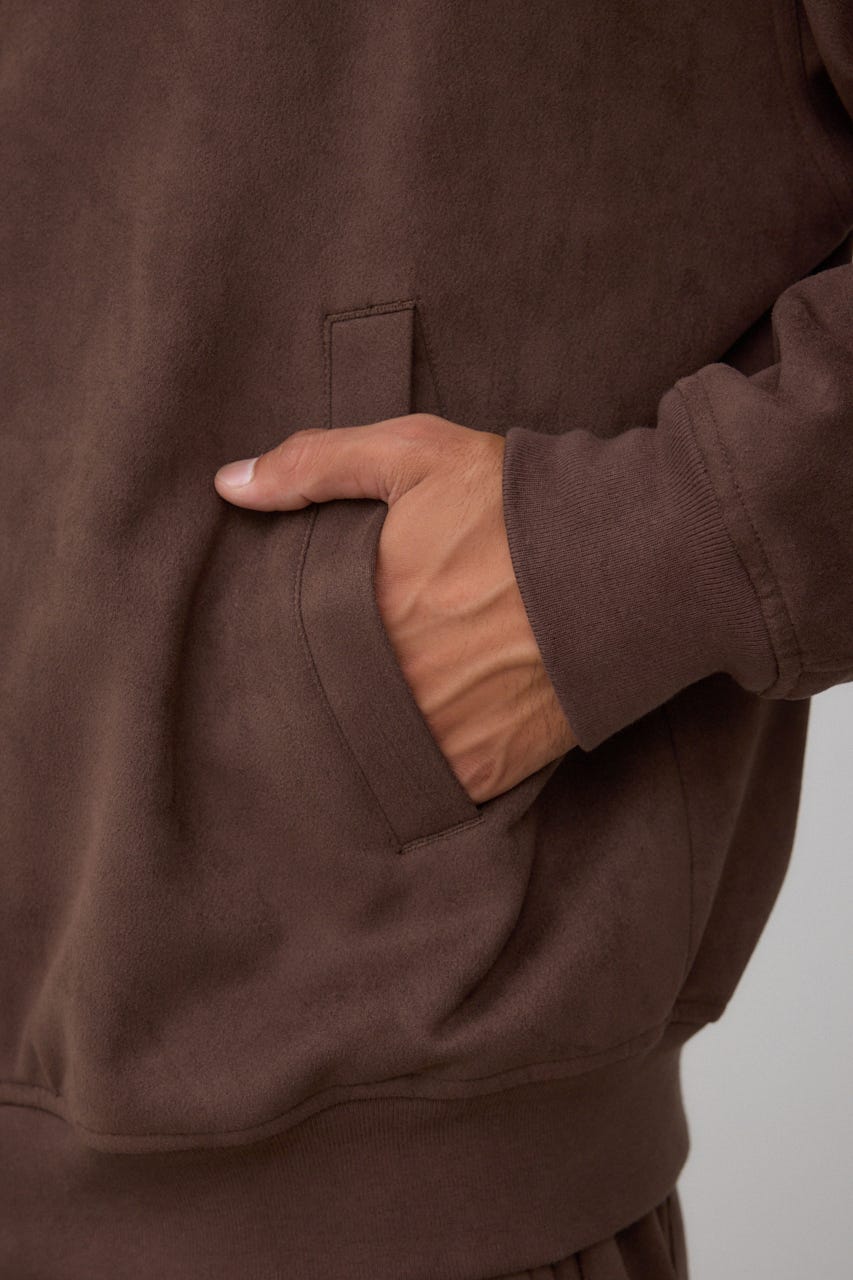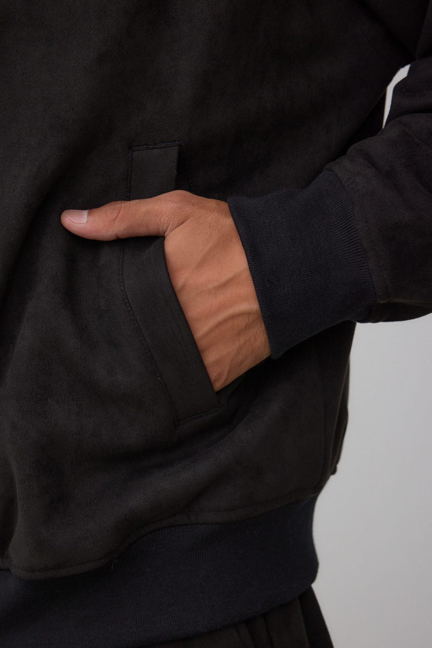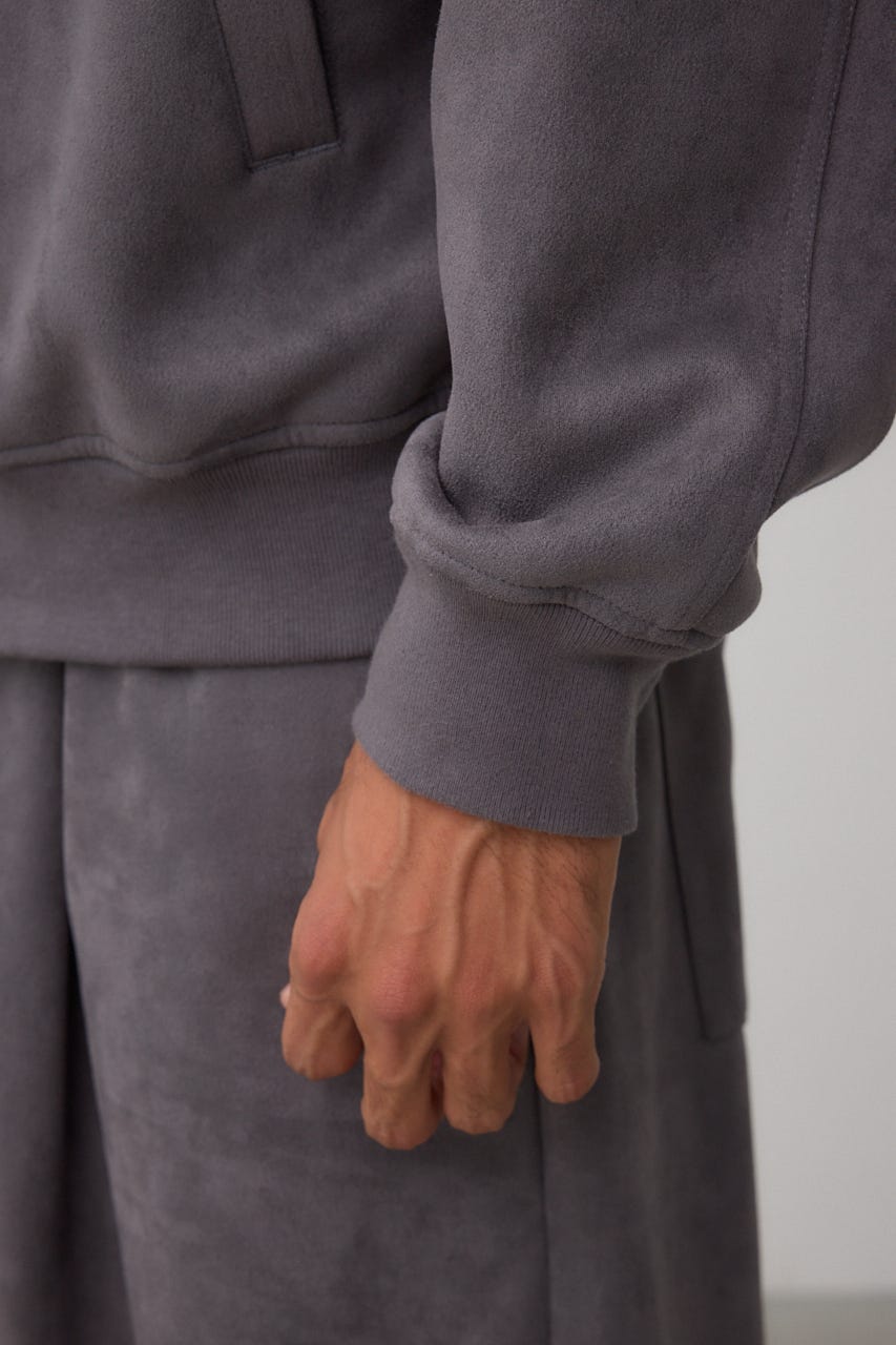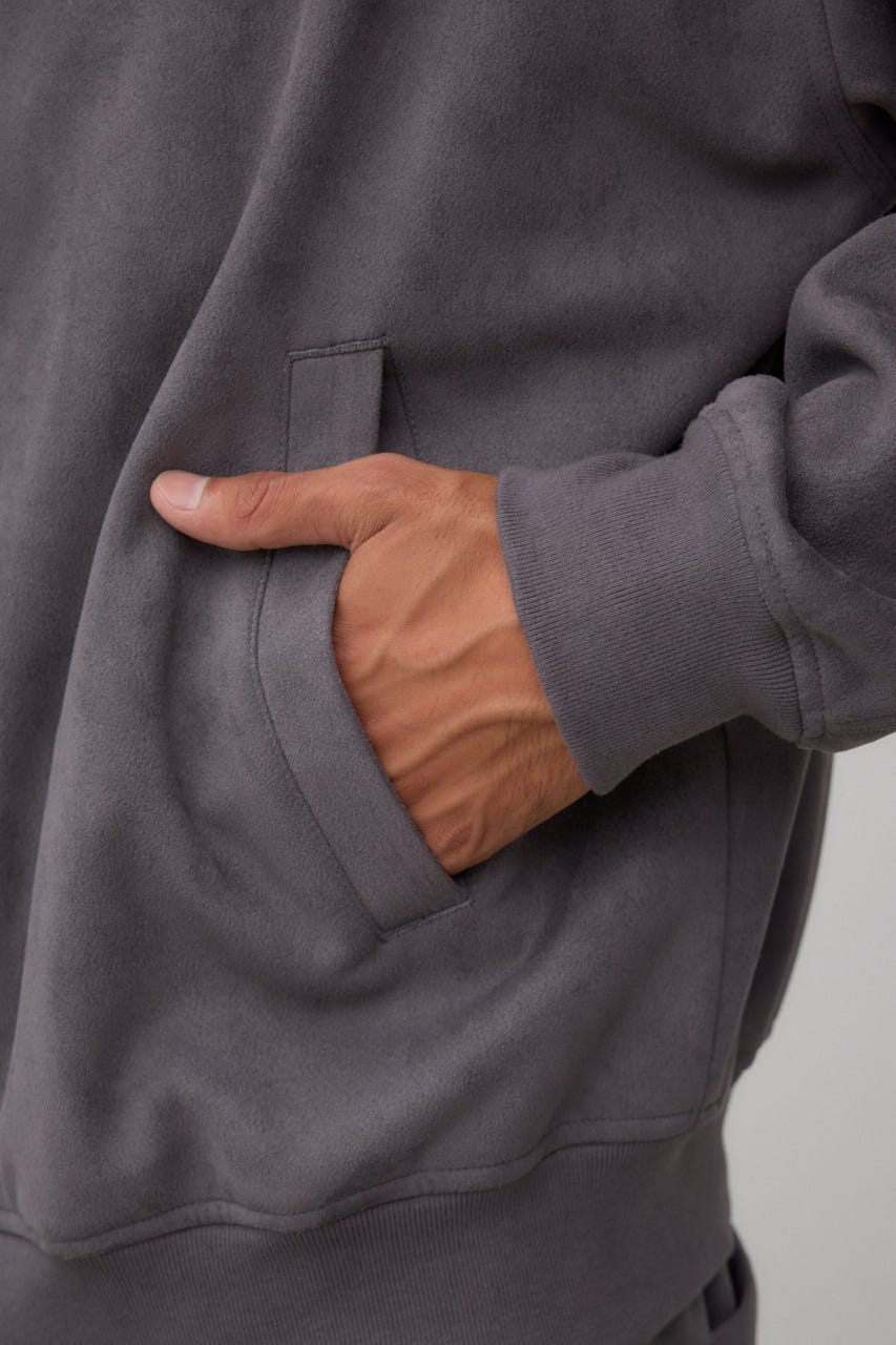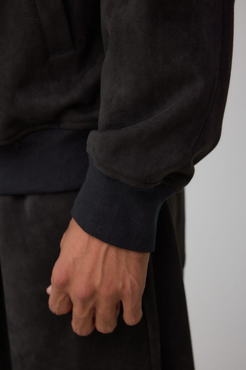 微光沢感のあるフェイクスエードを使用したキレイめブルゾンになります。