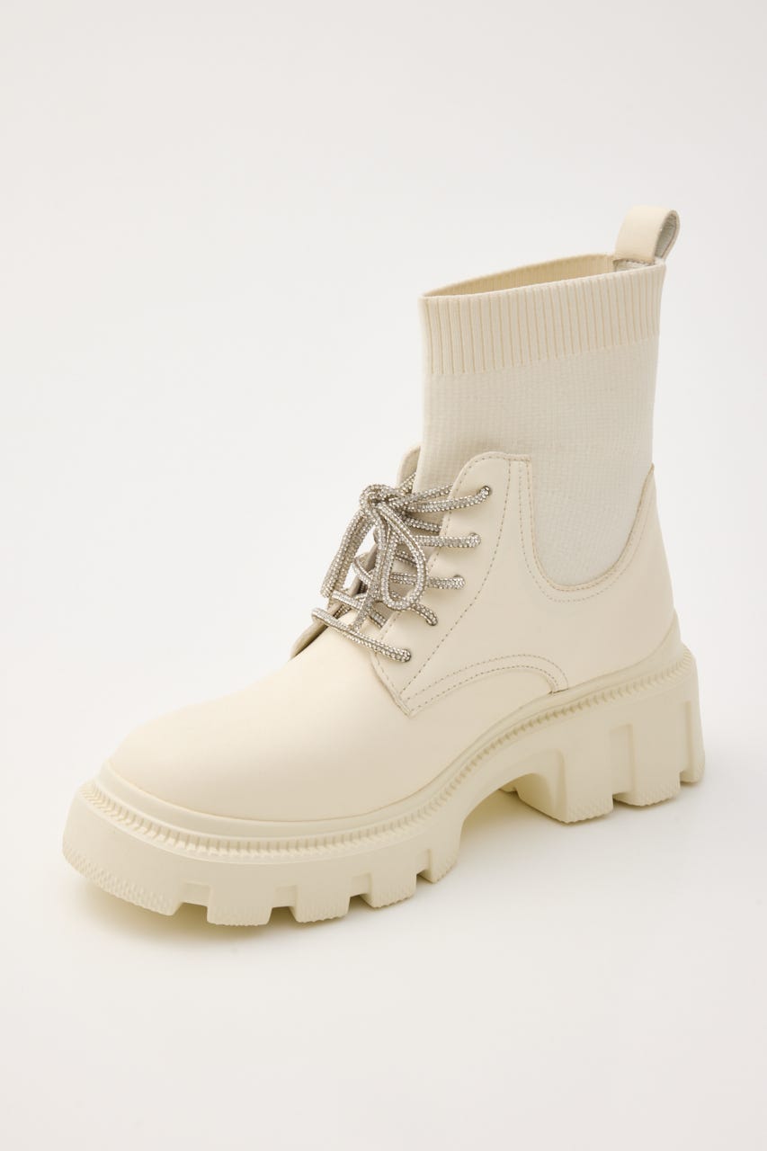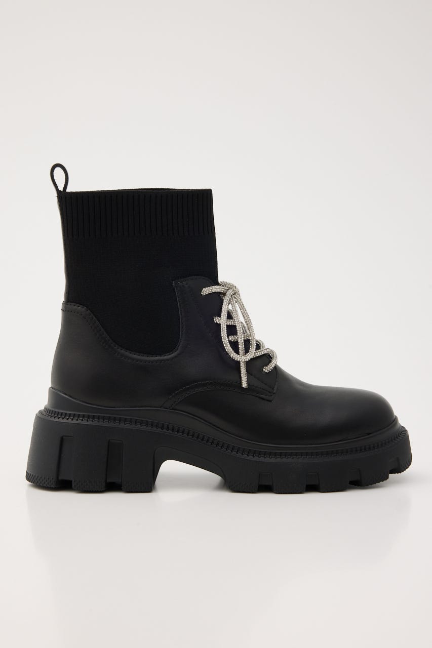 STACCATO定番&人気のきらきらリボン!に、新デザインのブーツが登場。モードな雰囲気のニットコンビブーツに華やかなコードストーン付シューレースがポイント。軽量タンクソールでスニーカー×ブーツのような履き心地。マニッシュなスタイルにはもちろんのこと綺麗目なスタイルにもカジュアルすぎず、足元をさり気なく高感度に魅せてくれます。