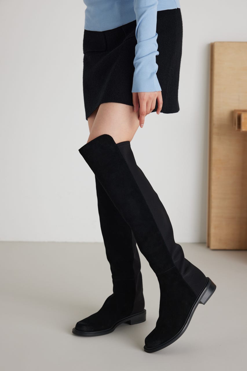 ※お届け時期:2026年1月上旬以降 STACCATOで長年愛される定番&名品の美脚効果絶大なストレッチコンビのニーハイブーツが再入荷。エレガントにもカジュアルスタイルにも相性の良いボリューム見えしないスレンダーなシルエットに、背面は窮屈感のないイラスティック素材とのコンビで伸縮性と程良いフィット感も抜群。サイド切替をすることで脚長・細身LOOKな視覚効果も◎