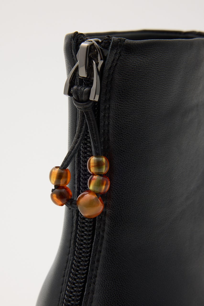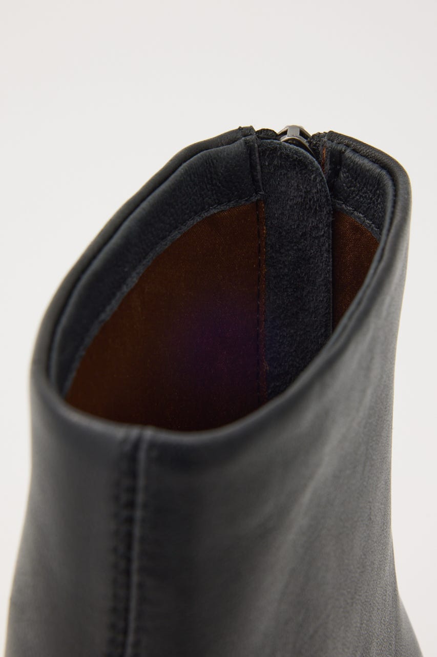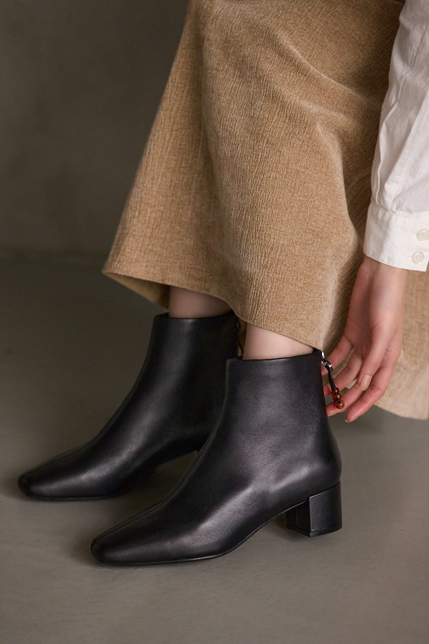 バックスタイルも抜かりない。レトロ感も感じるバックジップのチャームがポイントのミドルブーツ。スタイリッシュなアーモンドトゥに、足あたり滑らかななシープレザーでセンターシームデザインなのでのっぺりとしすぎないのもさり気なくポイント高い。定番コーデからトレンドのクラシックなスタイルにもどんなコーディネートにも相性ばっちりです。