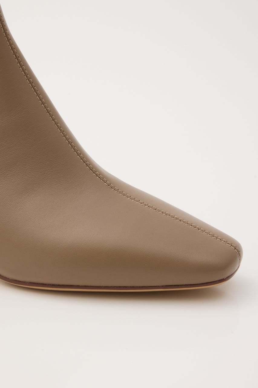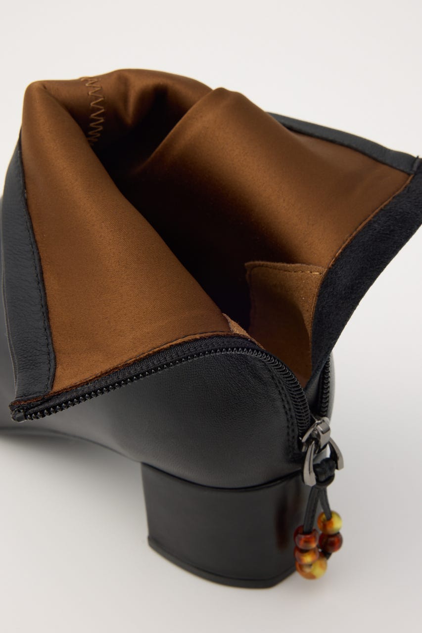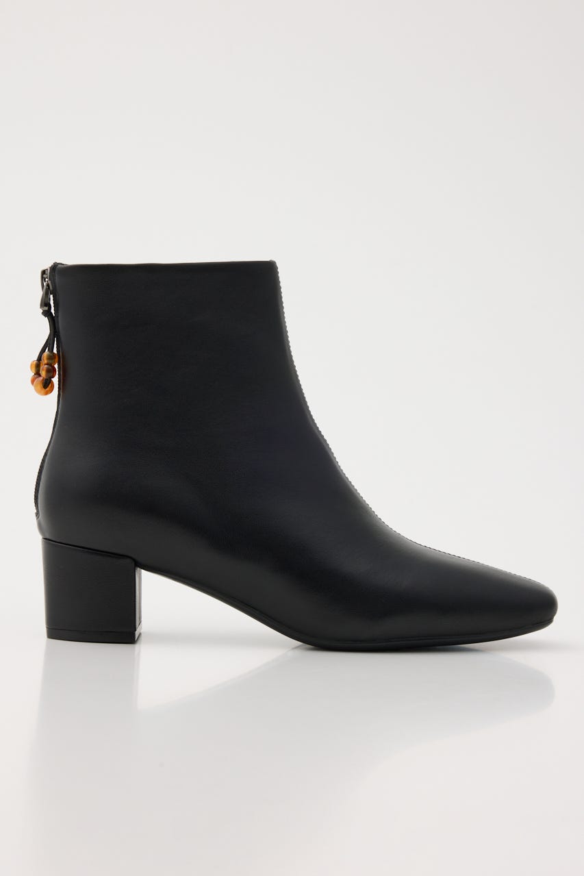 バックスタイルも抜かりない。レトロ感も感じるバックジップのチャームがポイントのミドルブーツ。スタイリッシュなアーモンドトゥに、足あたり滑らかななシープレザーでセンターシームデザインなのでのっぺりとしすぎないのもさり気なくポイント高い。定番コーデからトレンドのクラシックなスタイルにもどんなコーディネートにも相性ばっちりです。