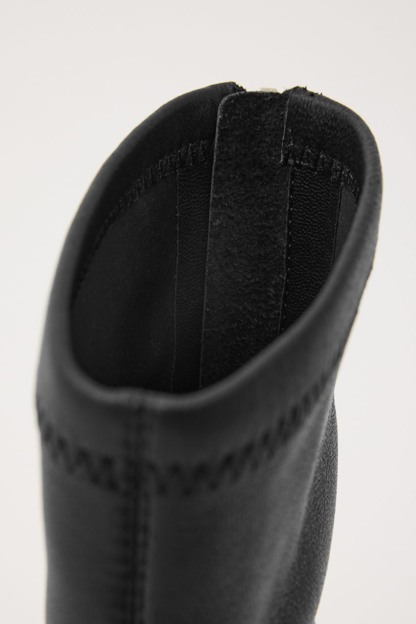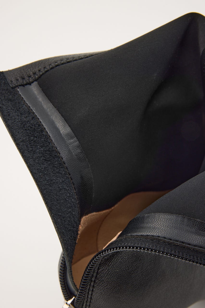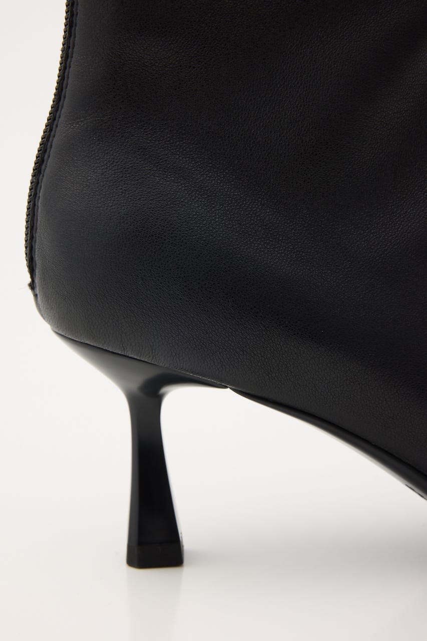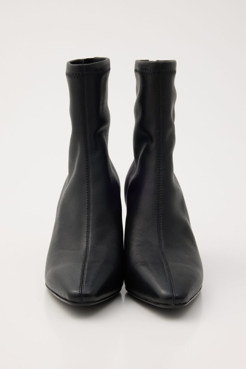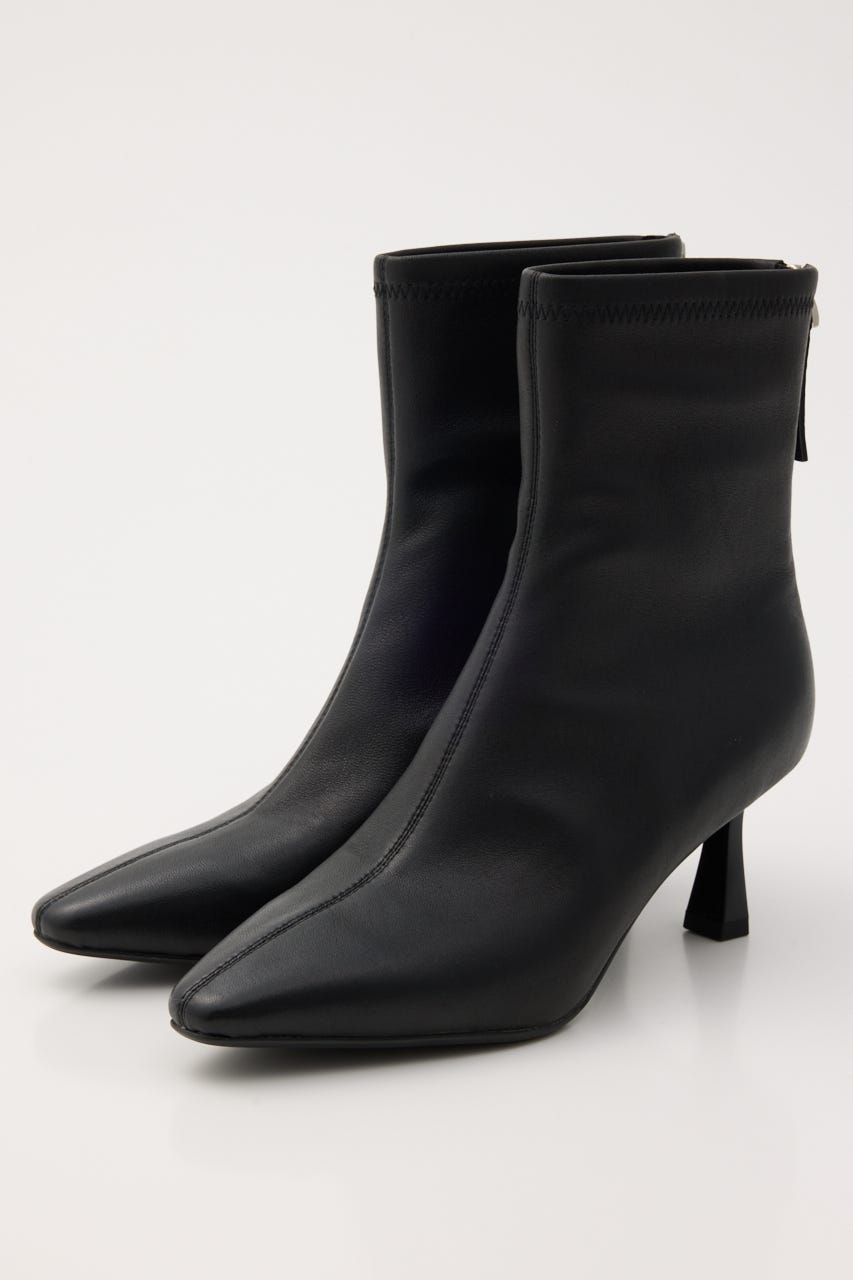 エレガント&妖艶な雰囲気も感じる。脚を綺麗に魅せてくれるスタイリッシュでスマートなフォルムながら、シープレザーでストレッチが効いており足あたりもソフトで履き心地も◎バックジップで着脱も簡単です。