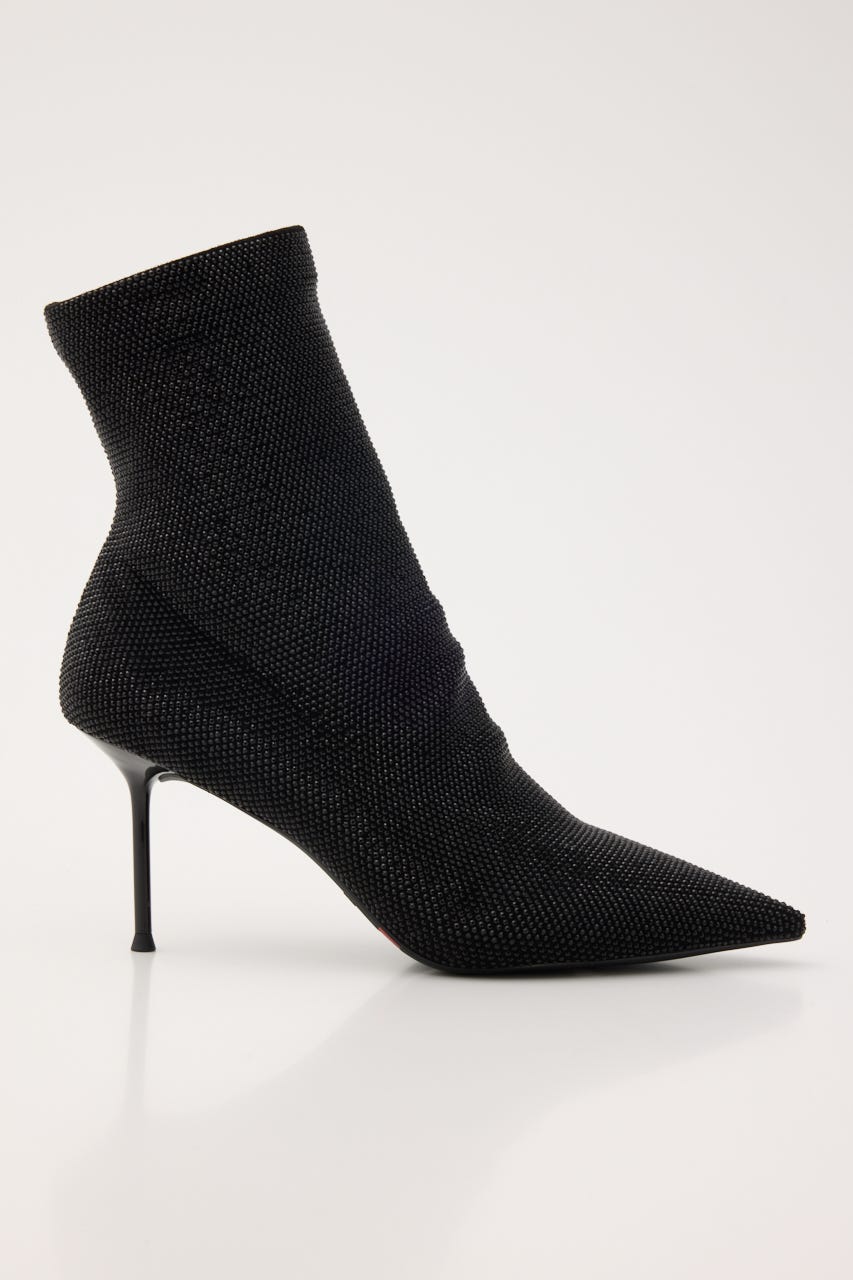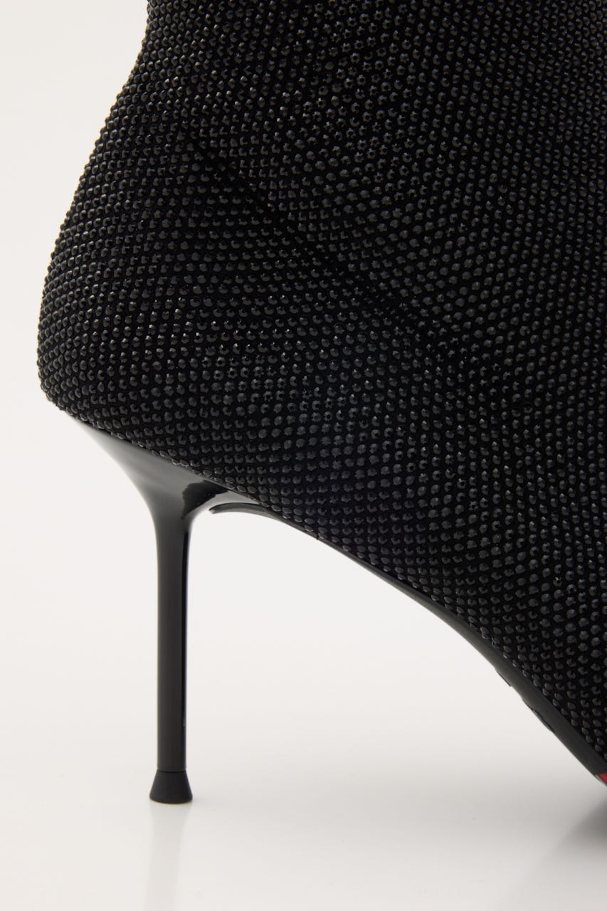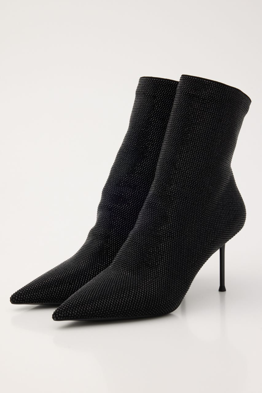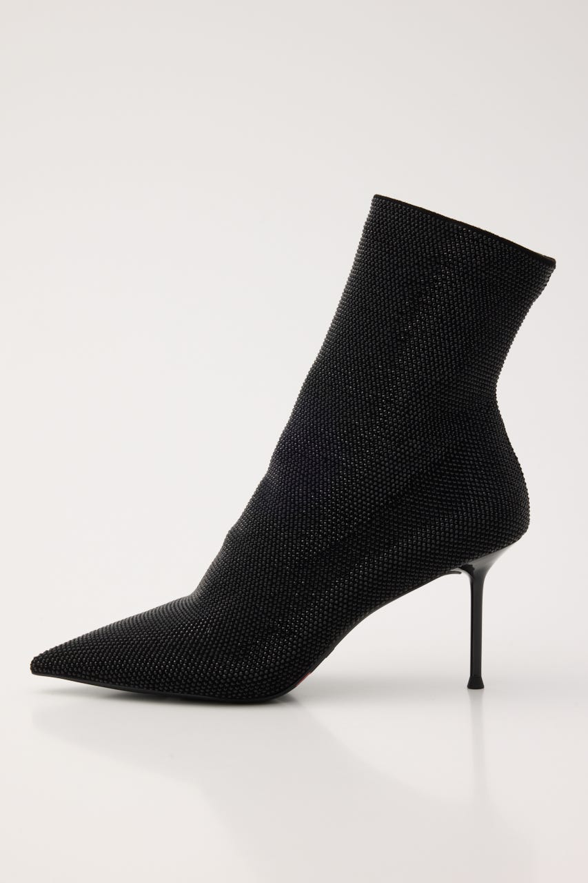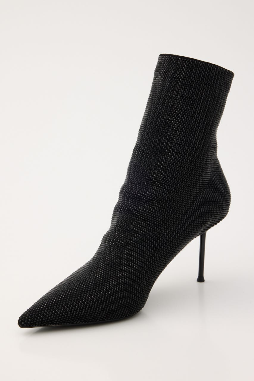 STACCATOらしい美フォルムな妖艶な雰囲気のピンヒールブーティー。極小のストーンをびっしりと敷き詰めた、エレガントかつ煌びやかなのに上品さとクールビューティー感もある特別な日に履きたいおすすめブーツ。極細のスティレットヒールながら見た目以上に安定感もありストレッチ素材なのでフィット感も抜群です。