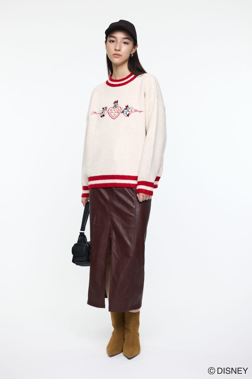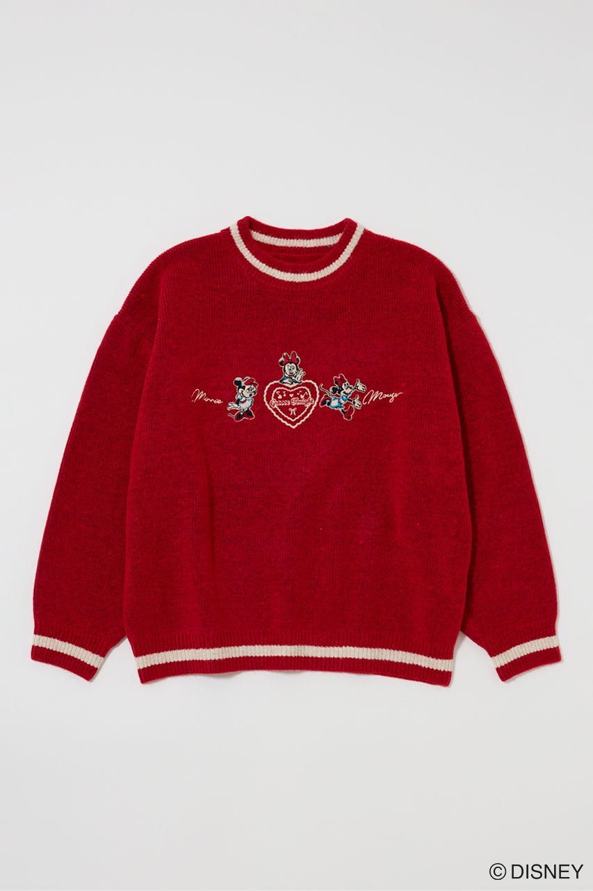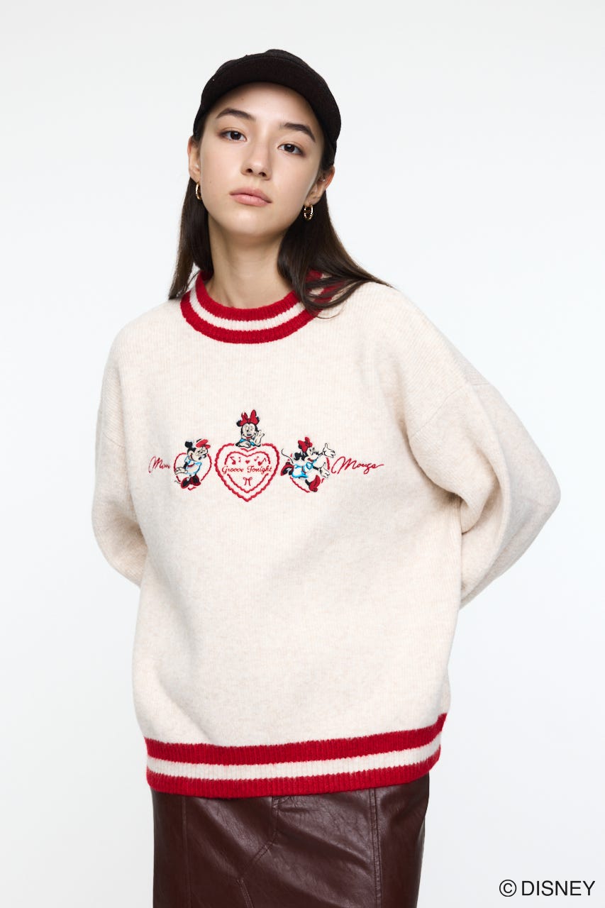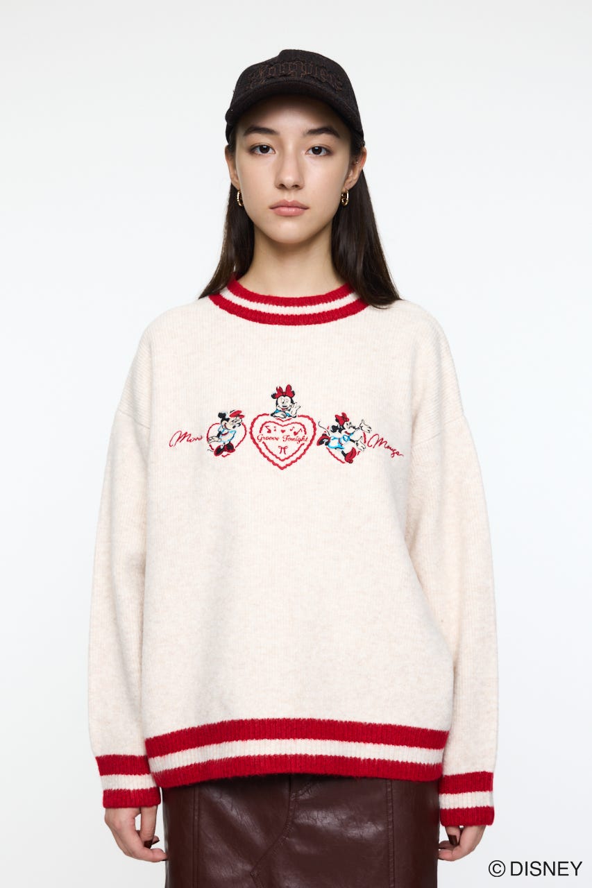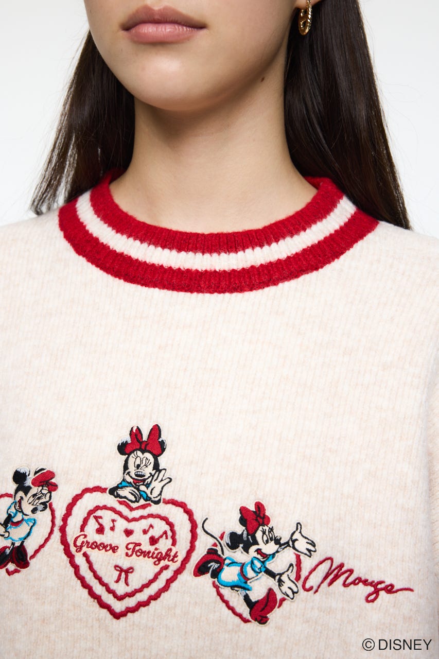 ■POINT:ハートのレコードとMINNIEの刺繍がポイントのニット