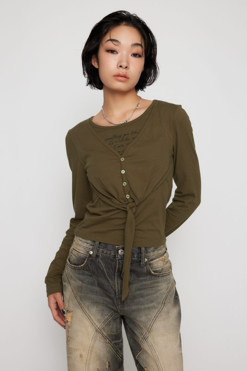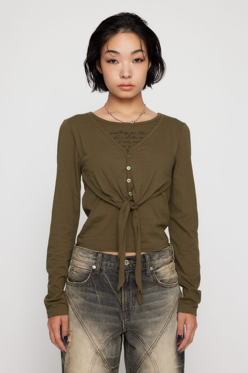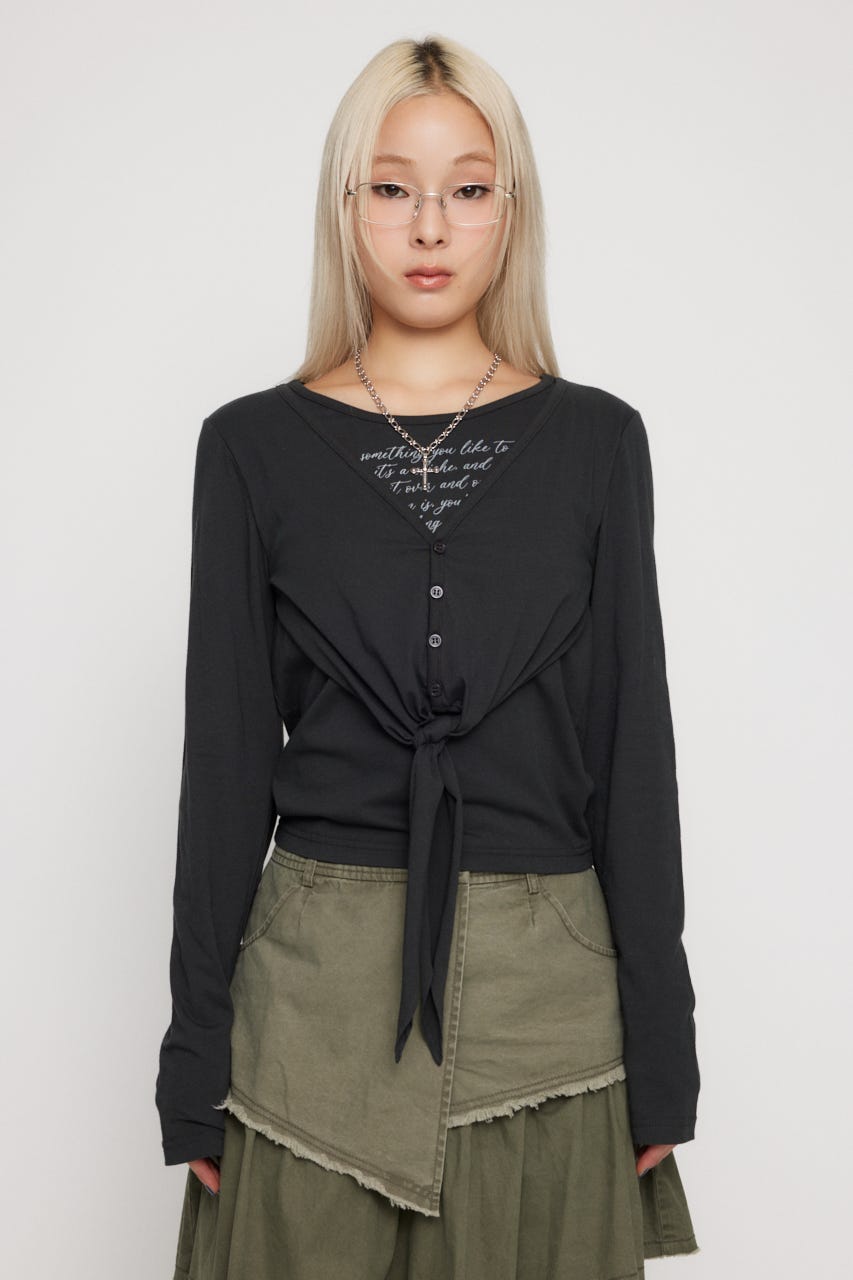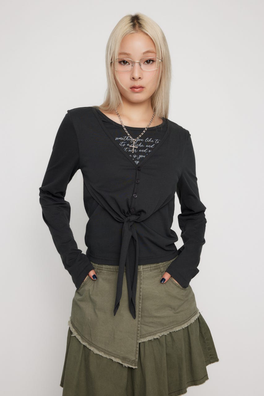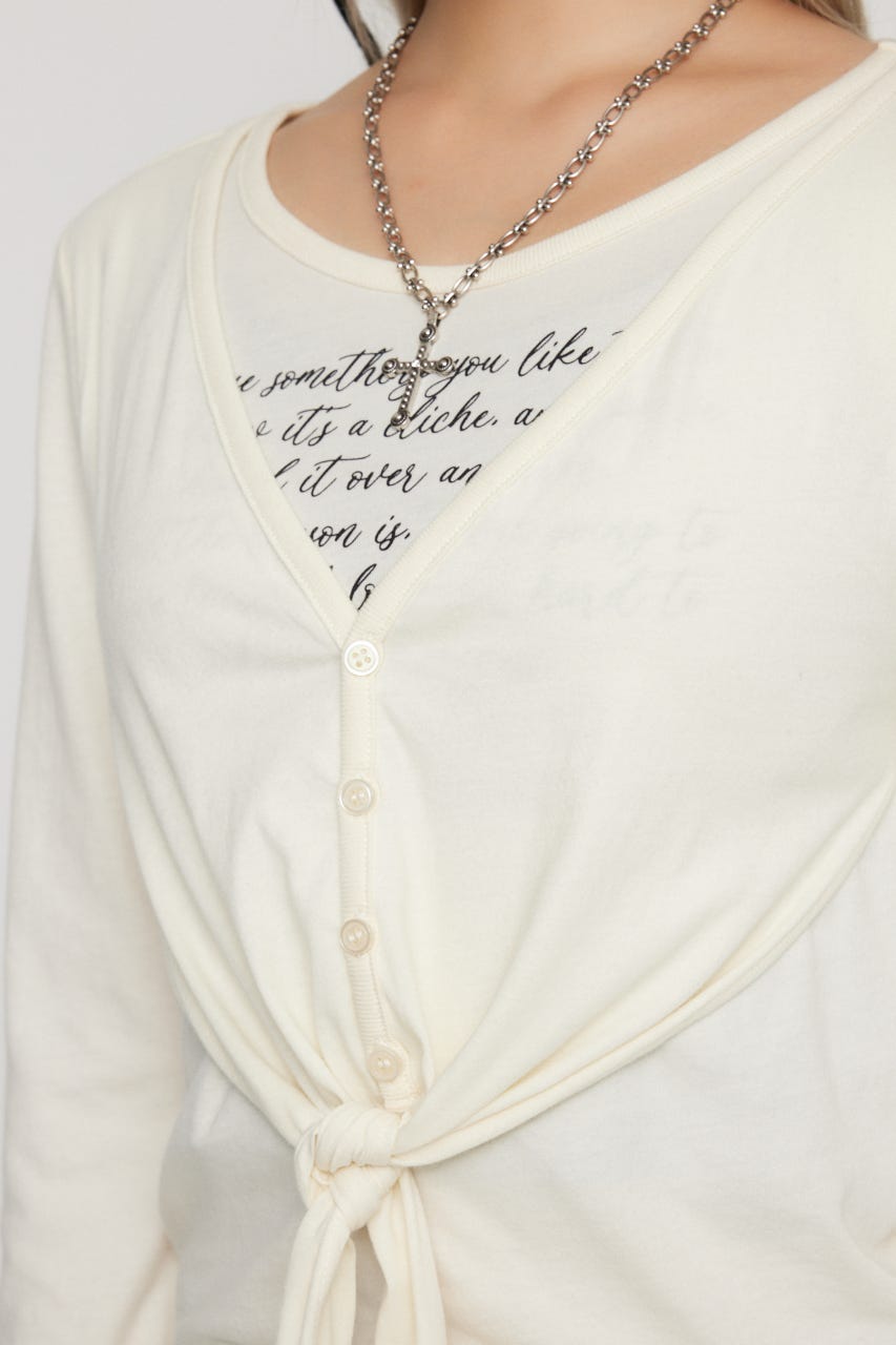 ■POINT:カーディガンを羽織っている様な一枚でさまになるプリントトップス。