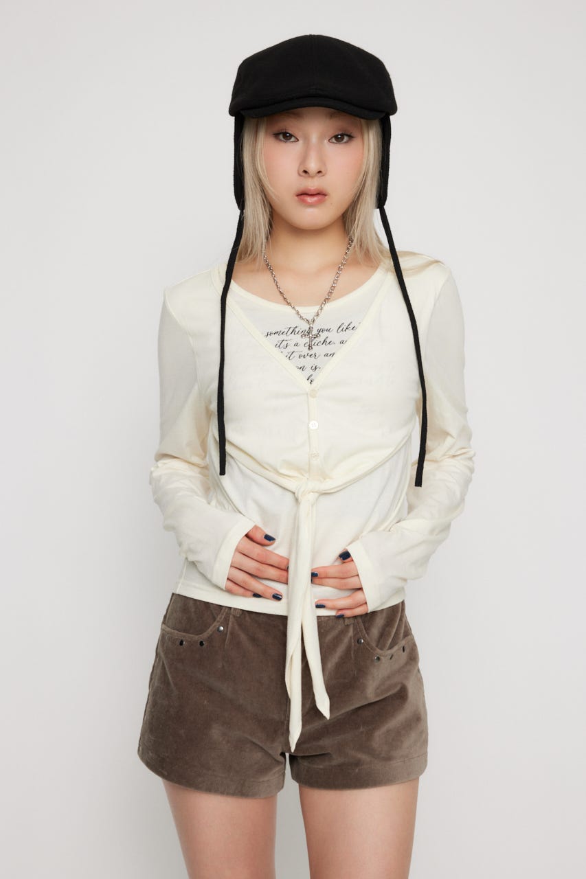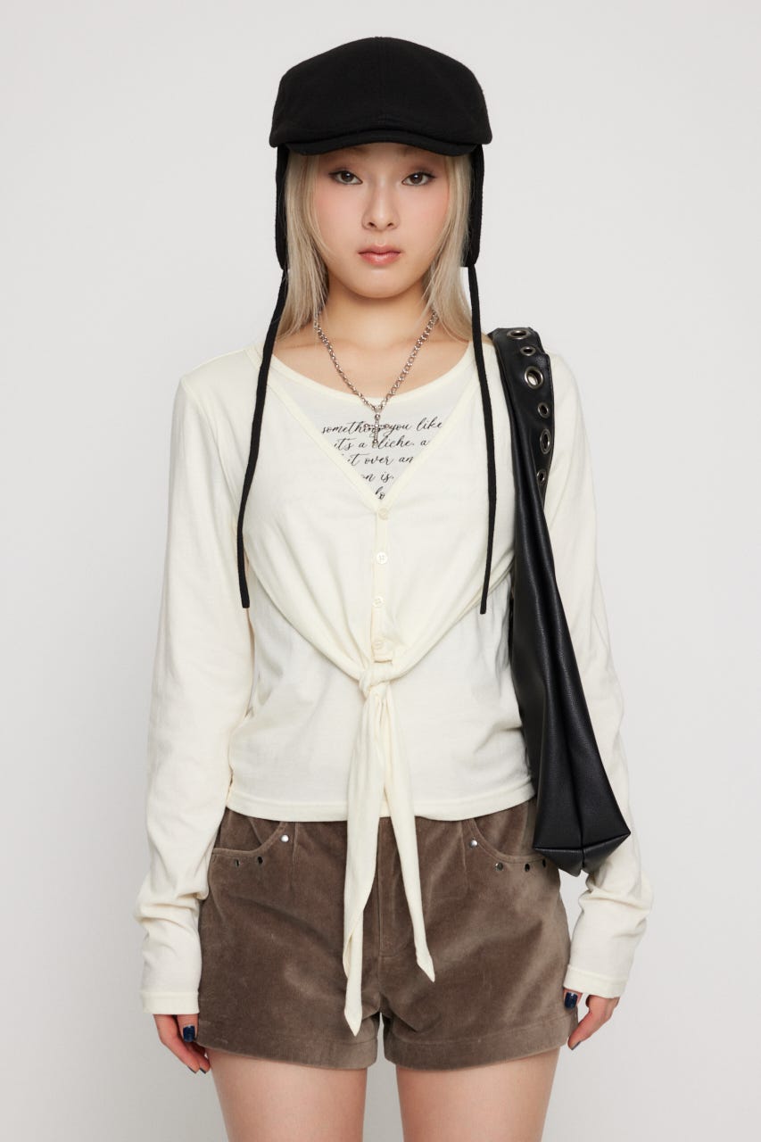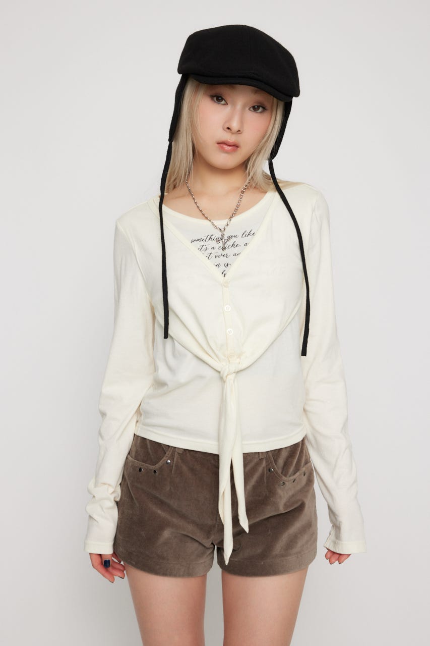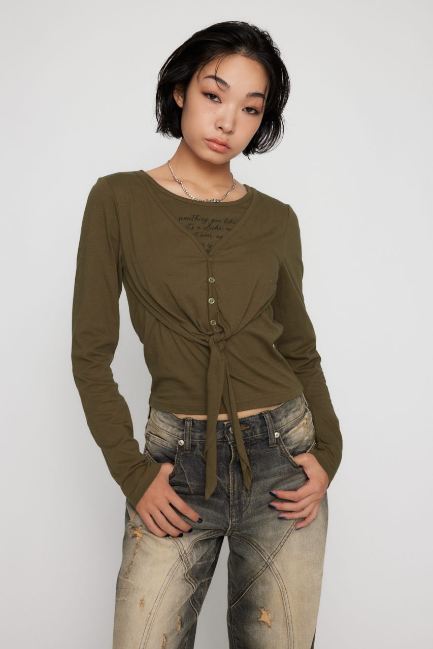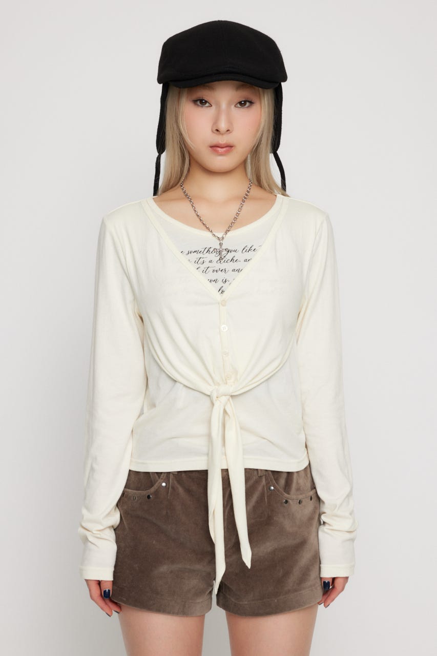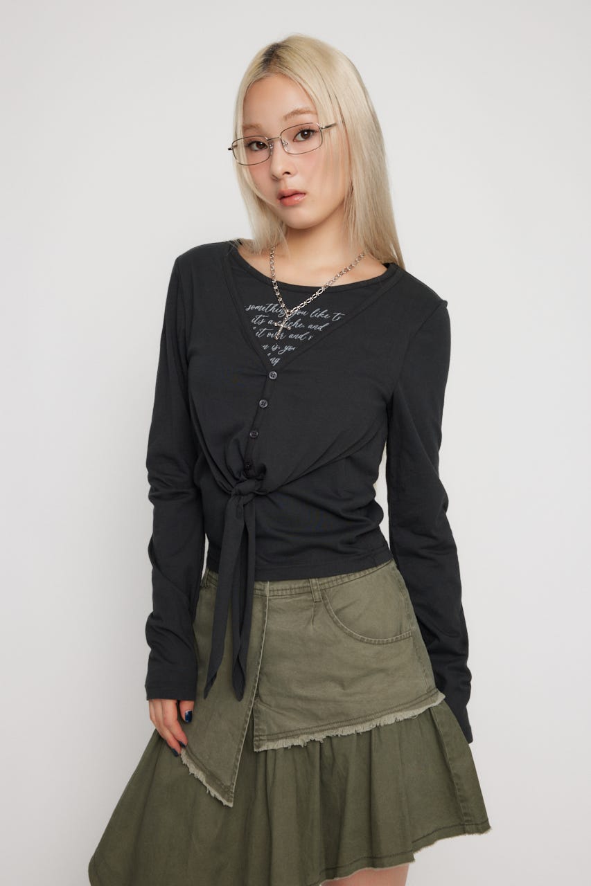 ■POINT:カーディガンを羽織っている様な一枚でさまになるプリントトップス。