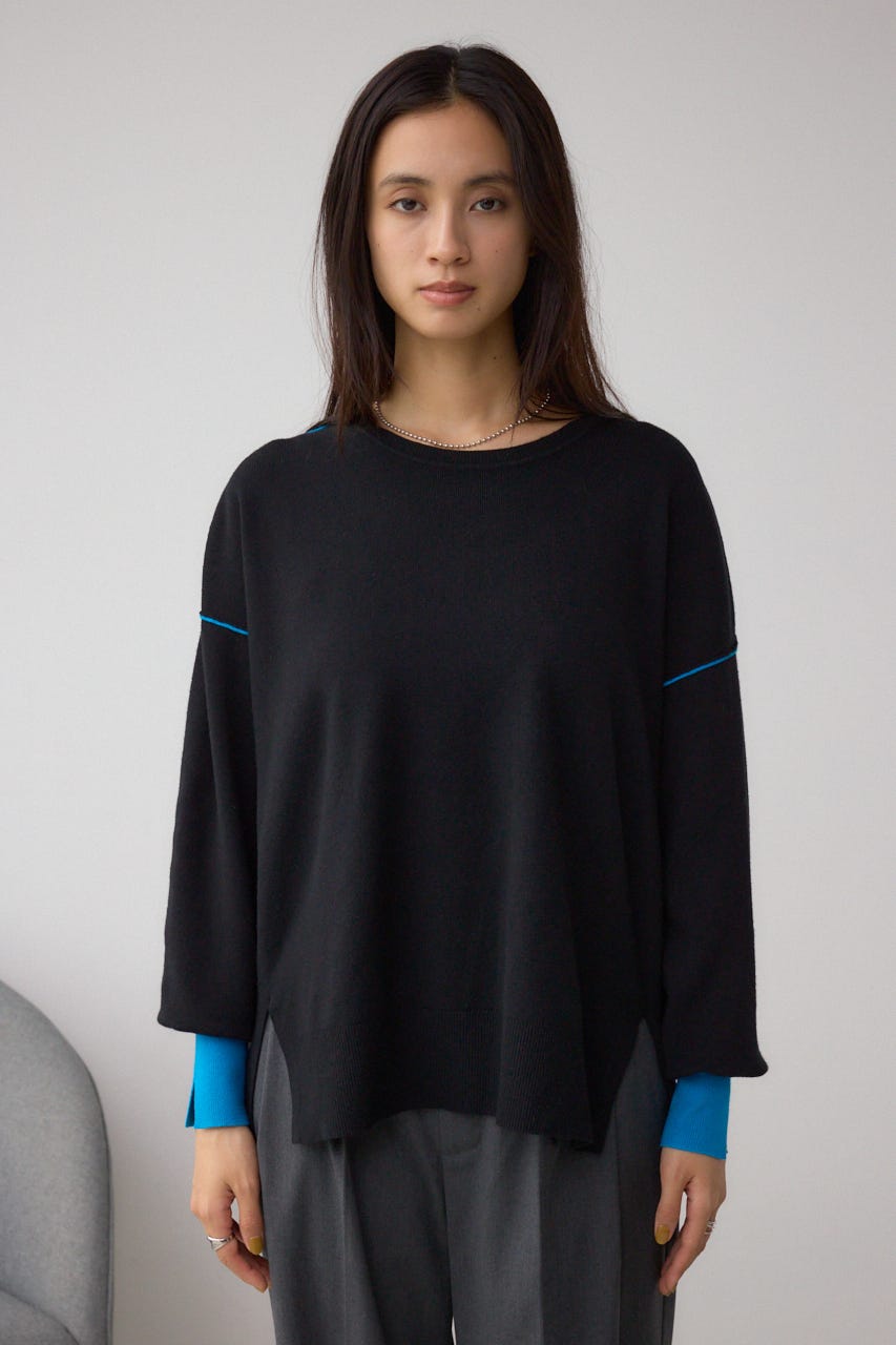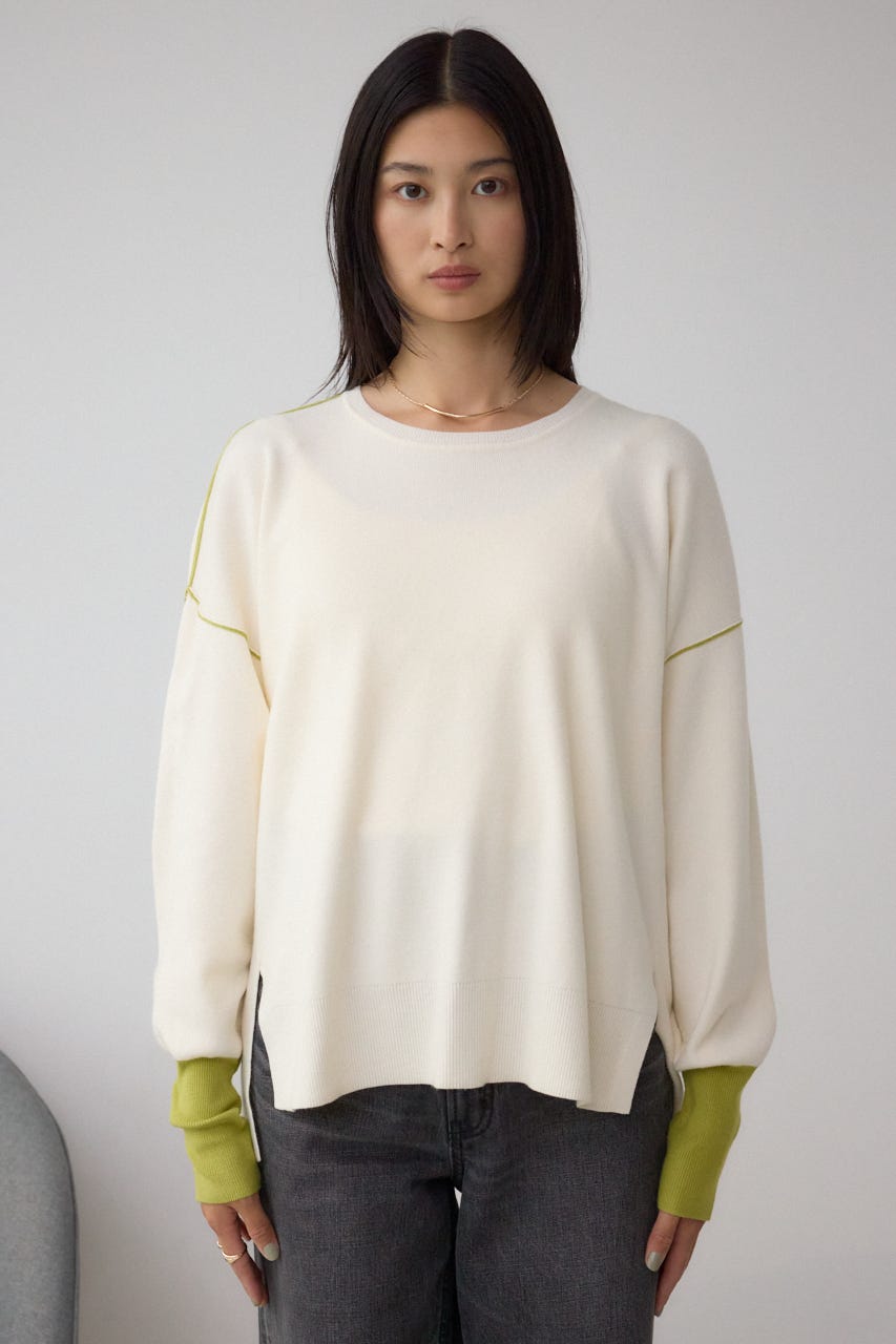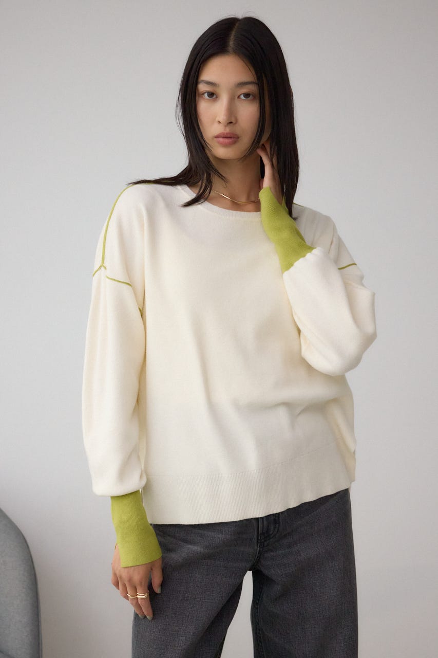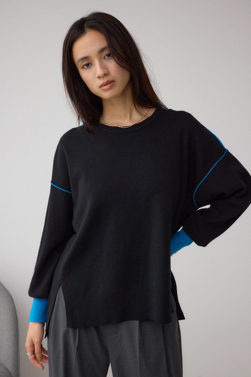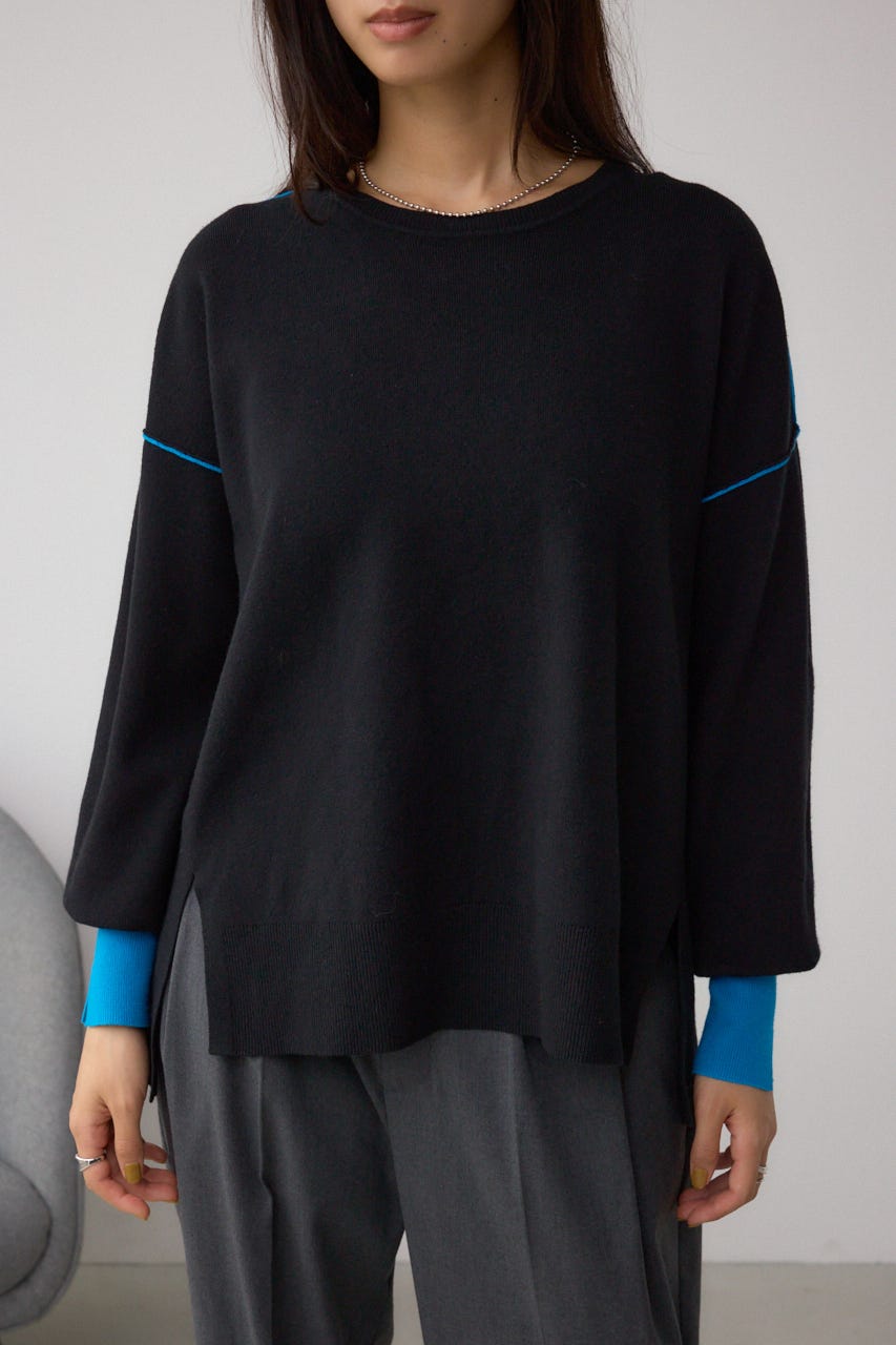 バイカラーとカフスデザインがポイントのニットプルオーバー。