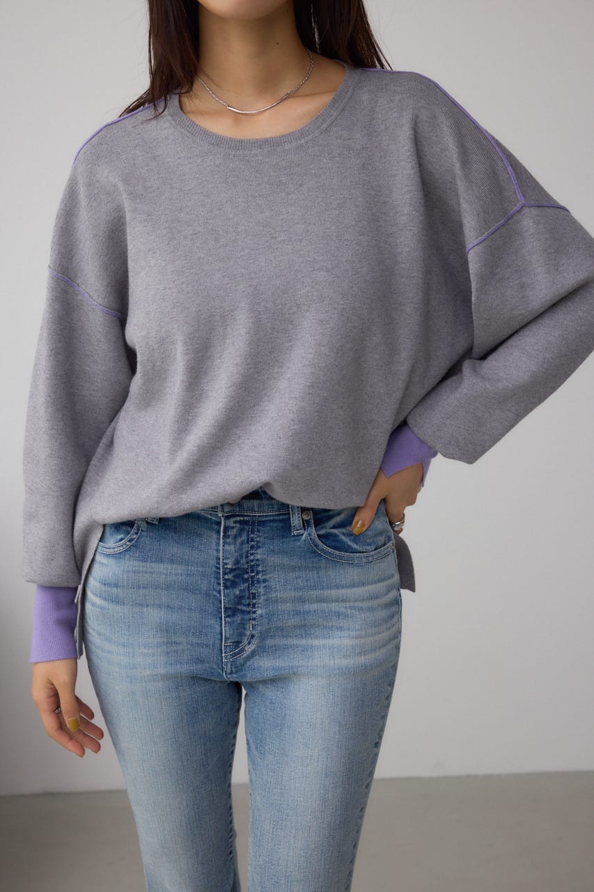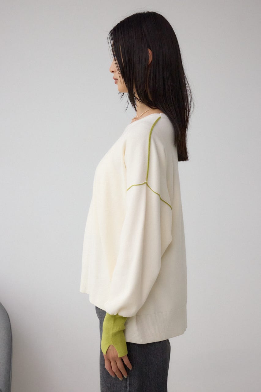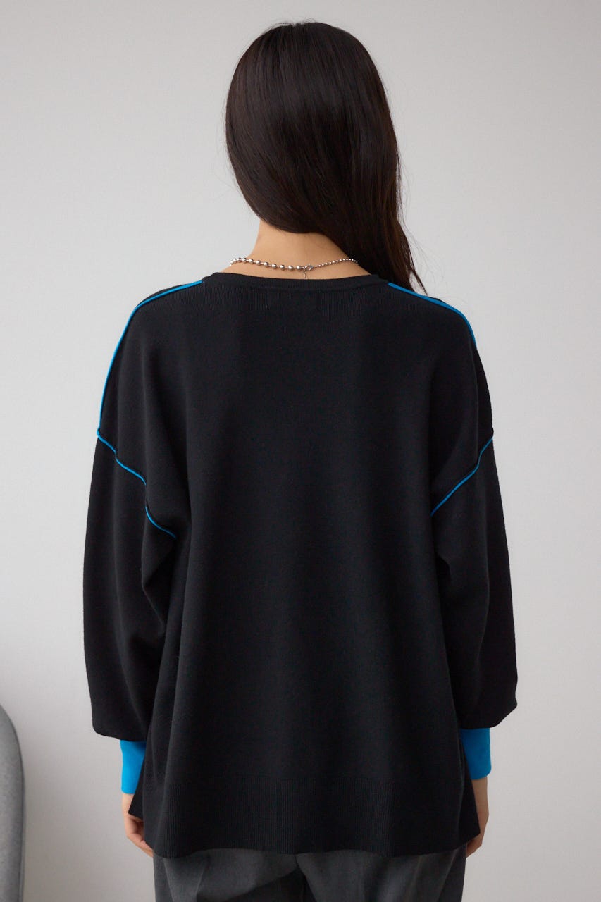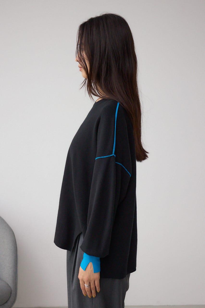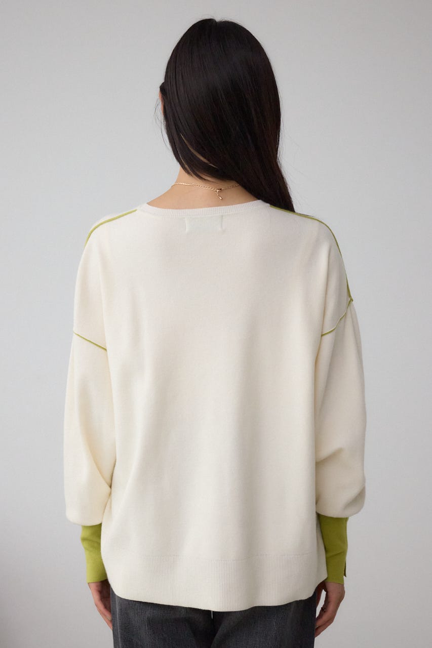 バイカラーとカフスデザインがポイントのニットプルオーバー。