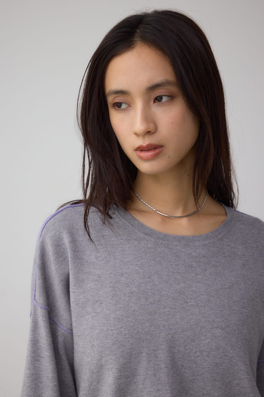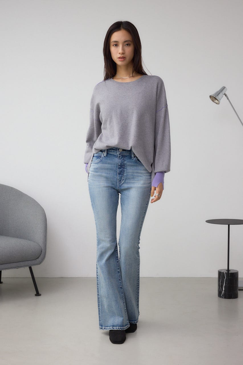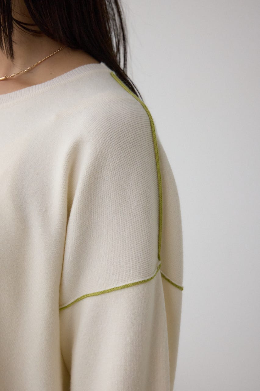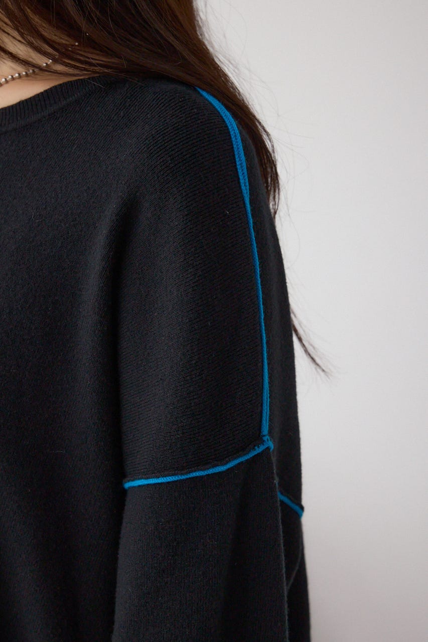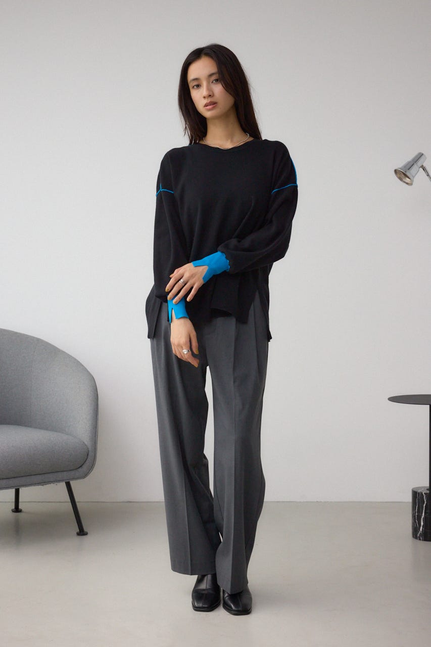 バイカラーとカフスデザインがポイントのニットプルオーバー。