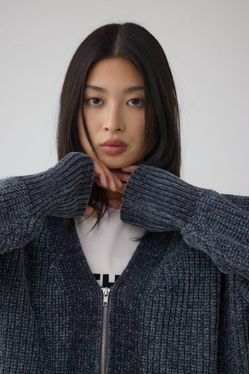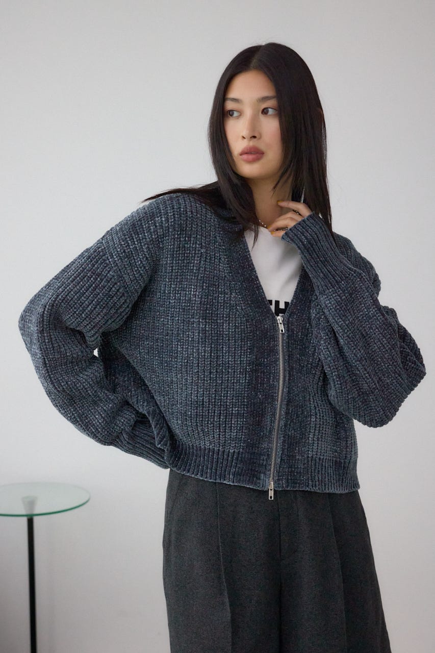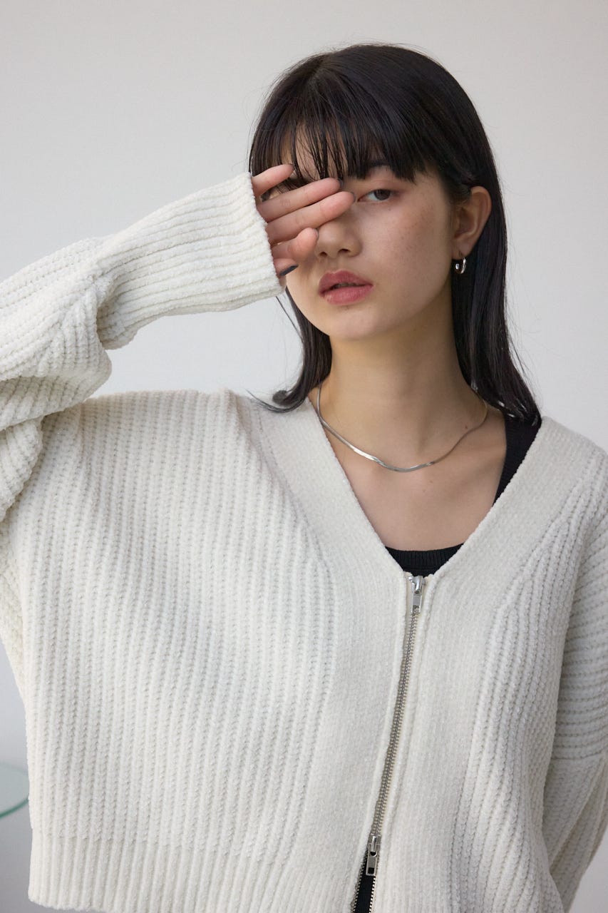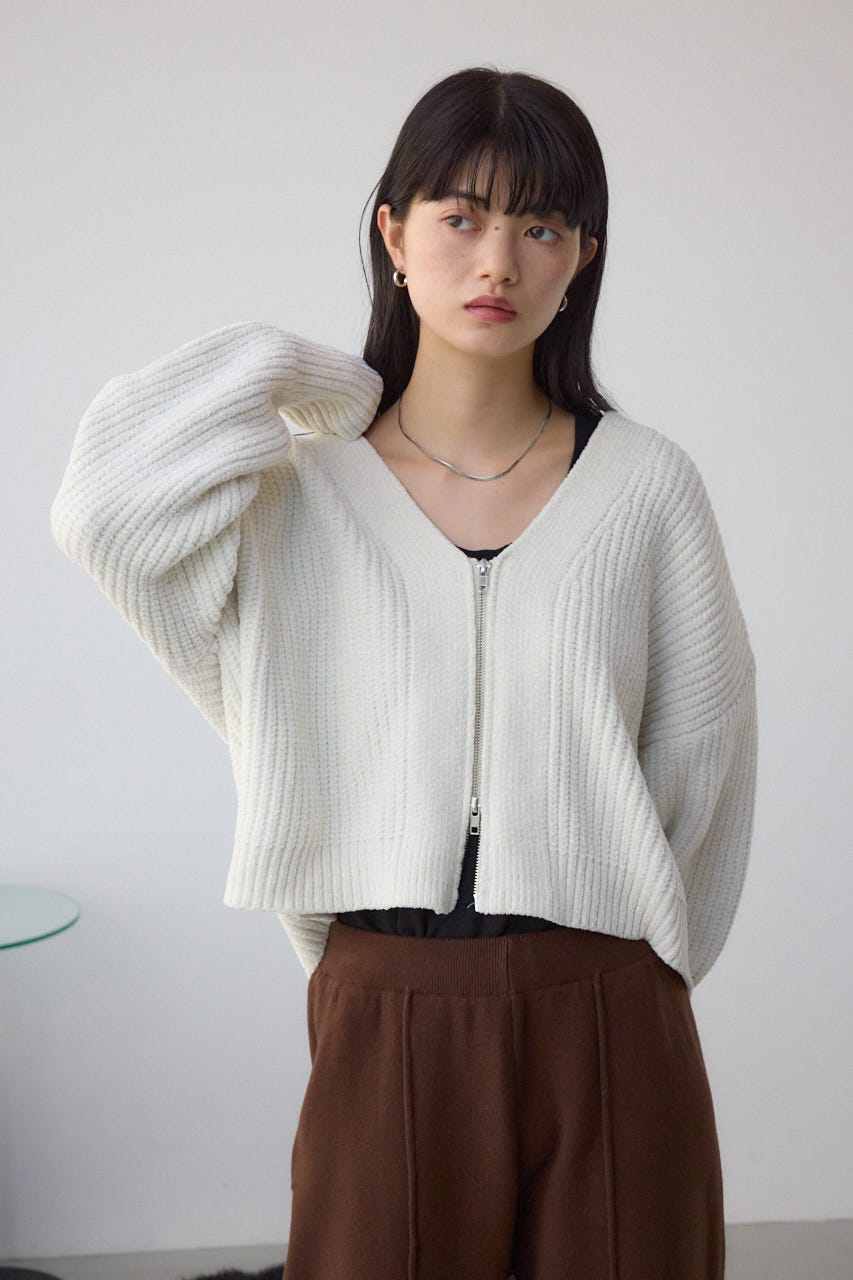 トレンドのダブルジップがポイントのVネックカーディガンです。