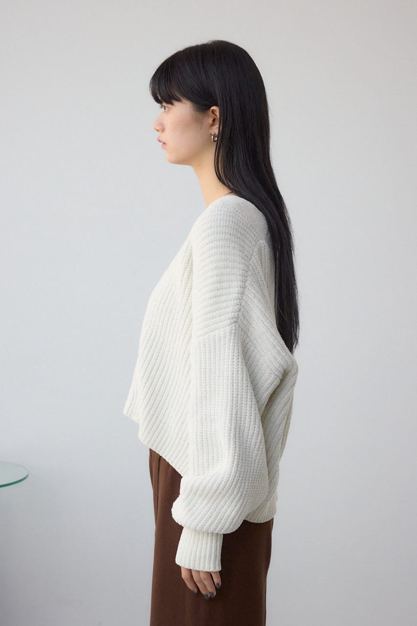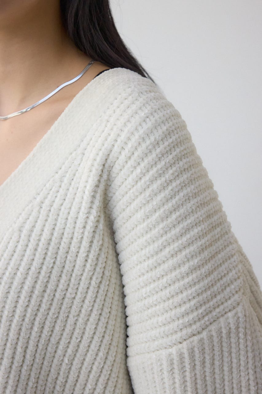 引き揃えたラメ糸が女性らしさを演出してくれるこだわりの編地で仕立てました。